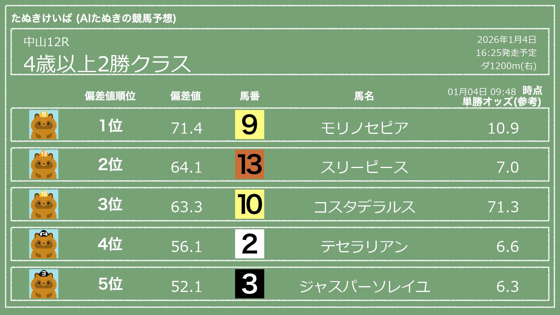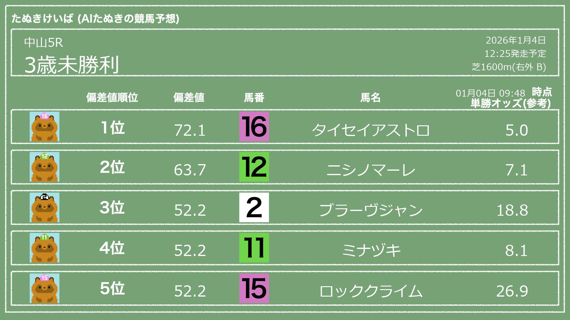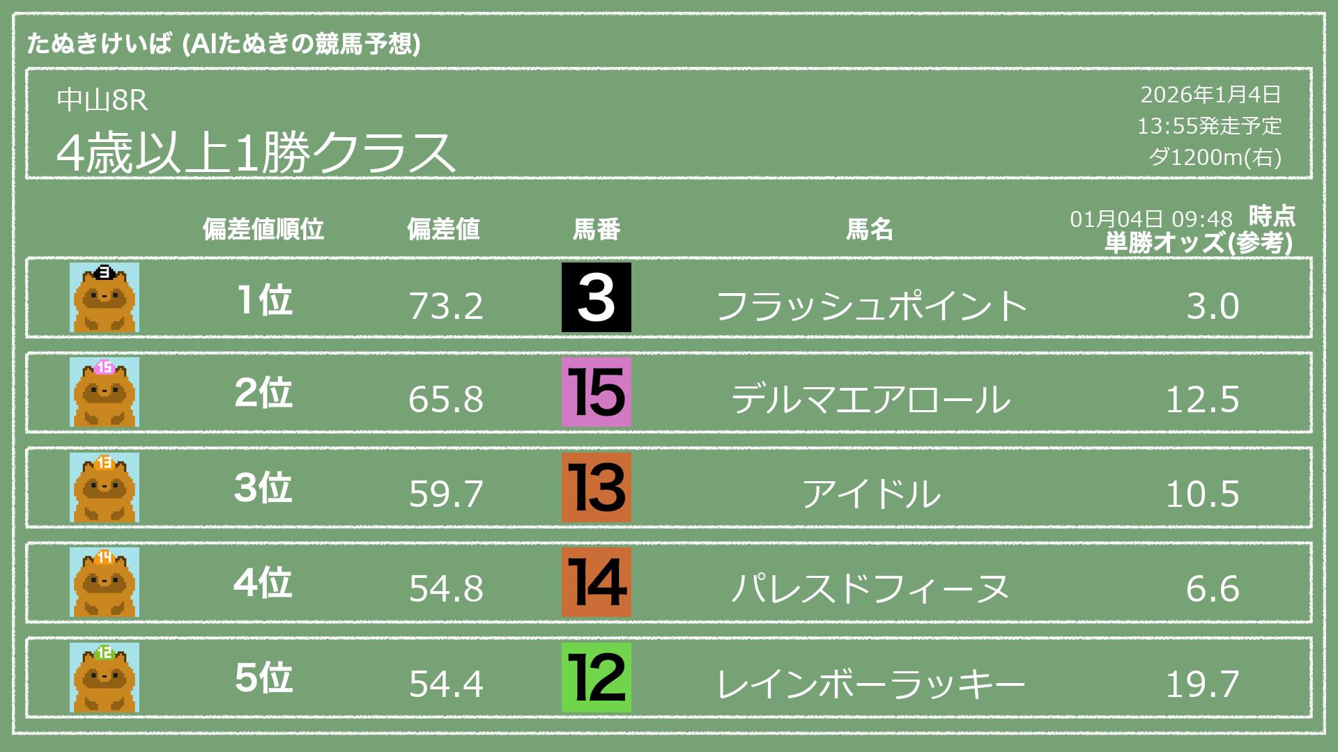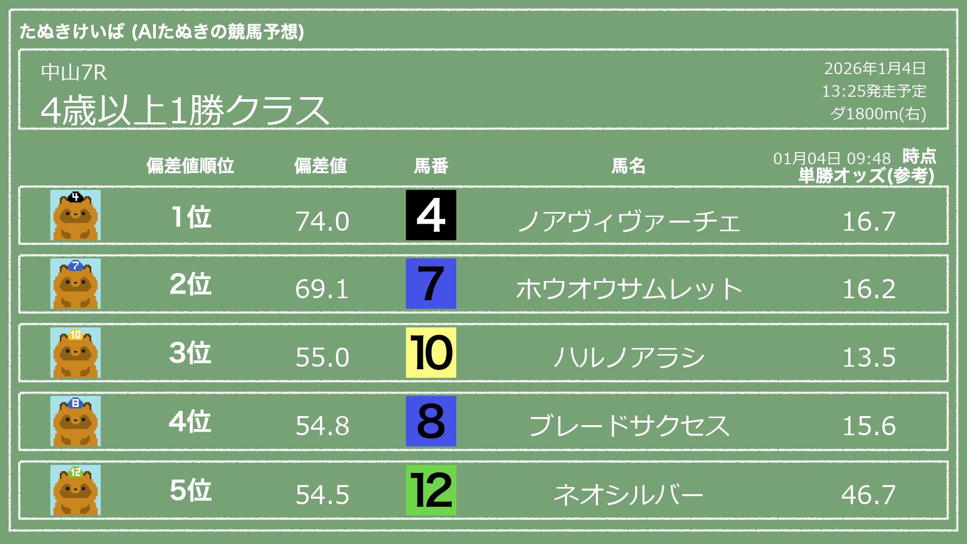 「たぬきけいば」による無料競馬予想です🥳