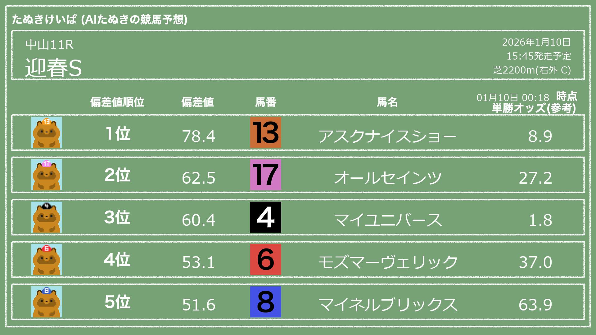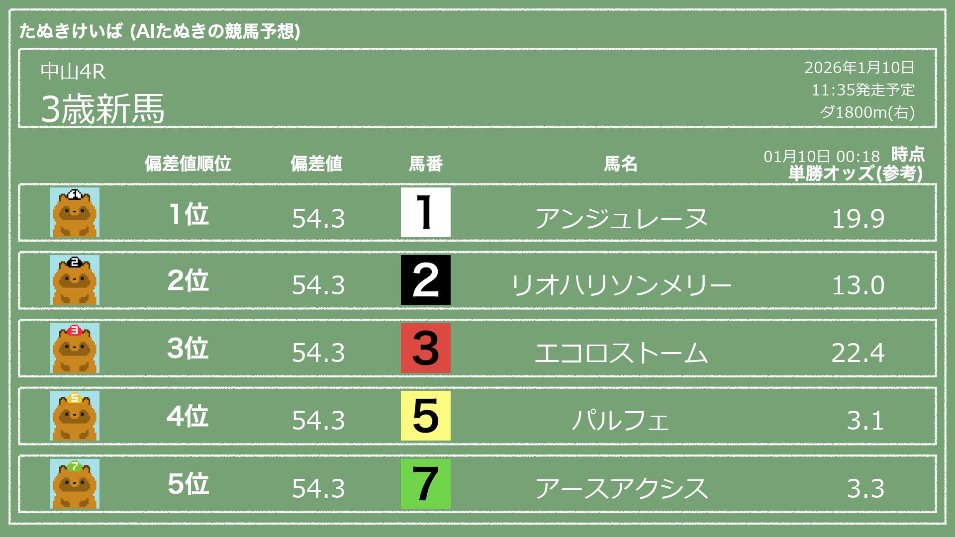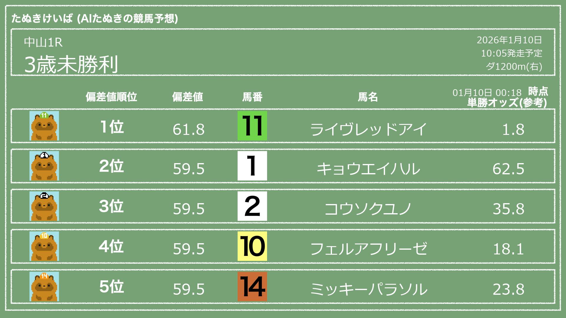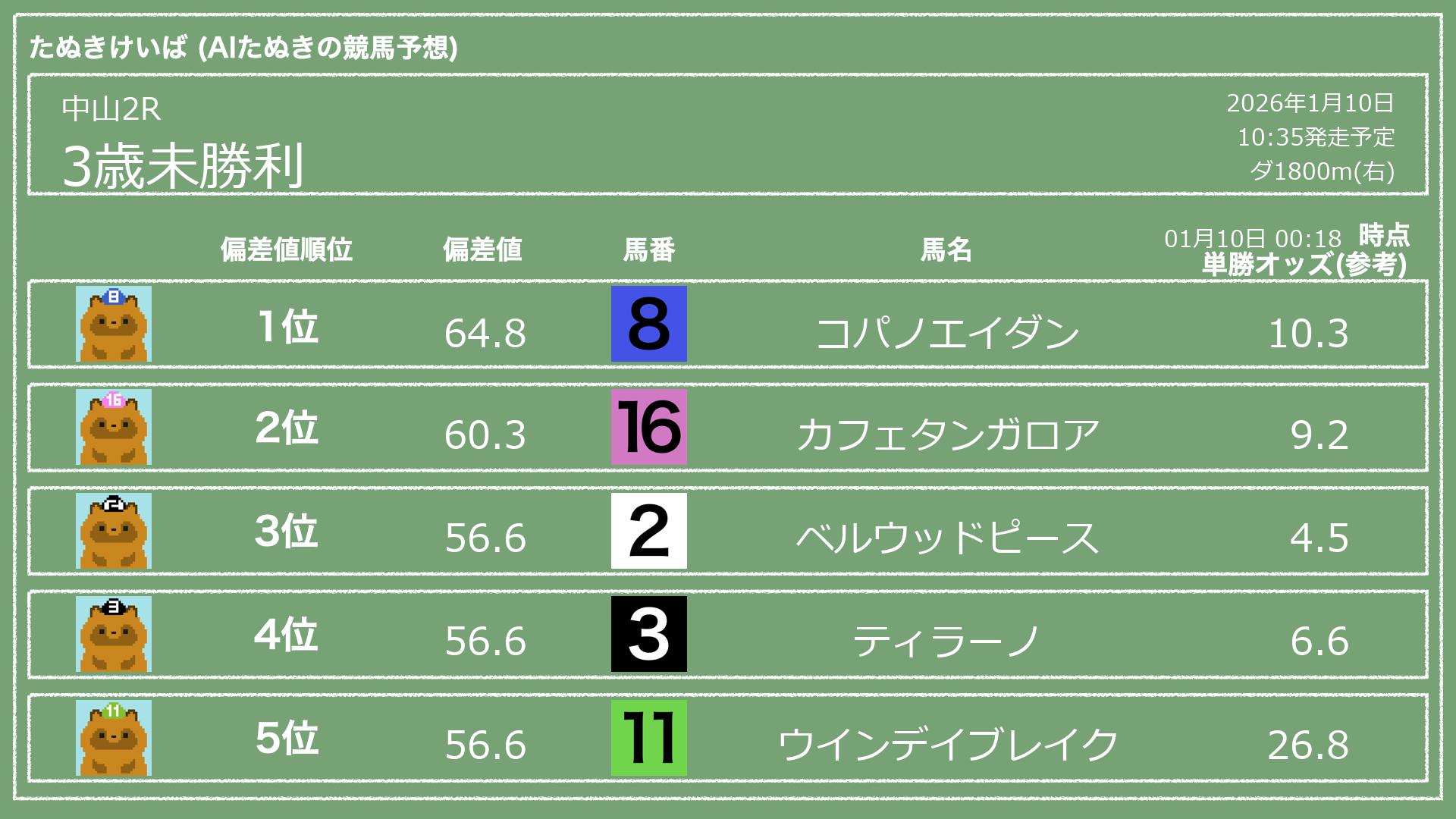 「たぬきけいば」による無料競馬予想です🥳