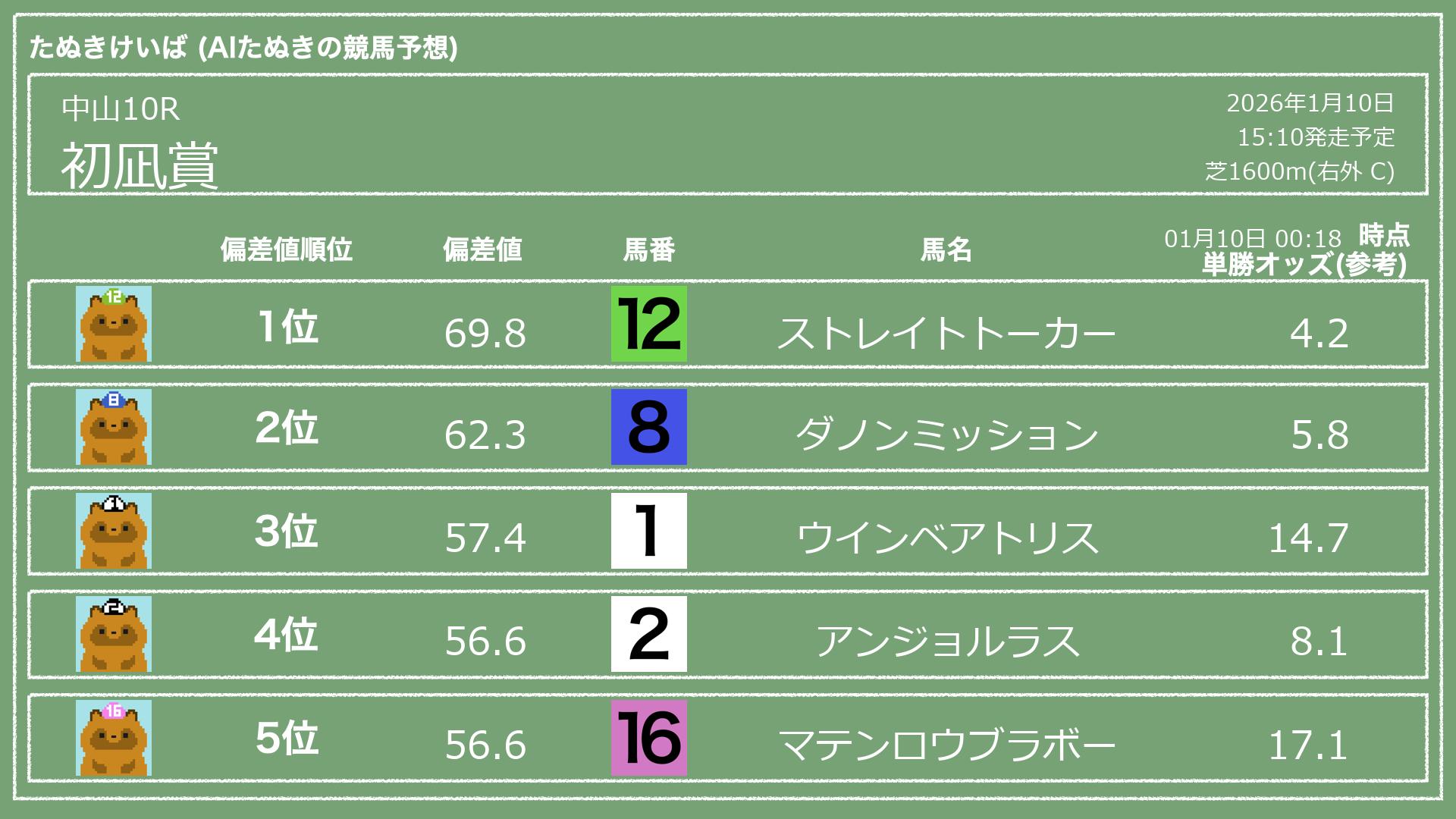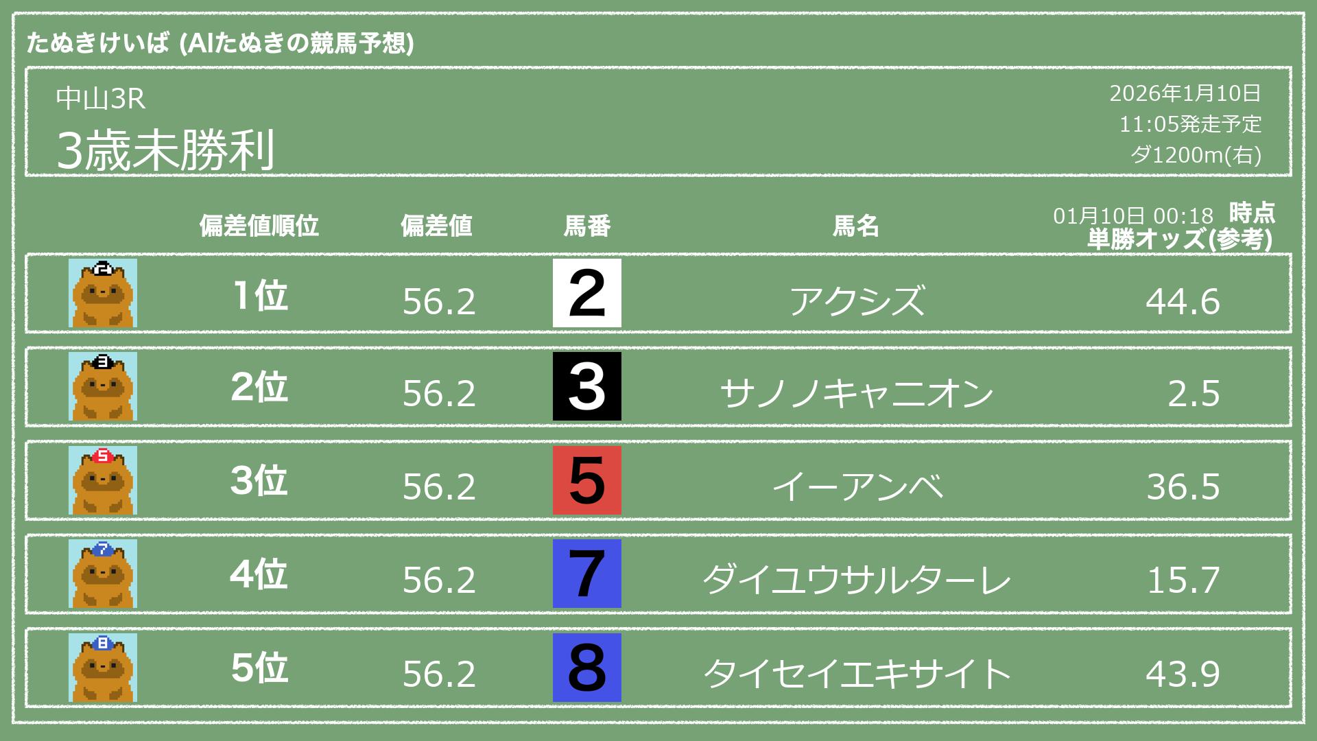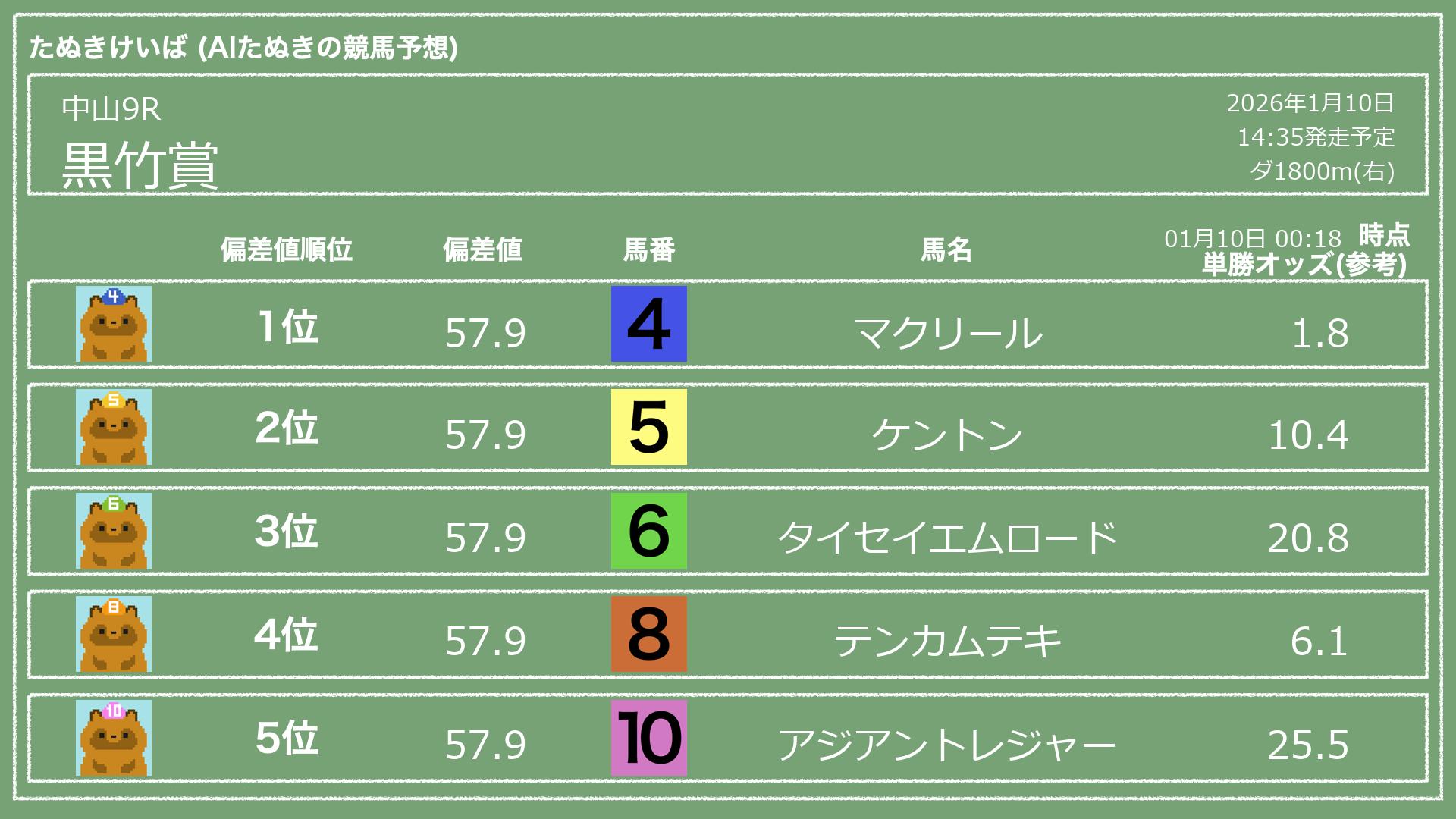 「たぬきけいば」による無料競馬予想です🥳