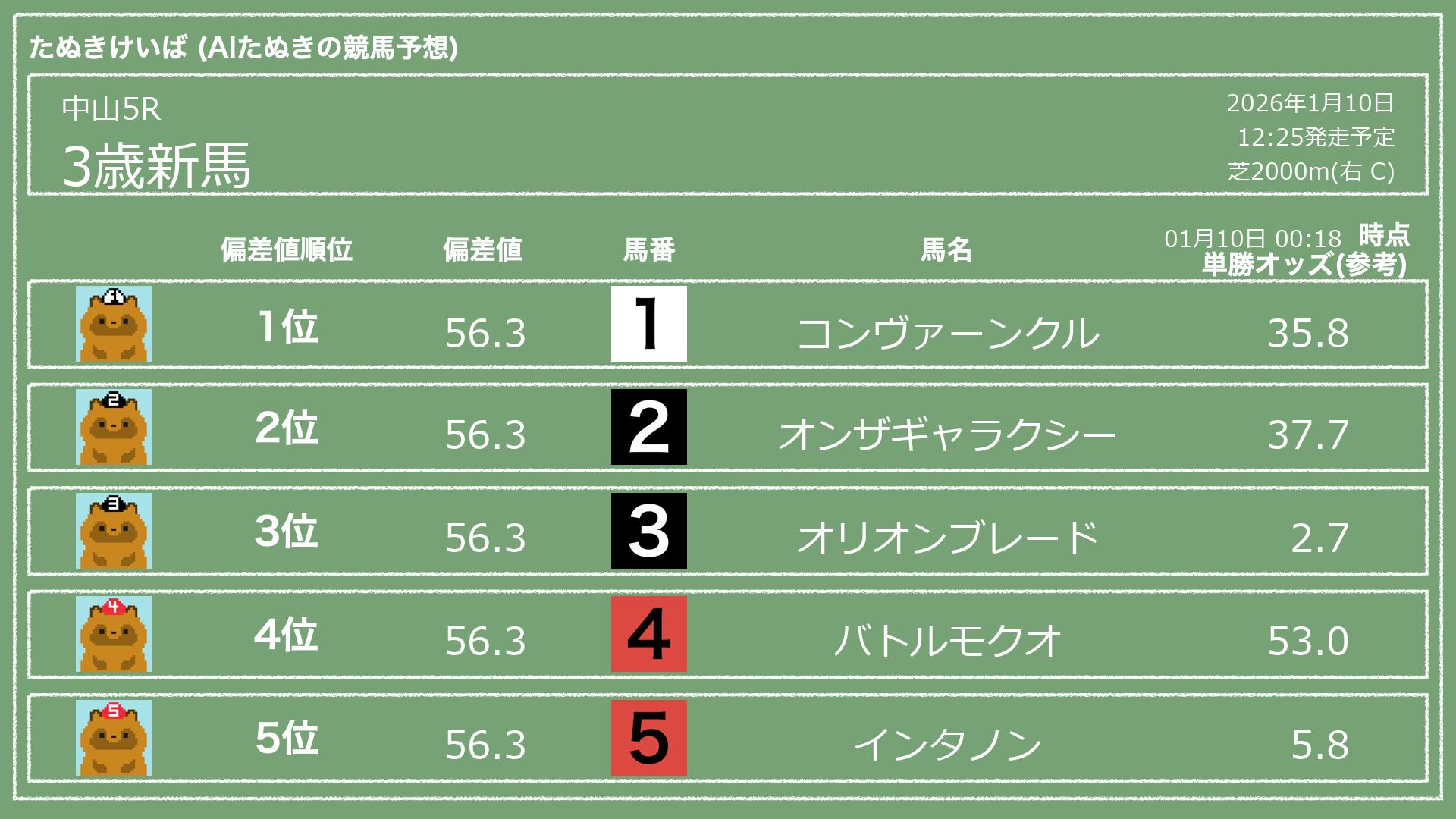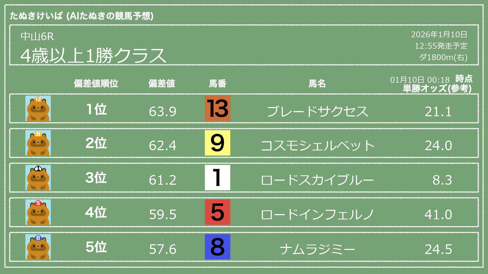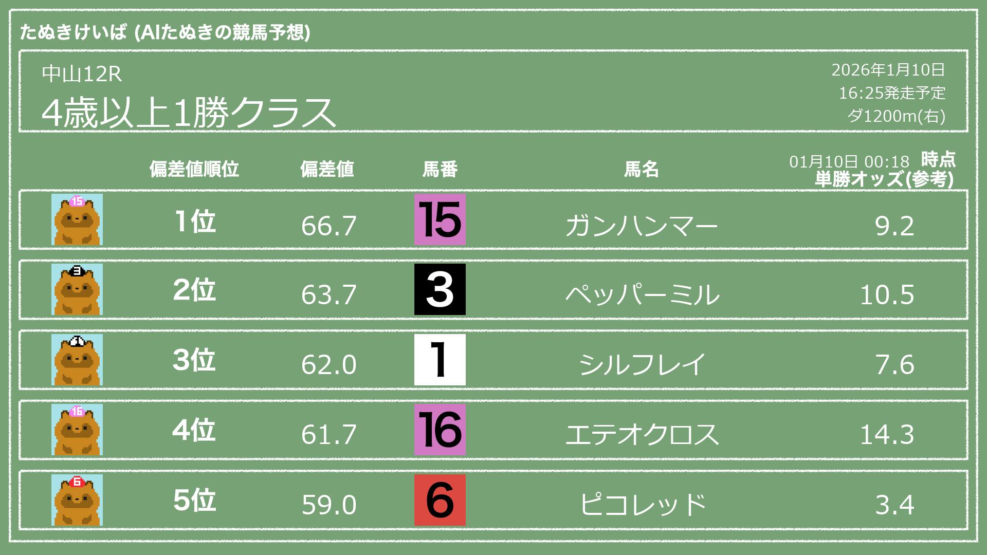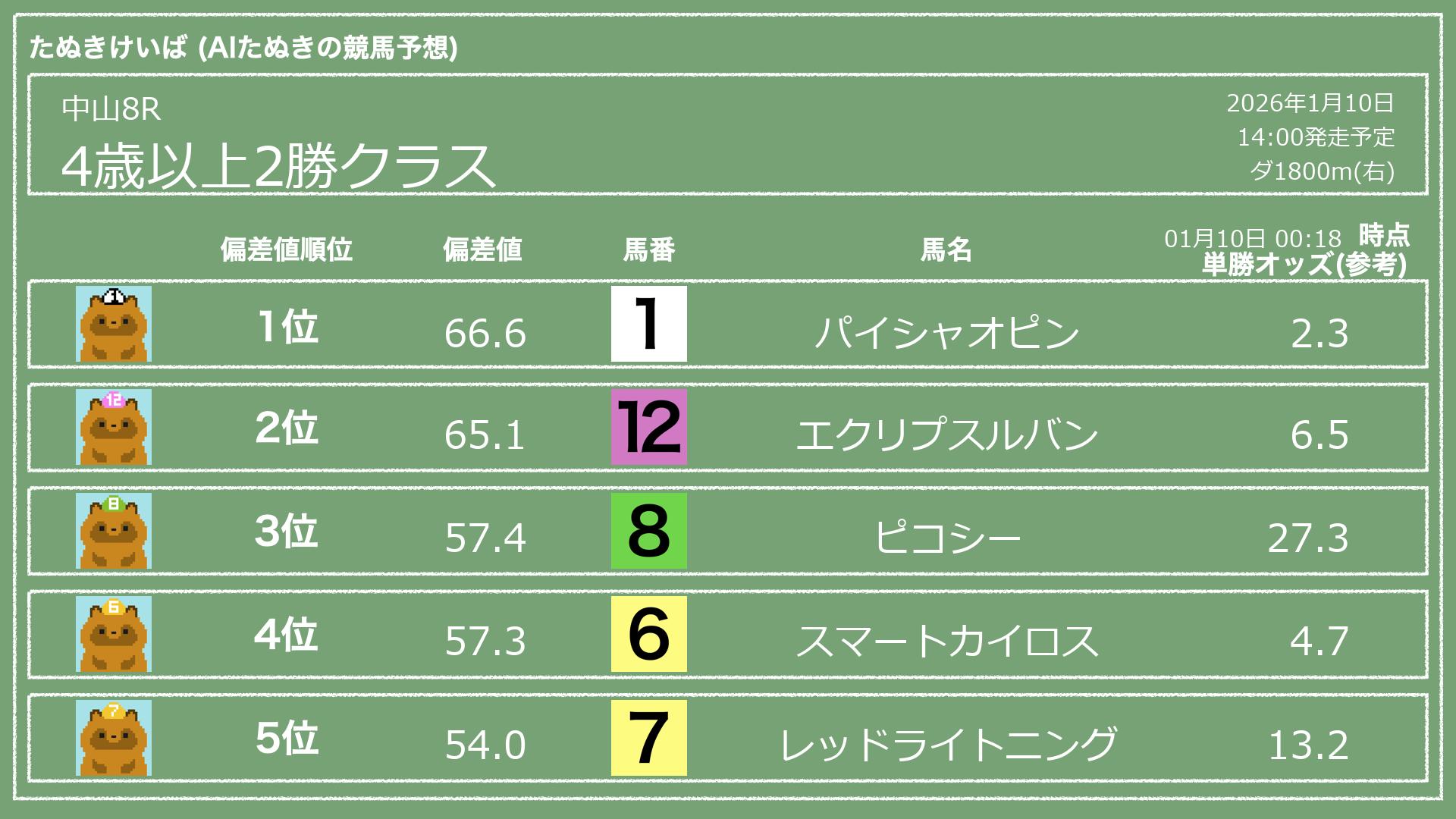 「たぬきけいば」による無料競馬予想です🥳