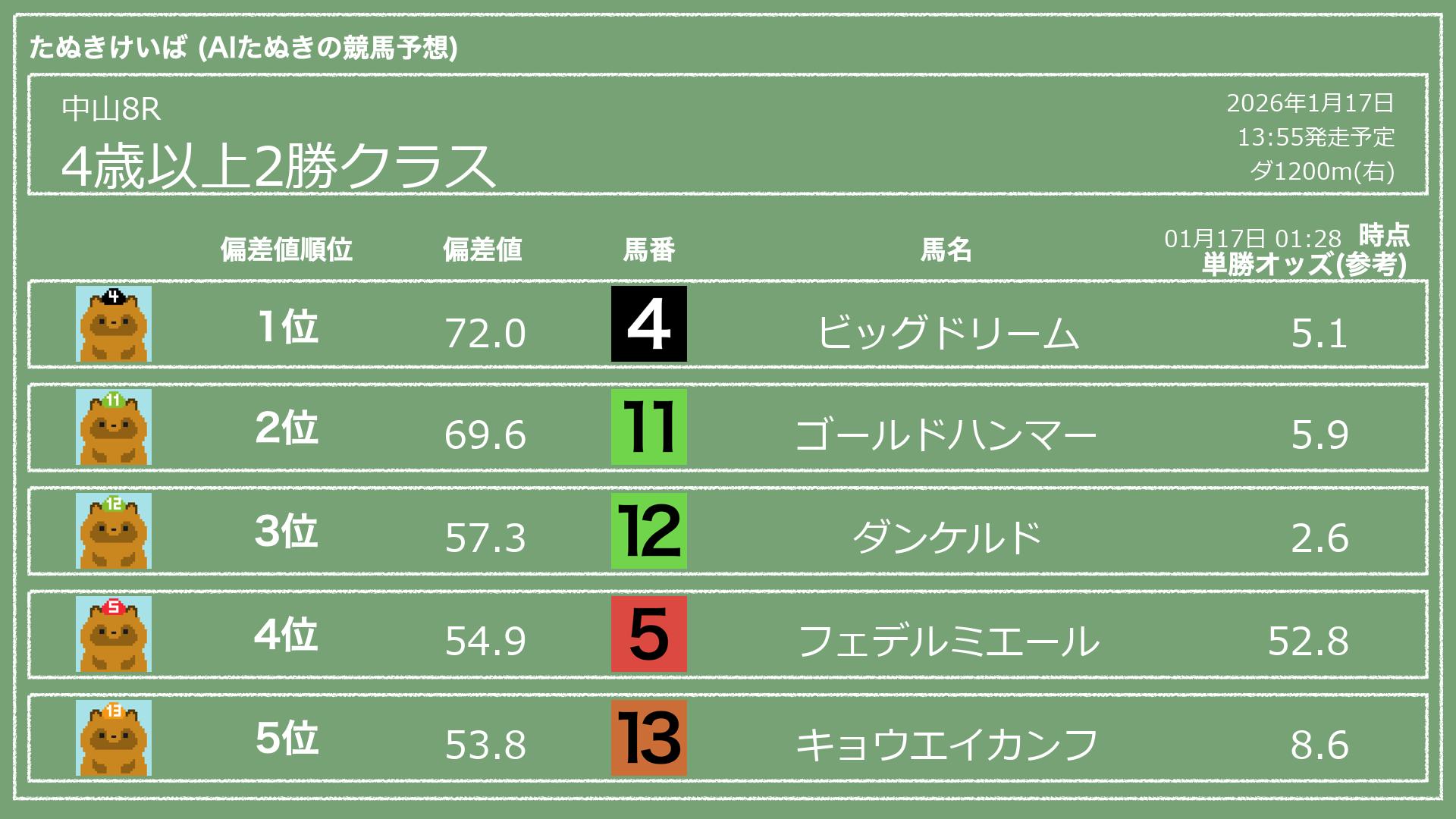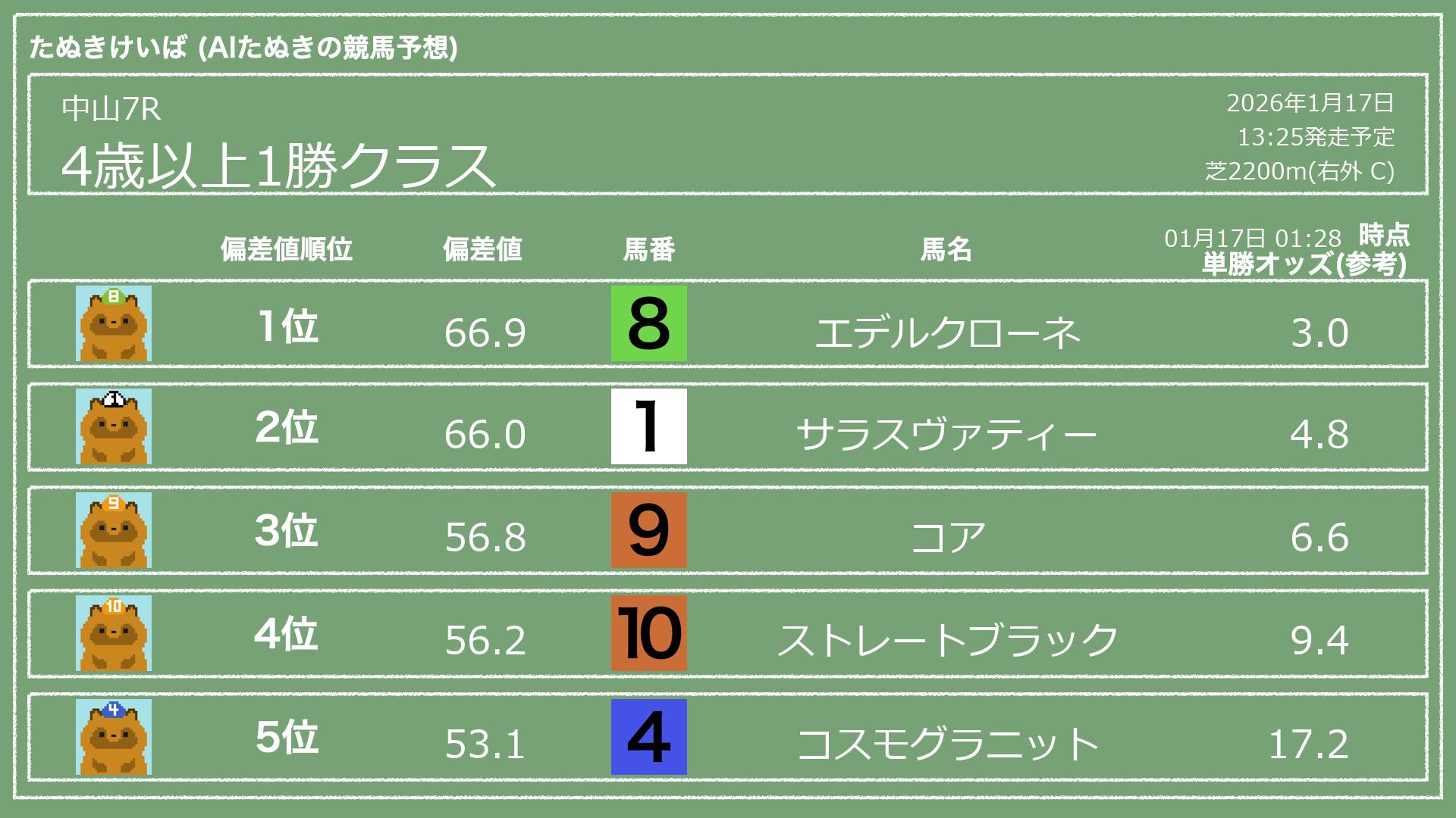 | 7 | 3 | 5 | アイアムステキ | 2 | 4.6 | 51.9 |
