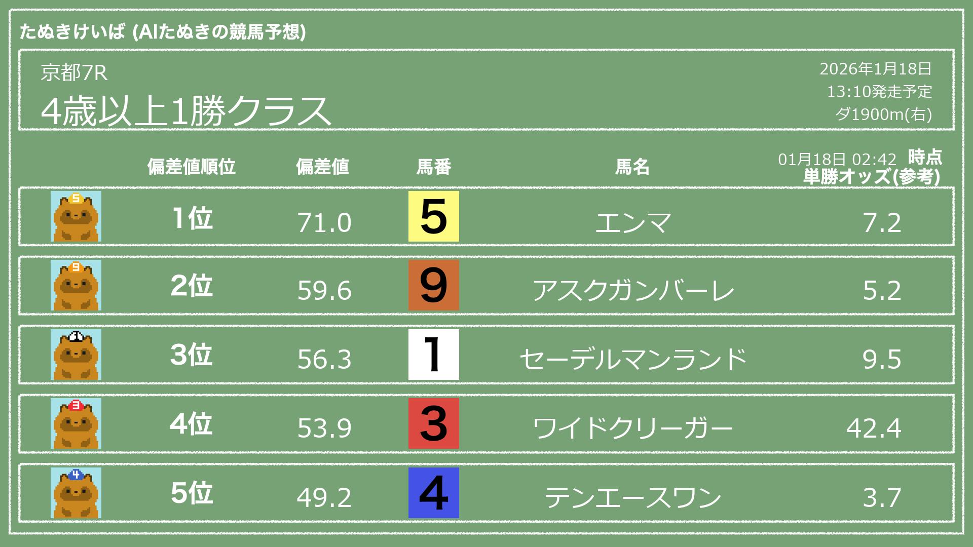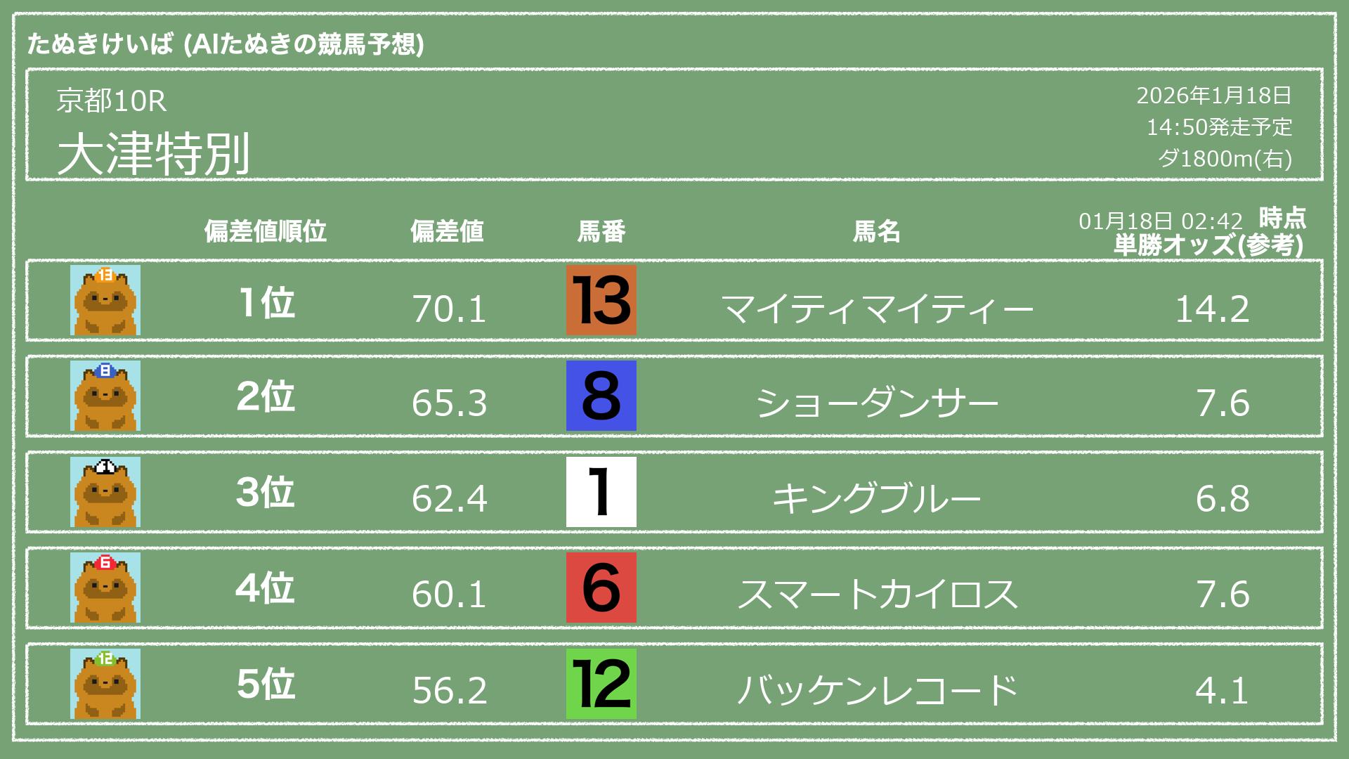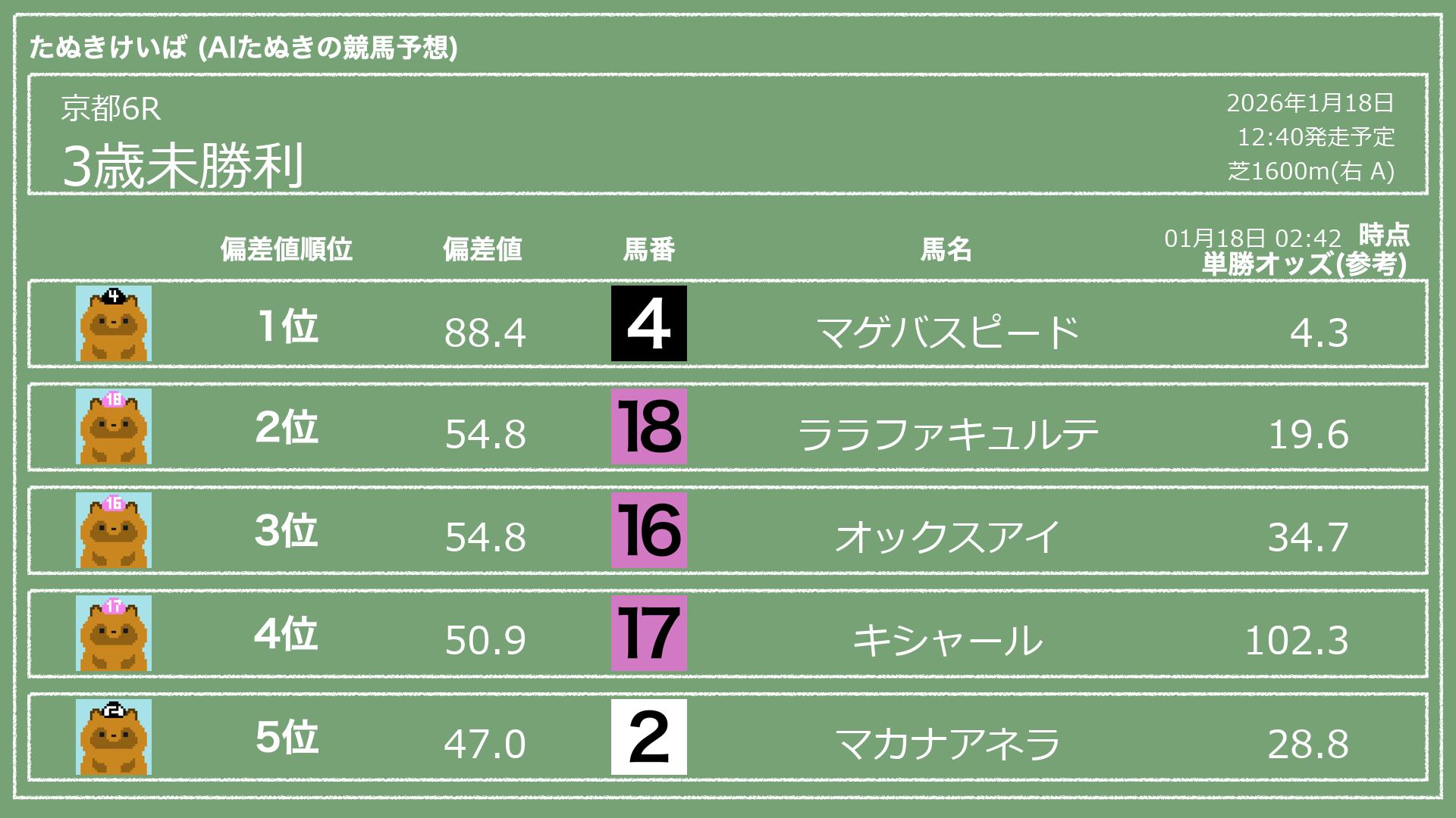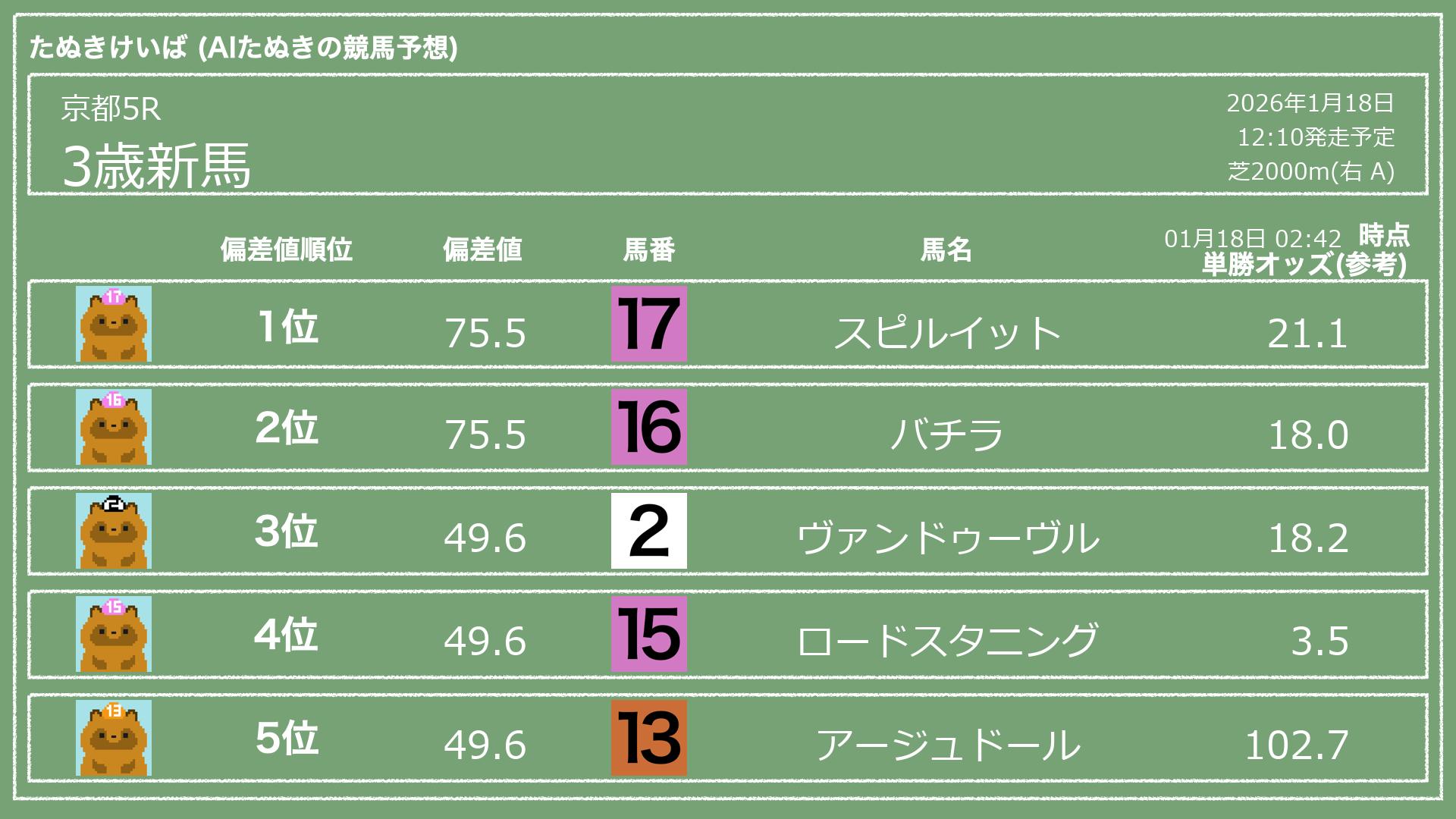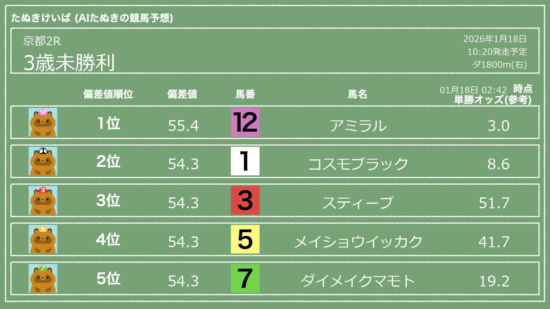 「たぬきけいば」による無料競馬予想です🥳