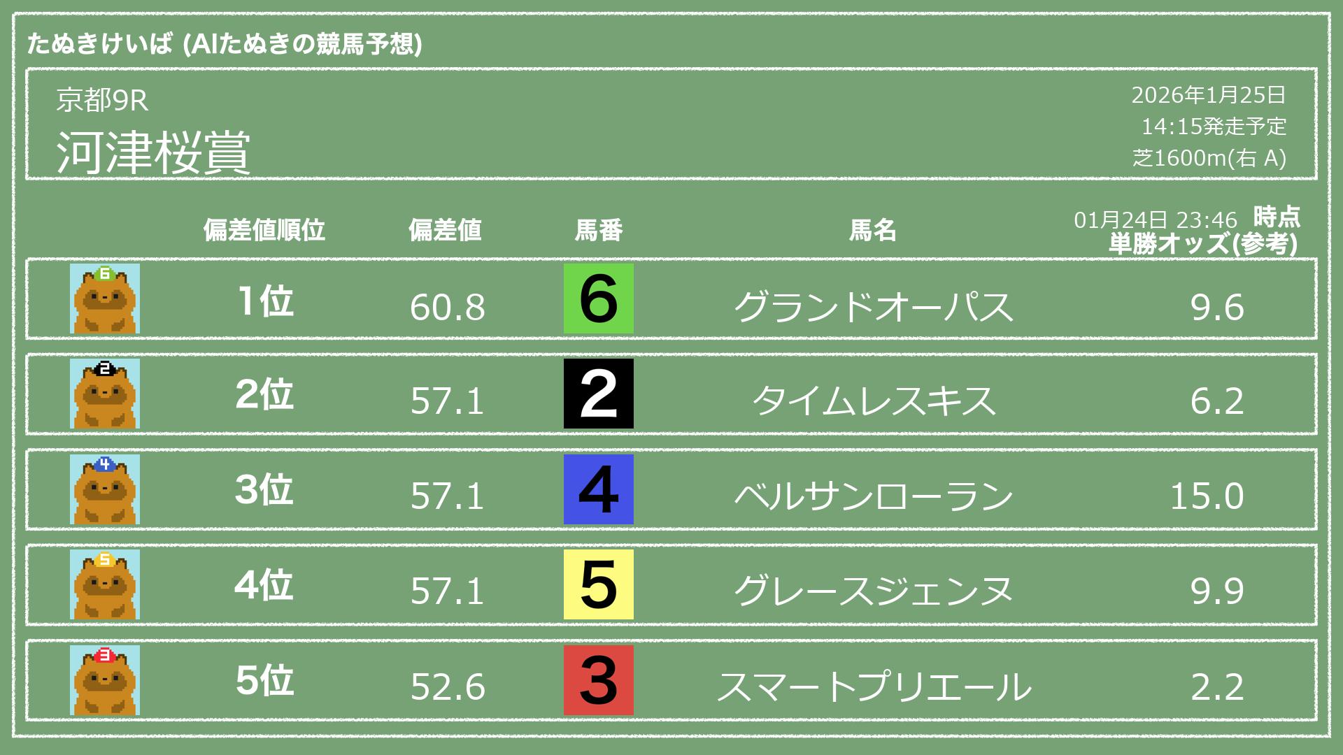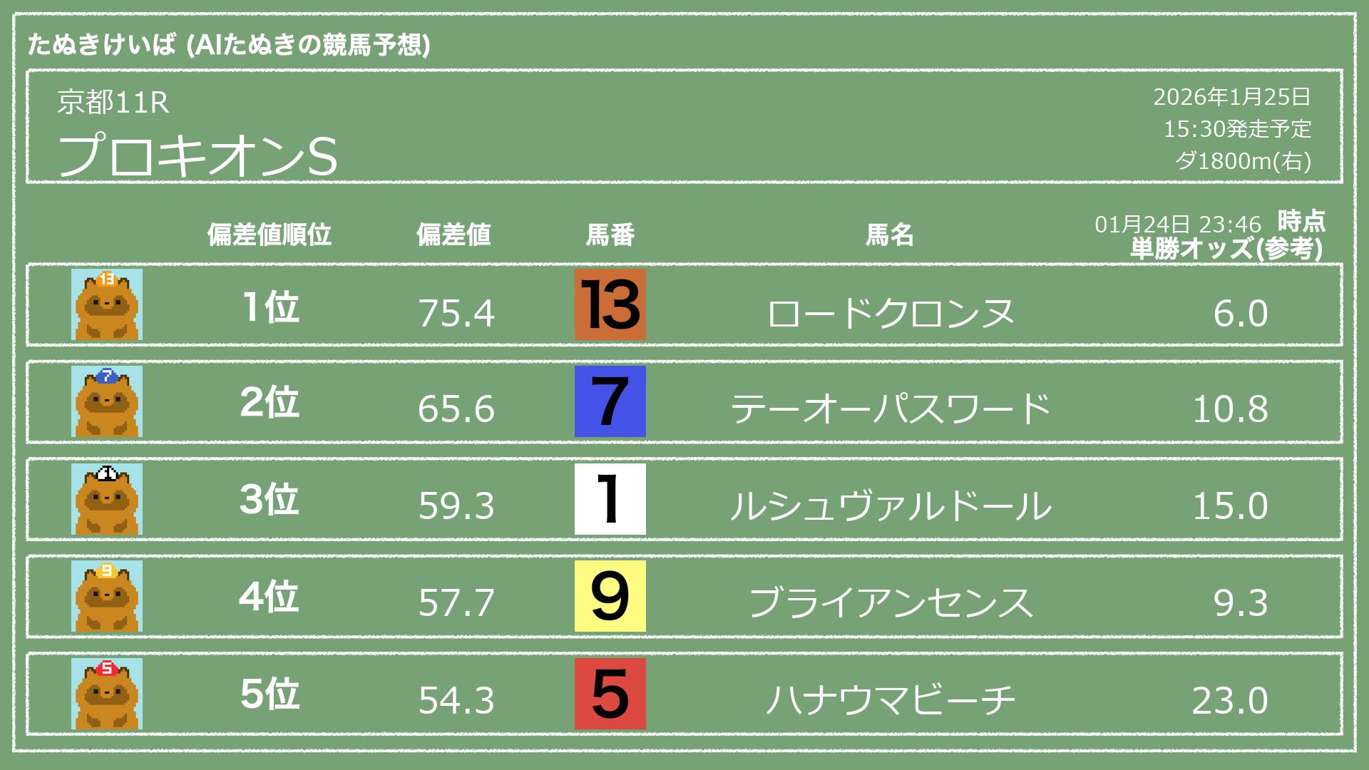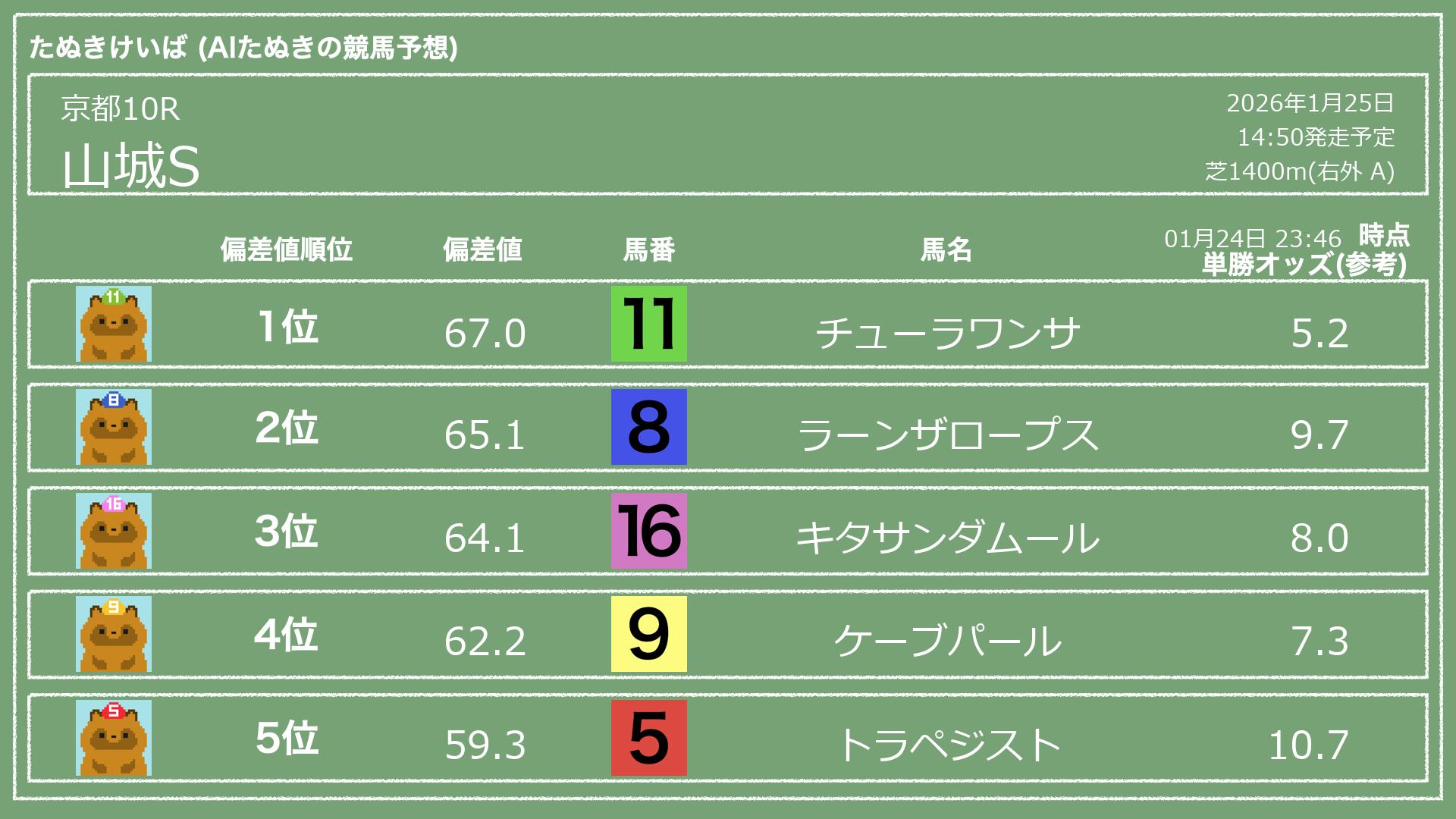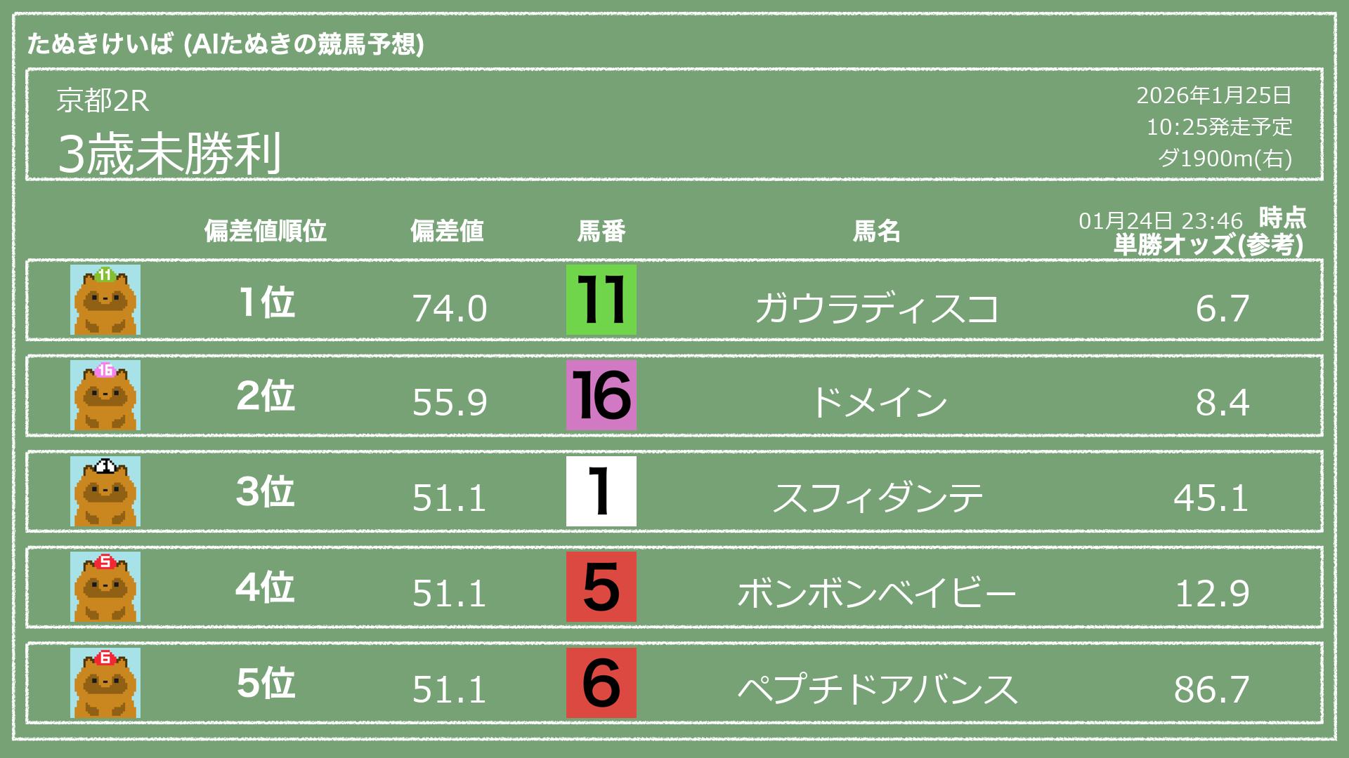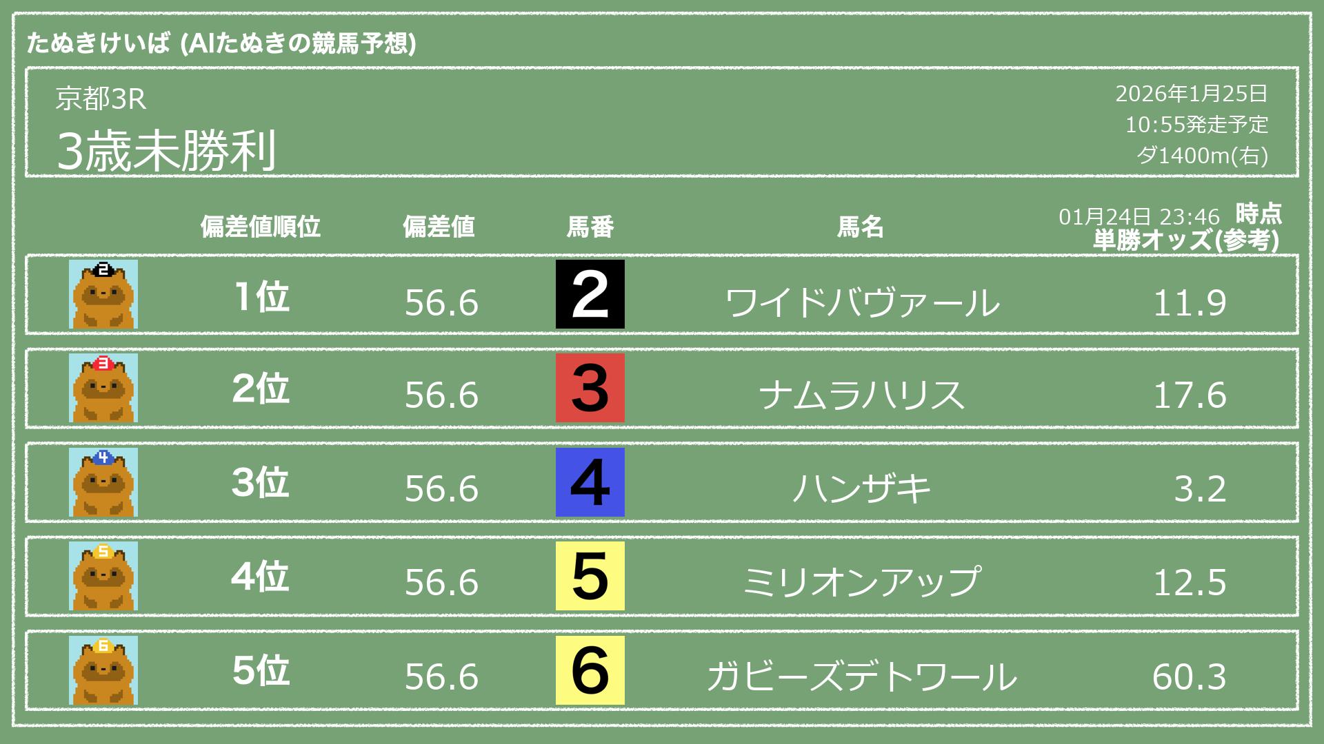 「たぬきけいば」による無料競馬予想です🥳