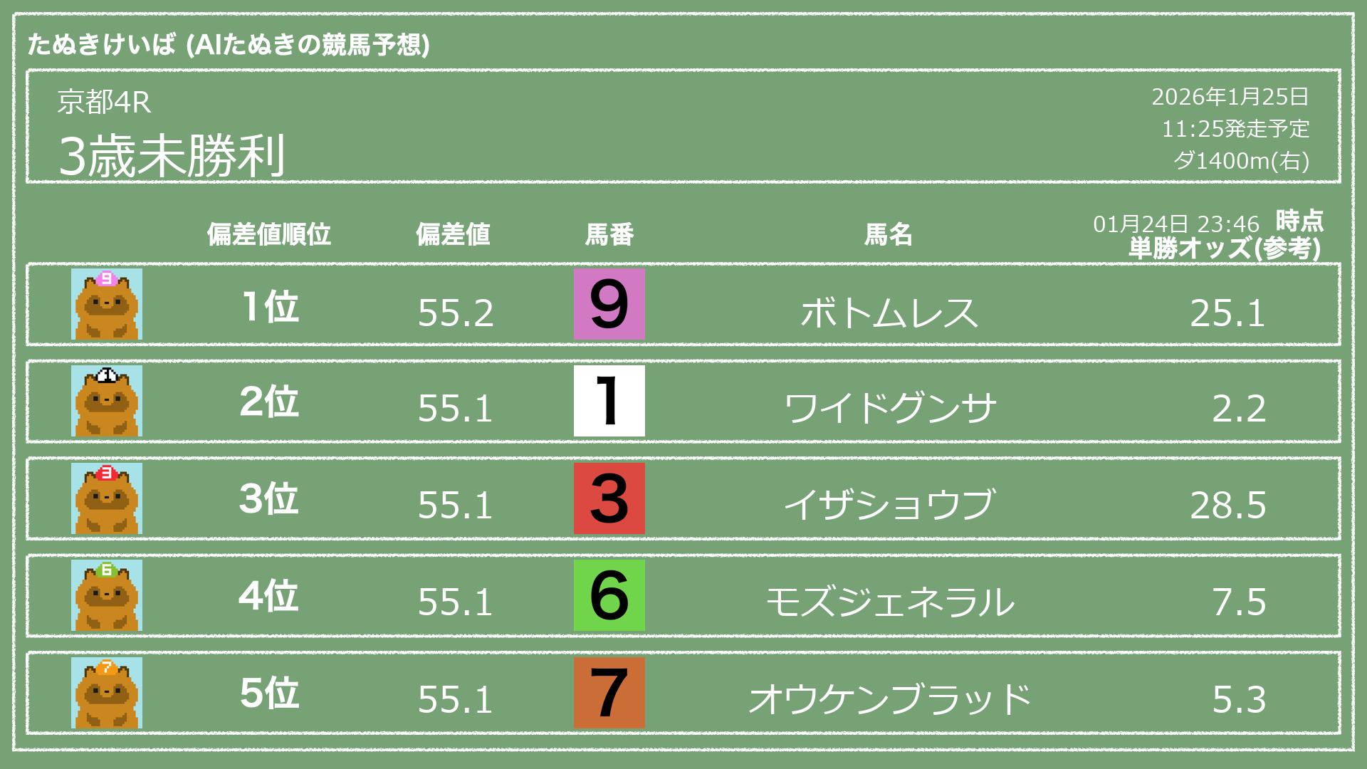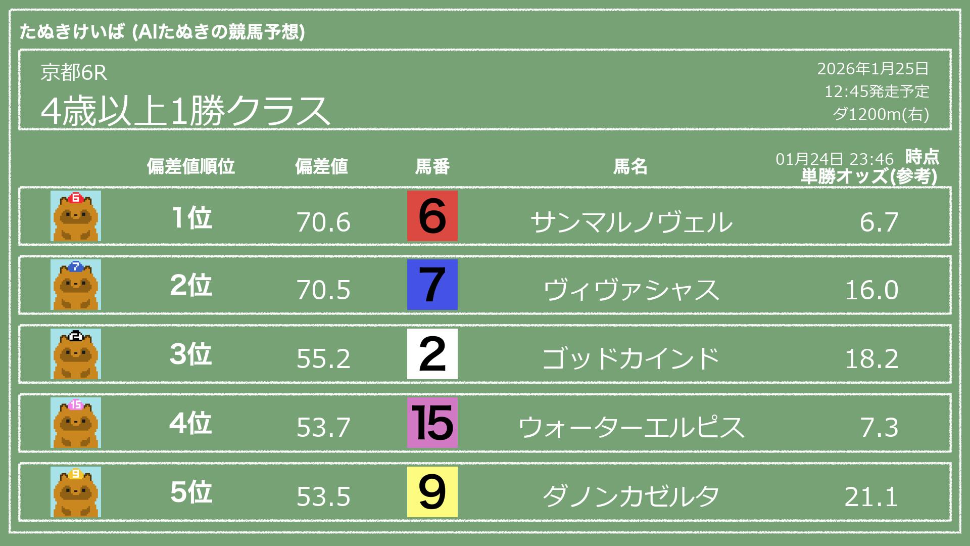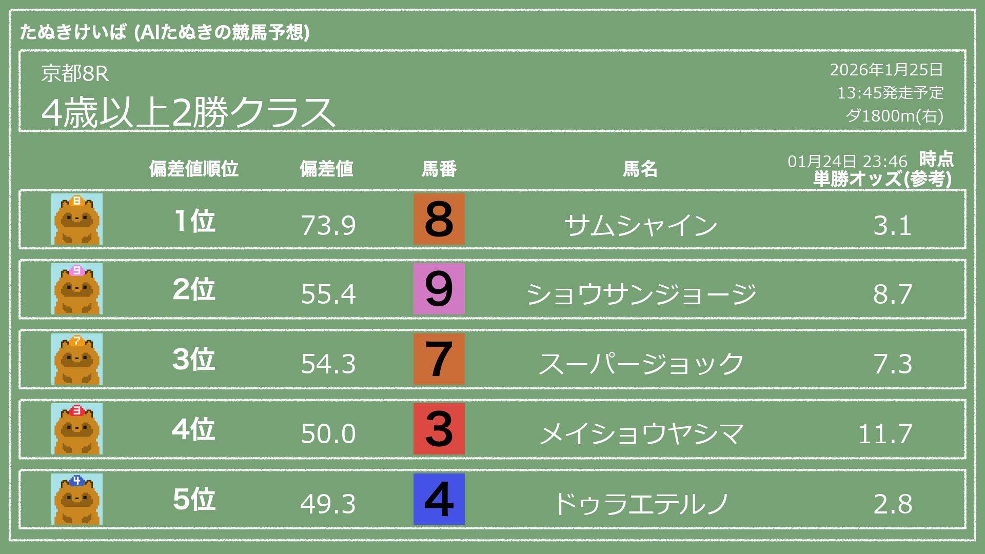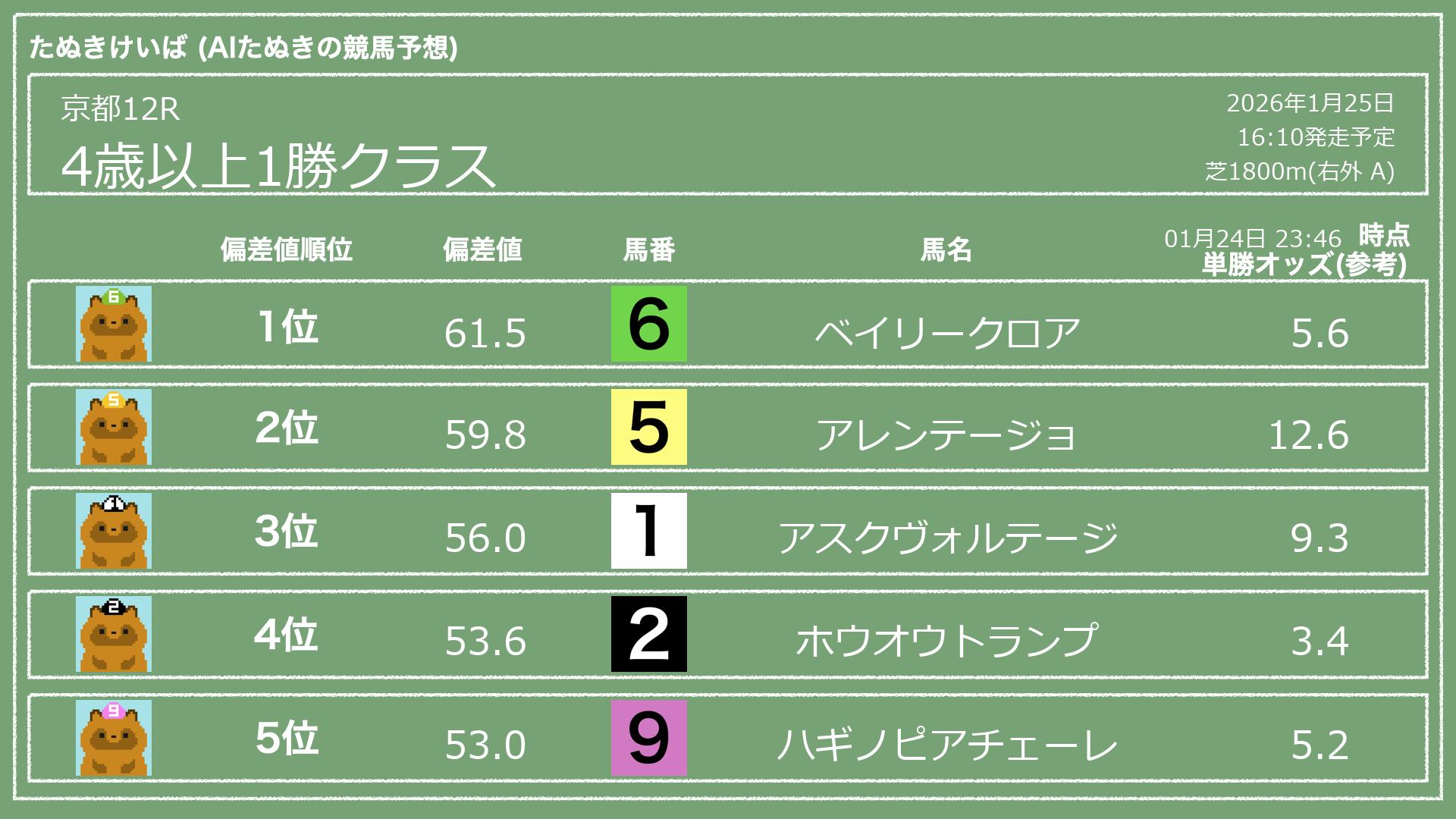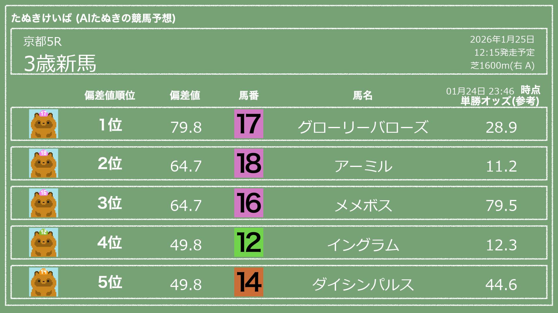 「たぬきけいば」による無料競馬予想です🥳