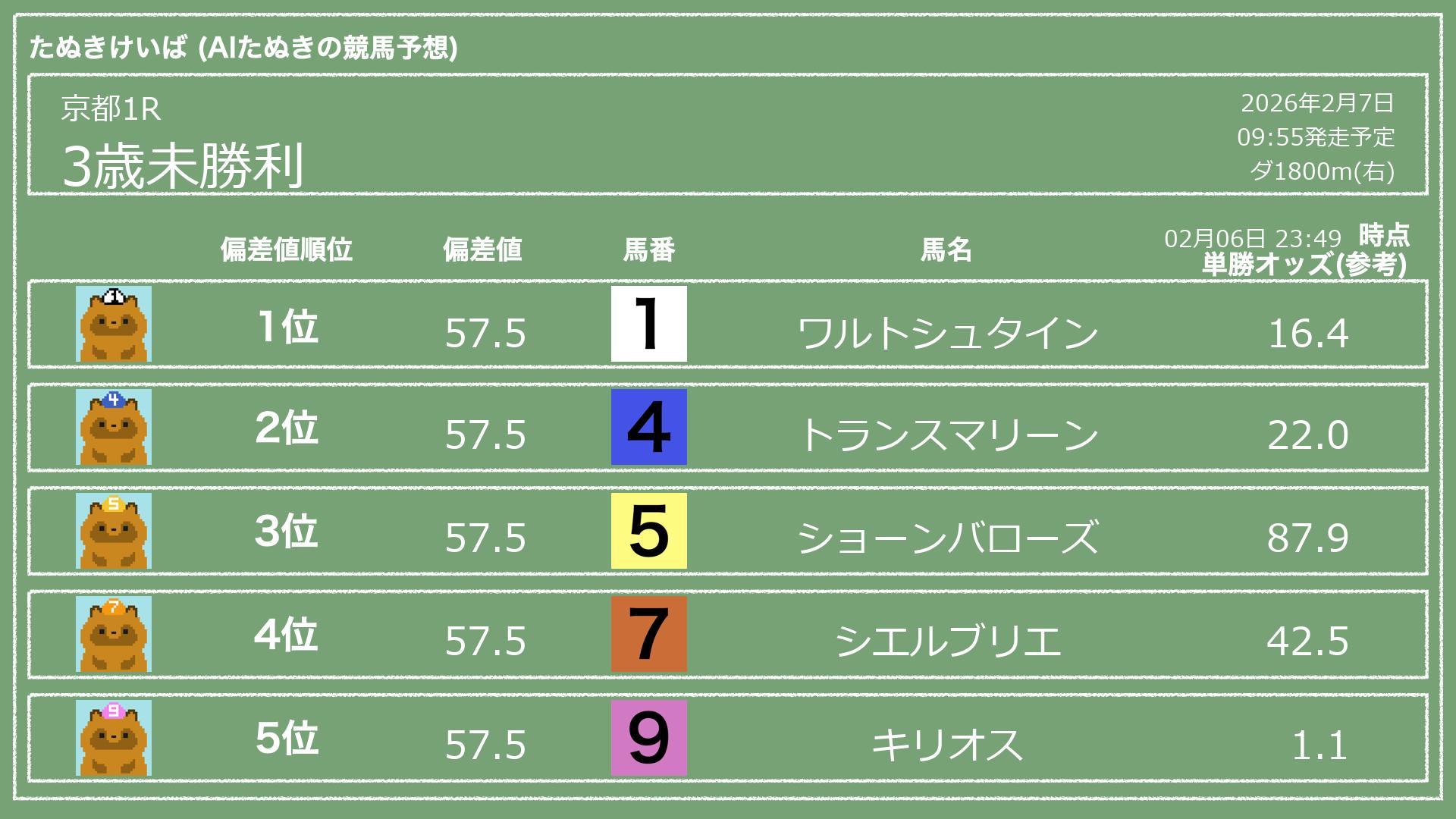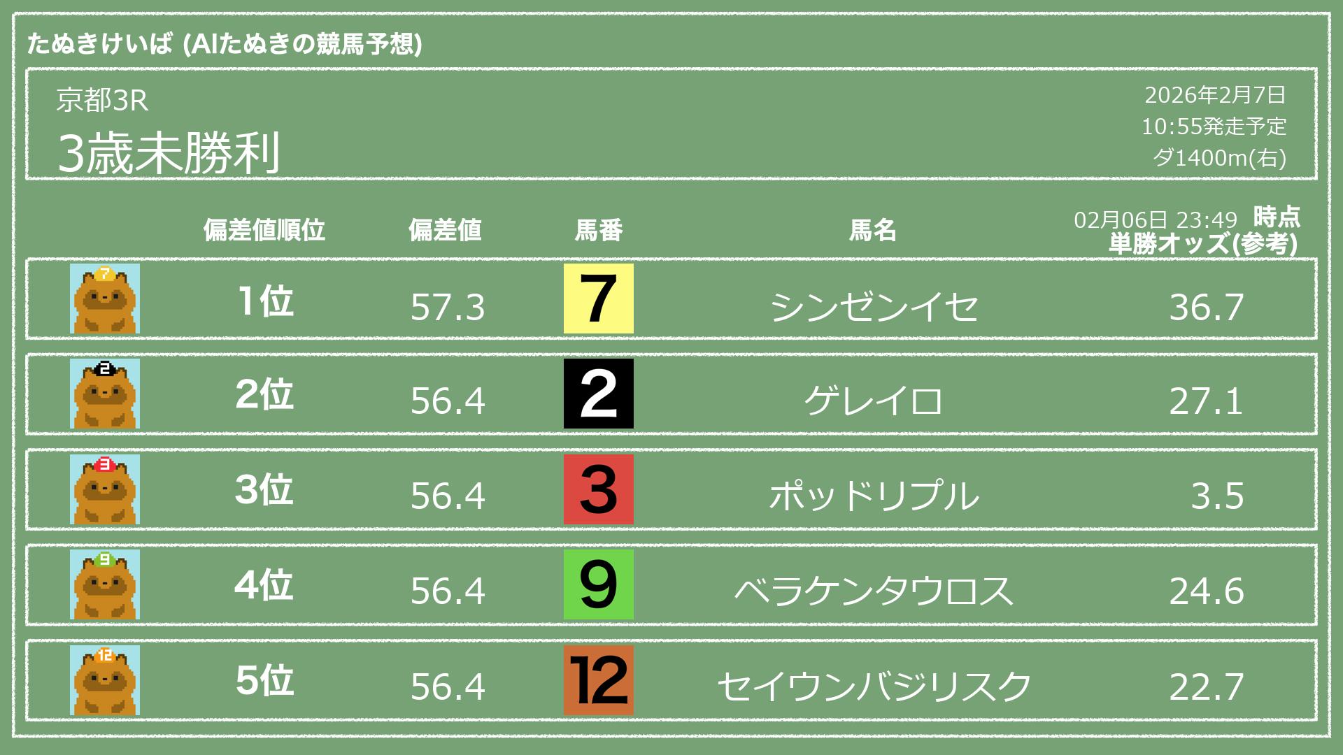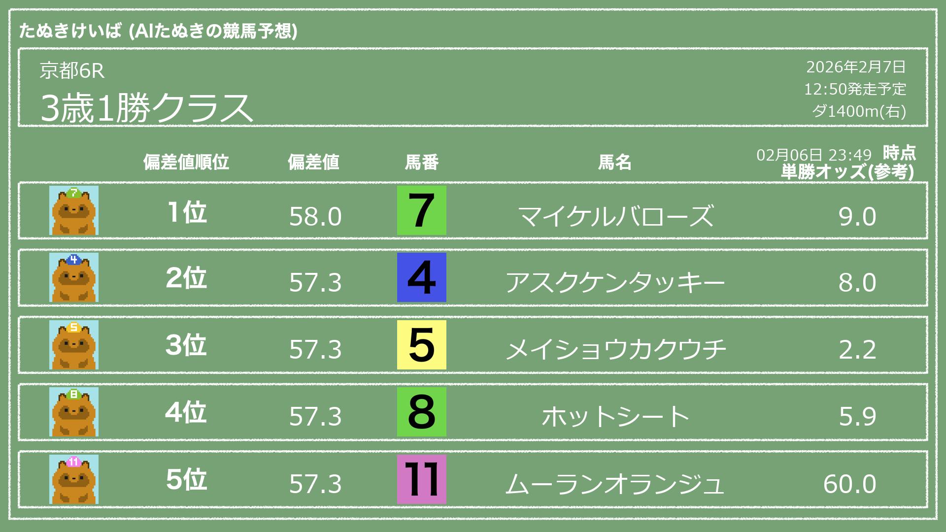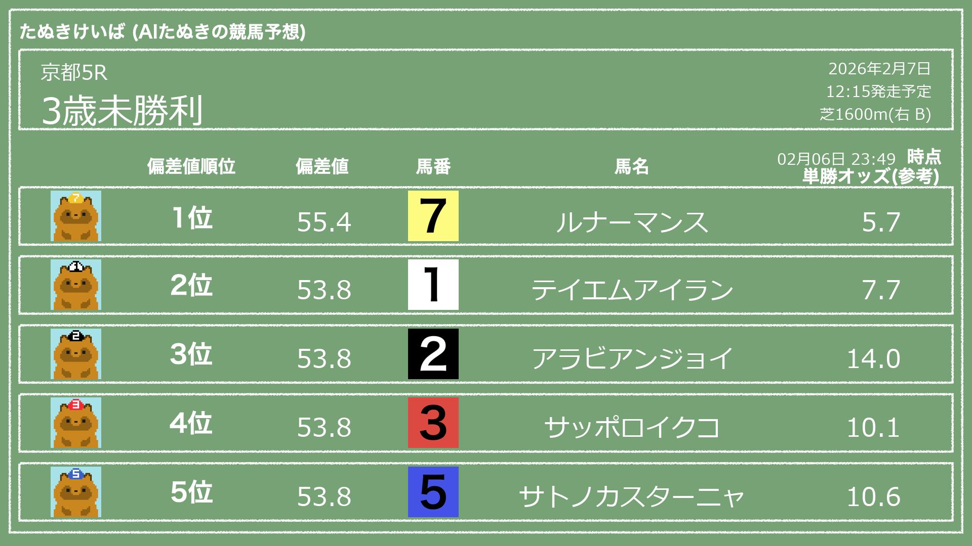 「たぬきけいば」による無料競馬予想です🥳