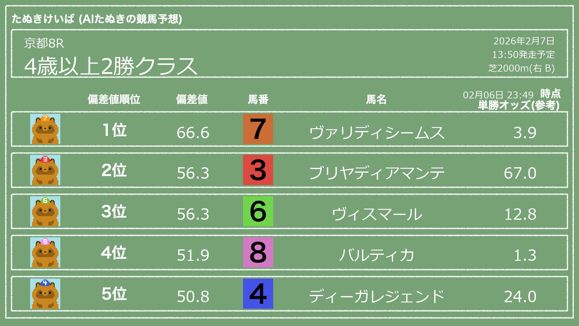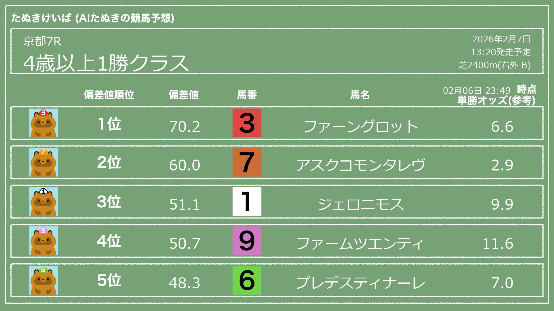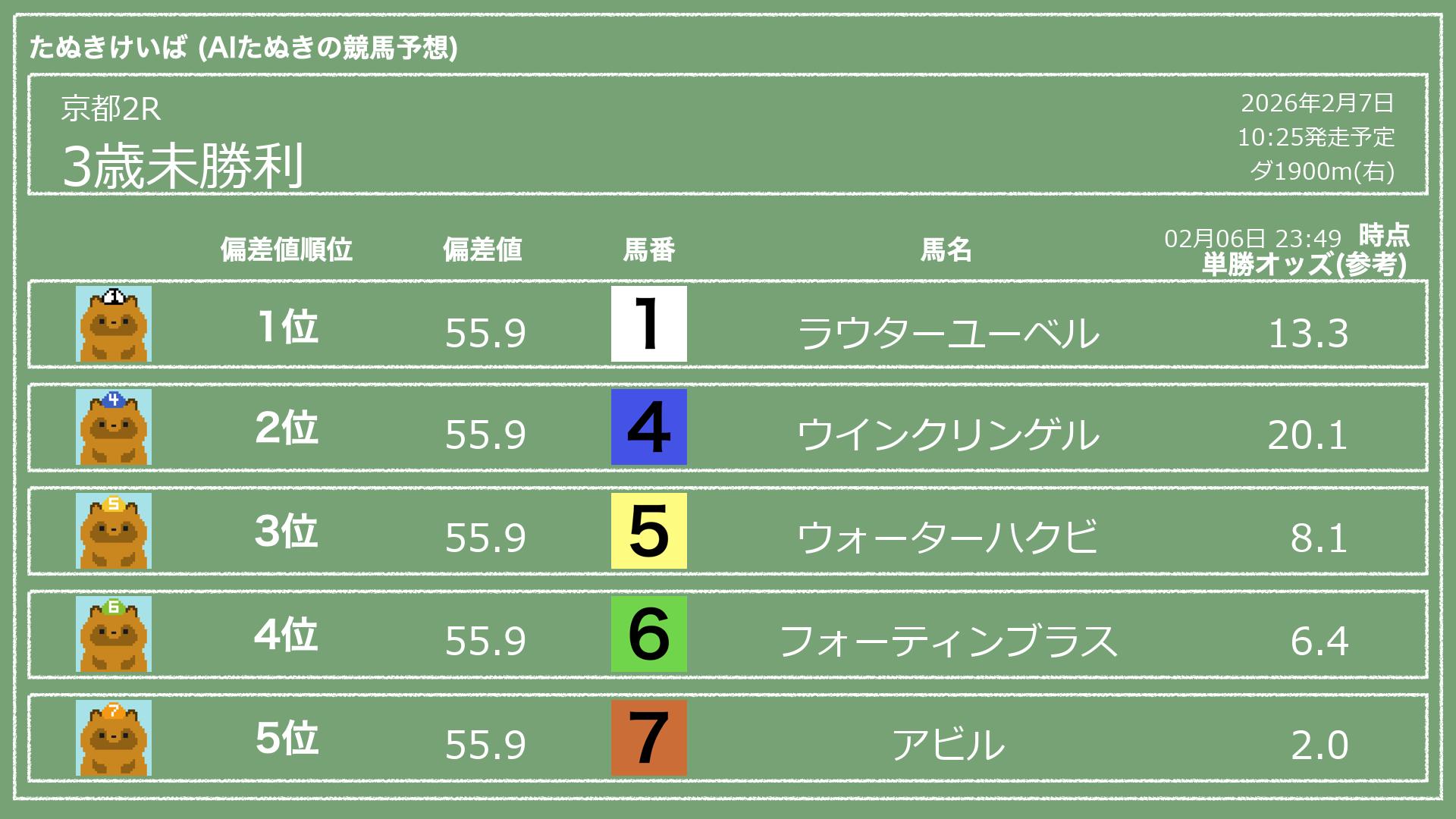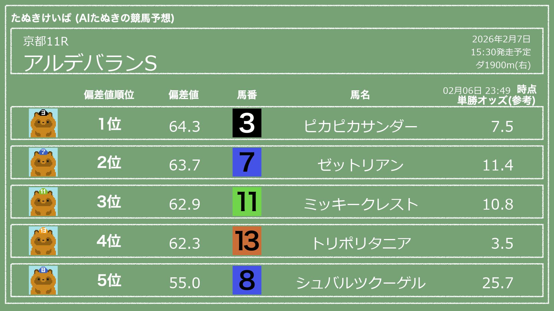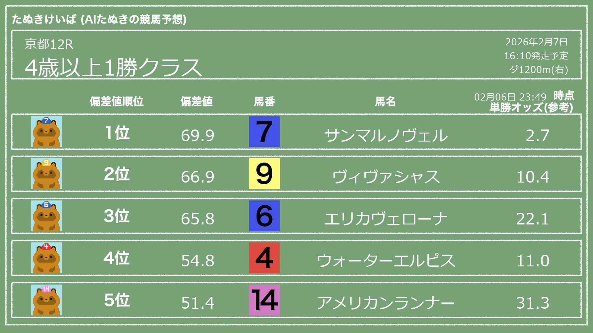 「たぬきけいば」による無料競馬予想です🥳