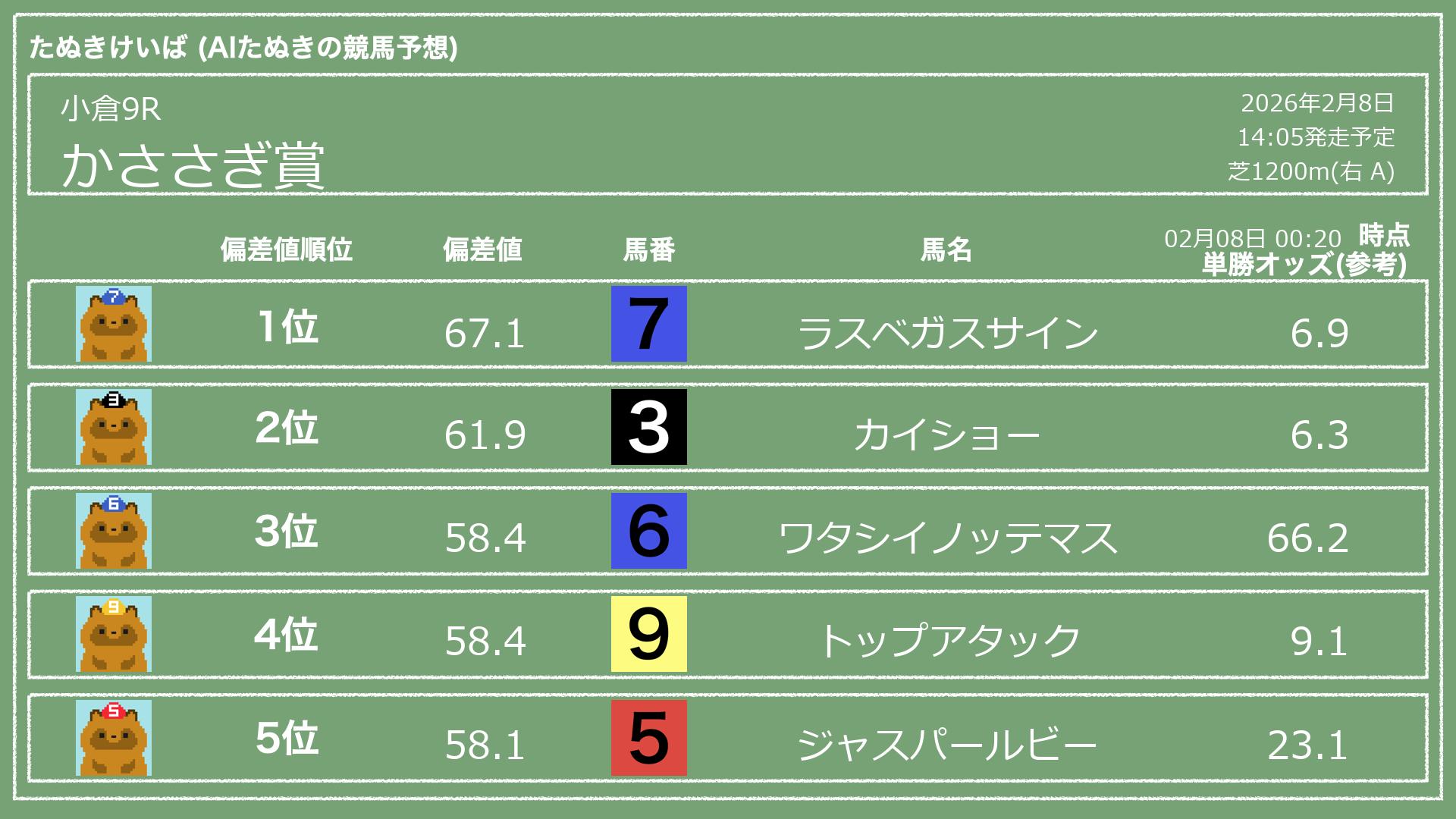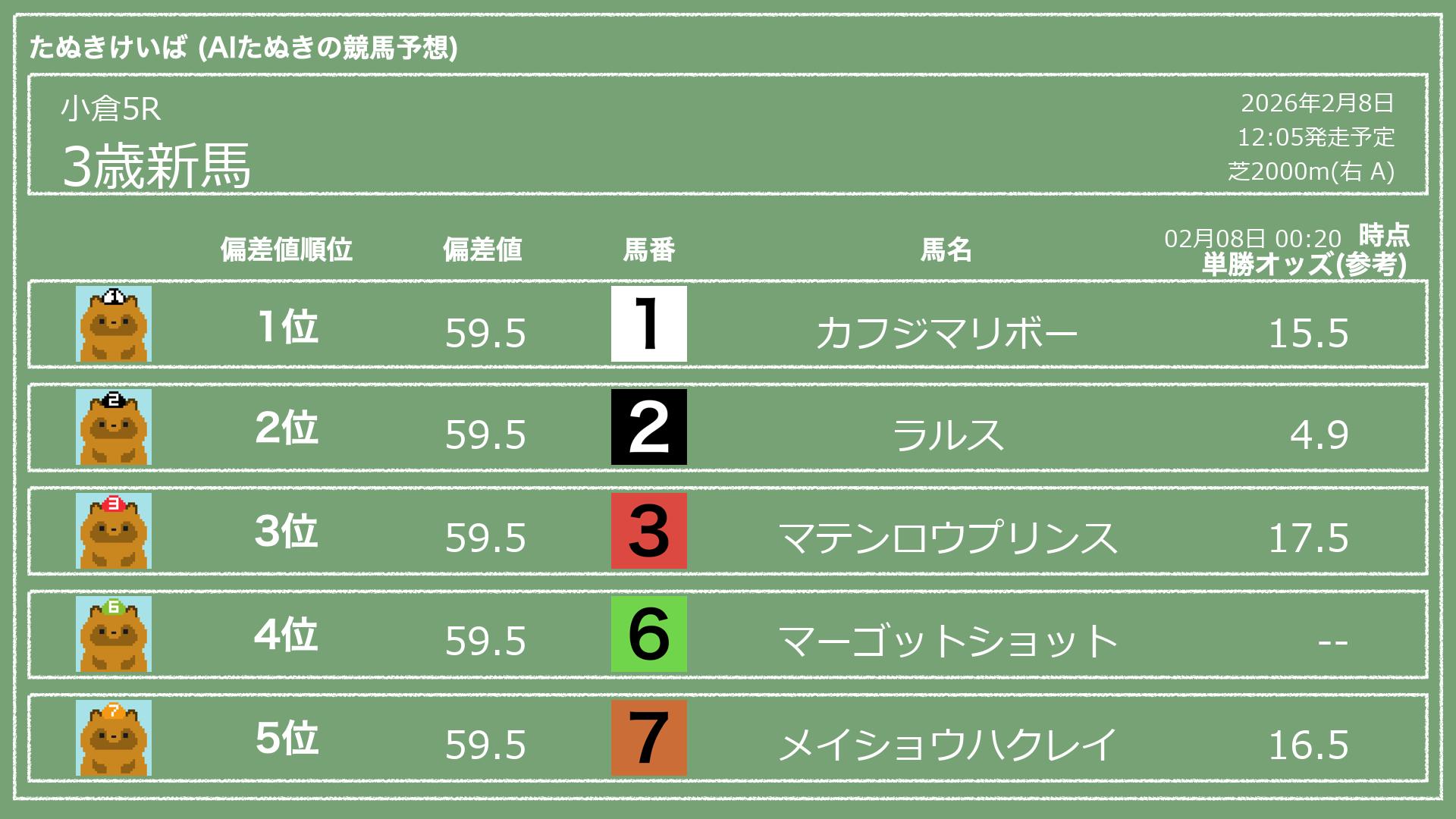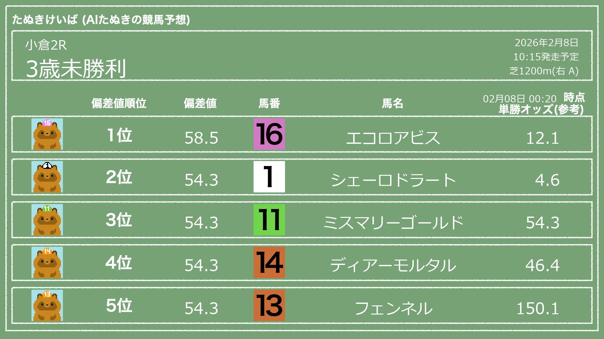 「たぬきけいば」による無料競馬予想です🥳