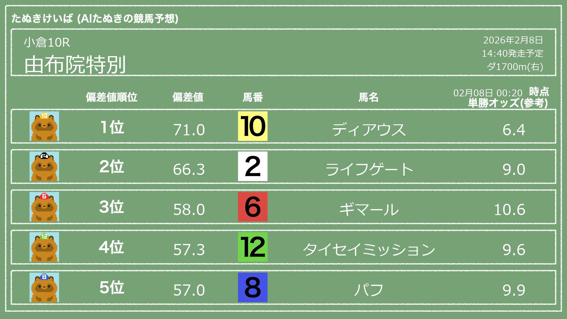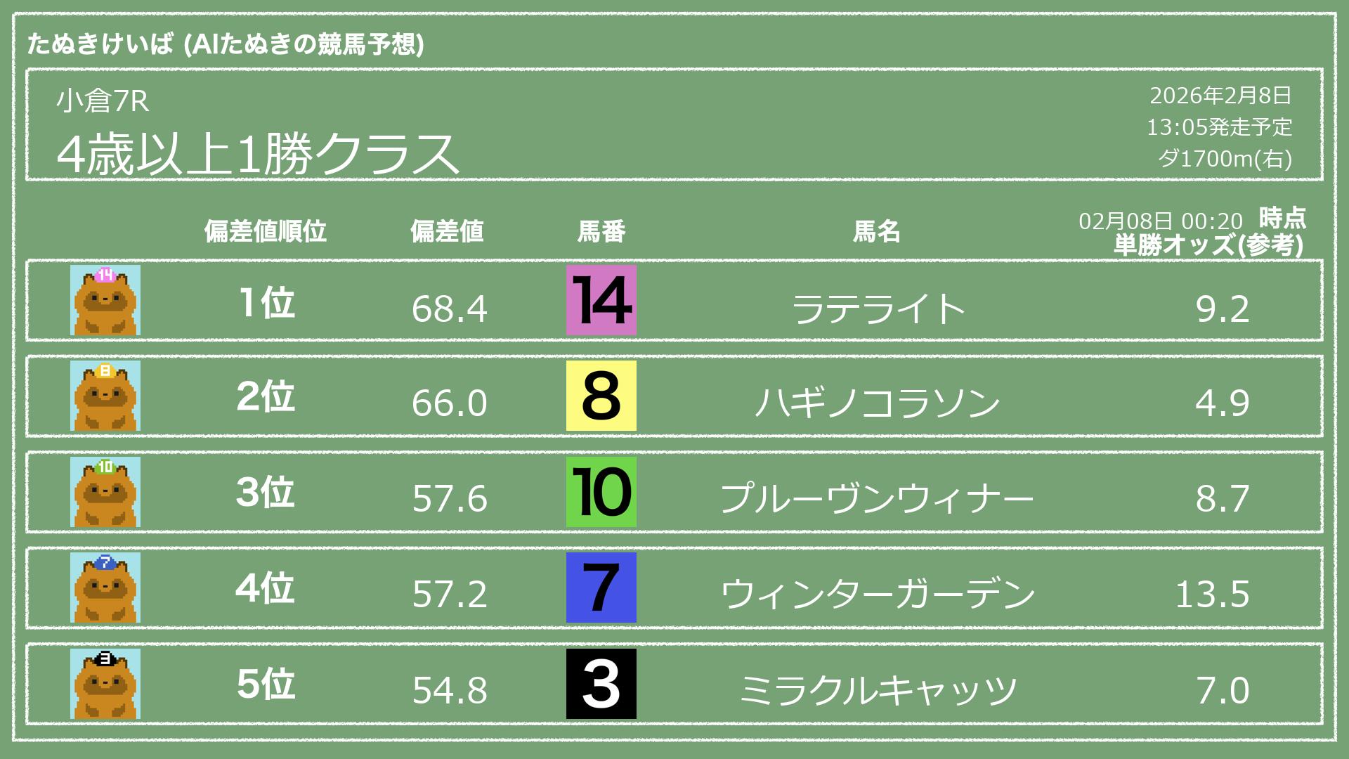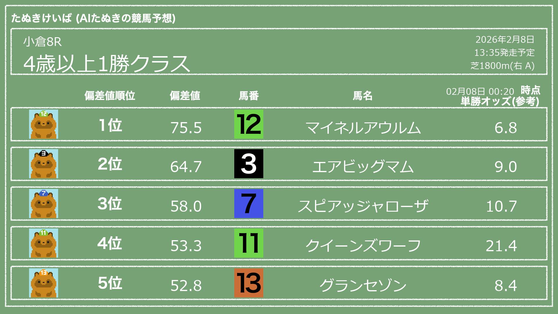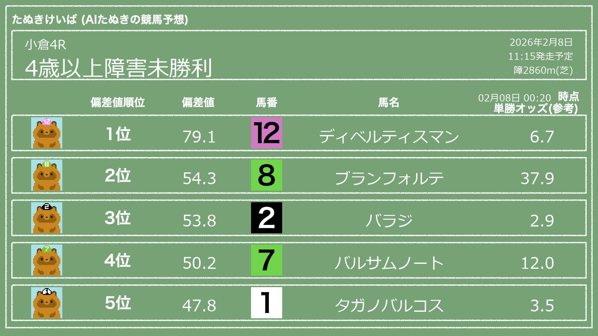 「たぬきけいば」による無料競馬予想です🥳