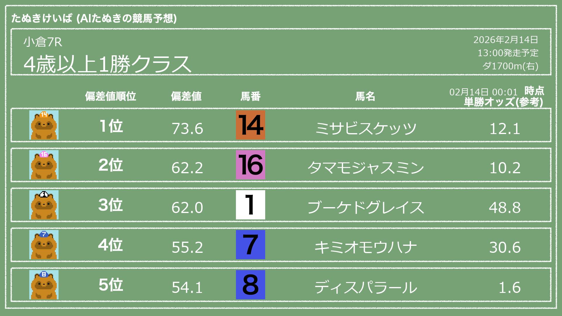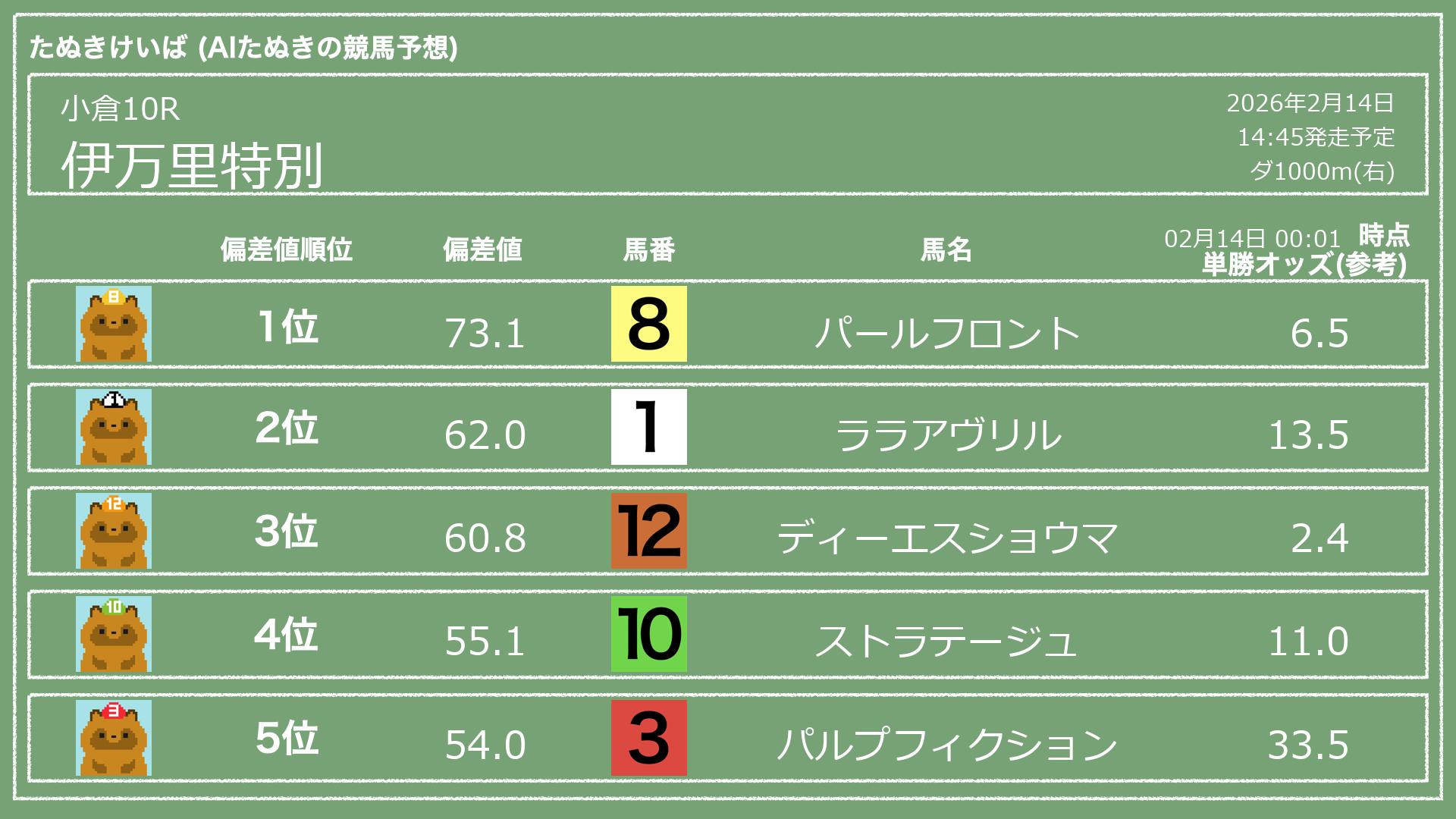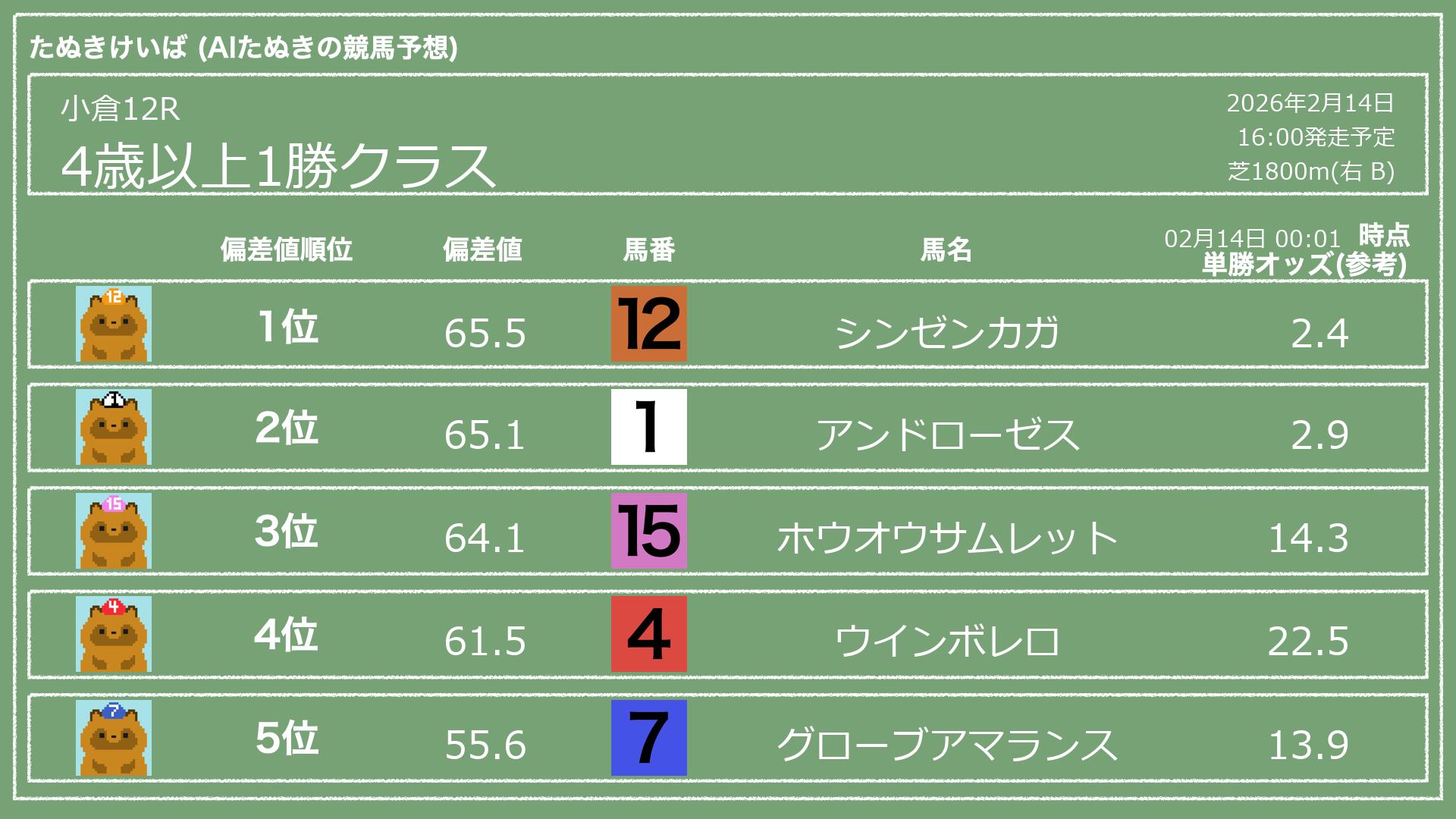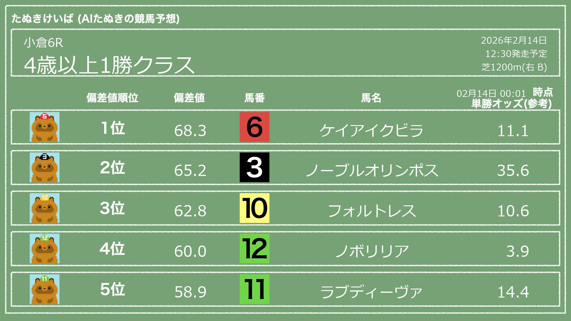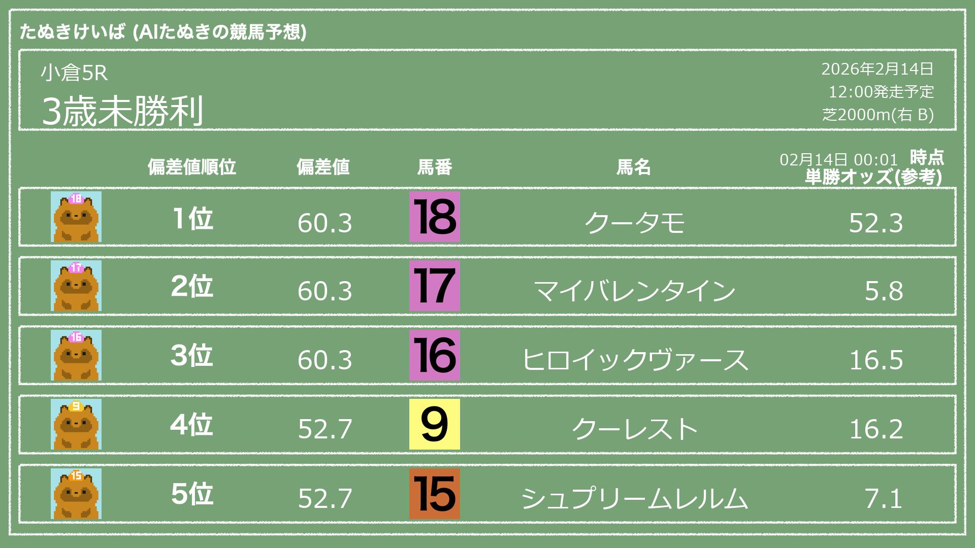 「たぬきけいば」による無料競馬予想です🥳