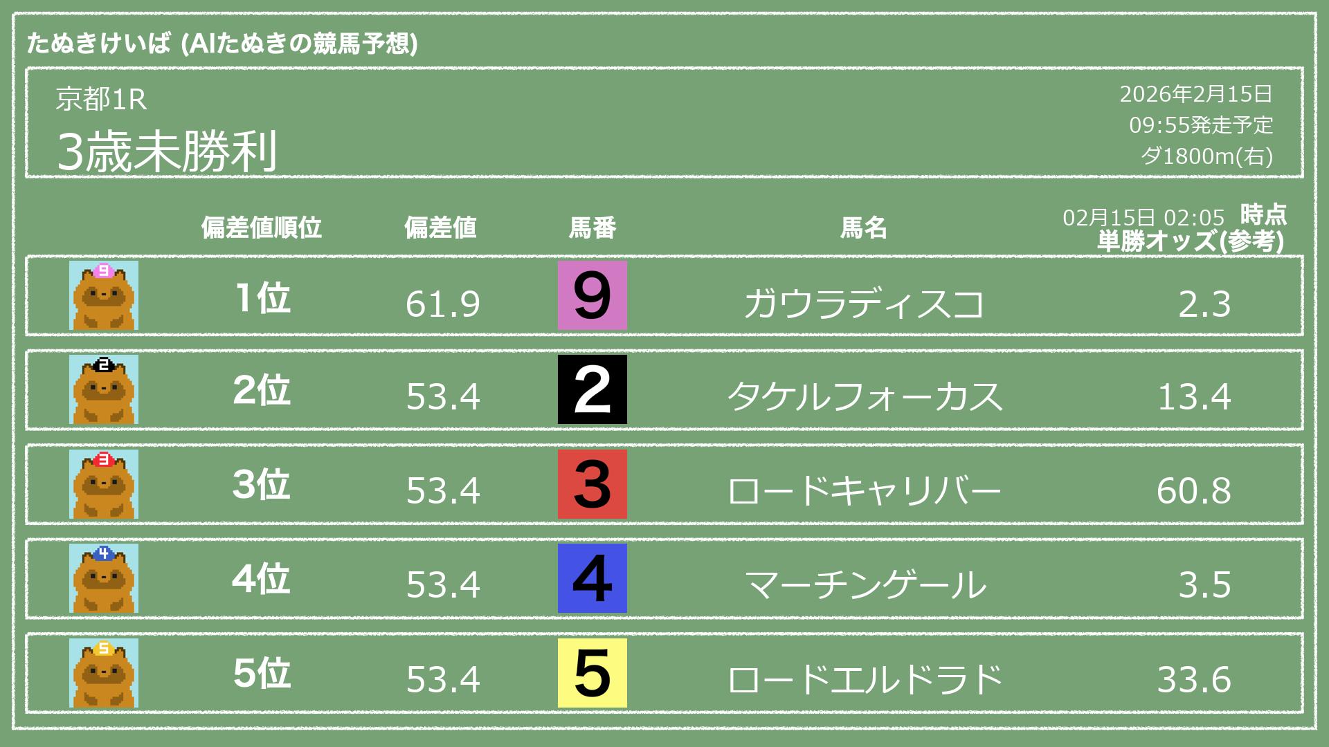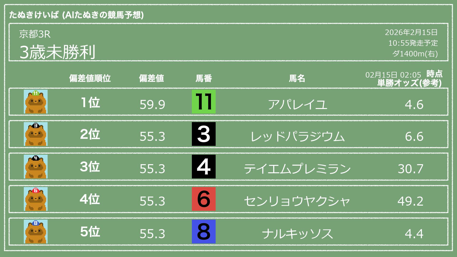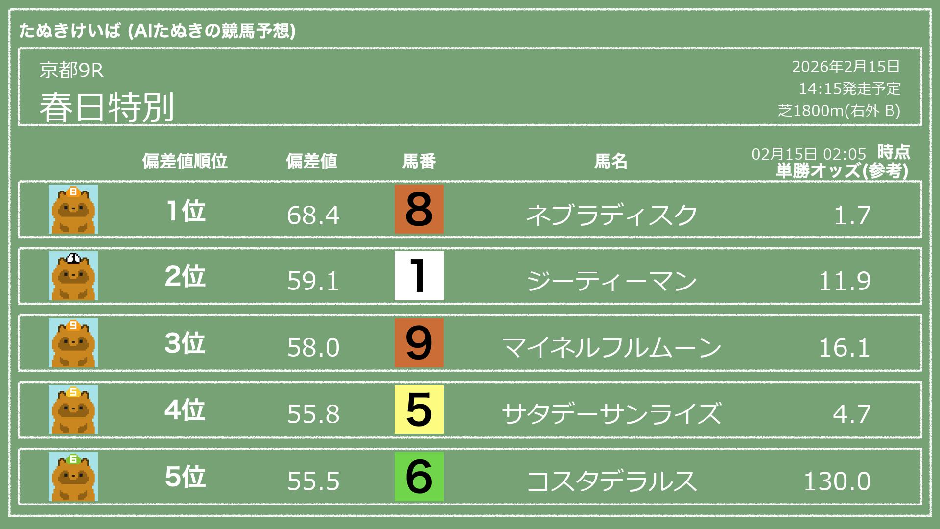 「たぬきけいば」による無料競馬予想です🥳