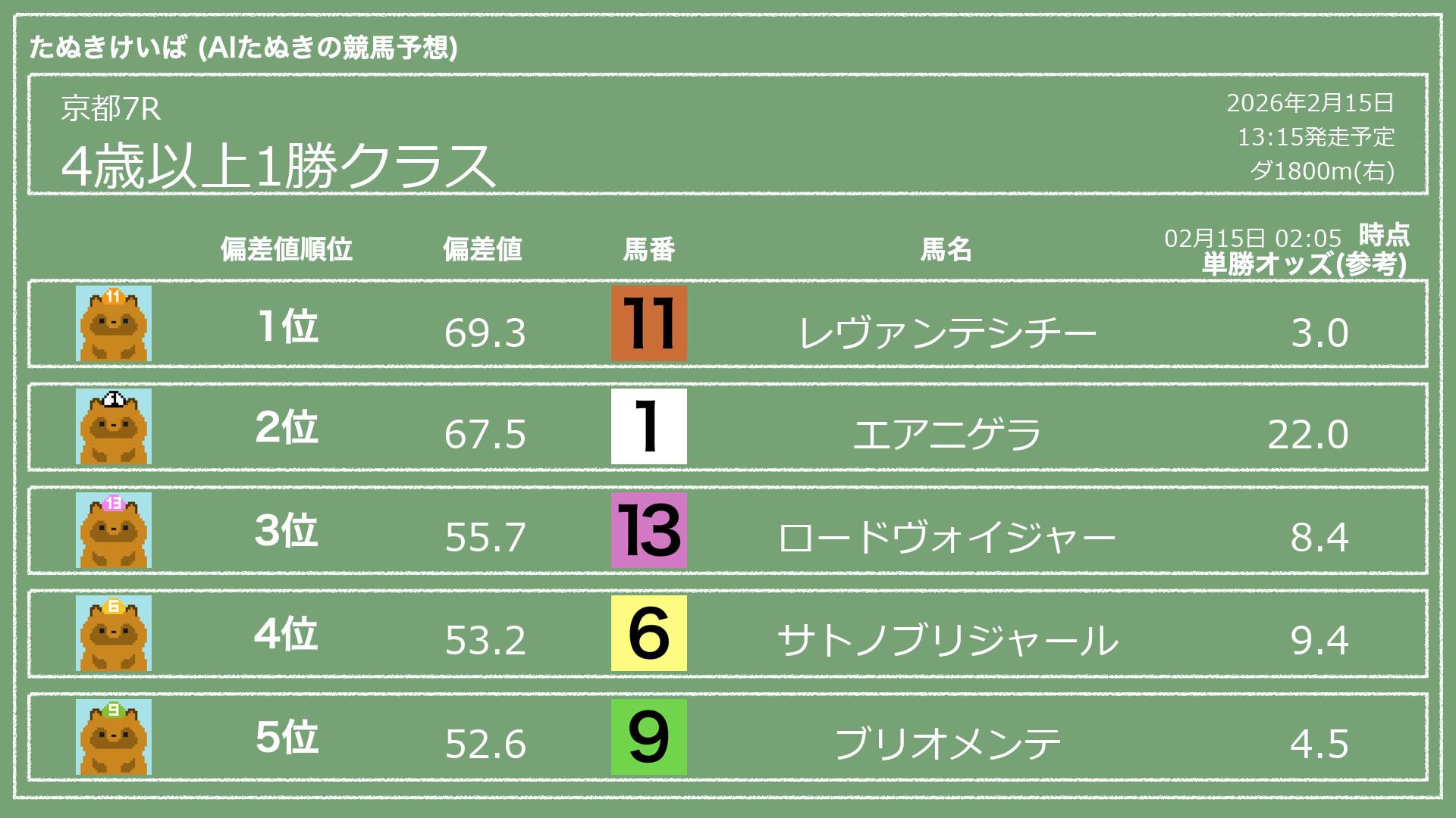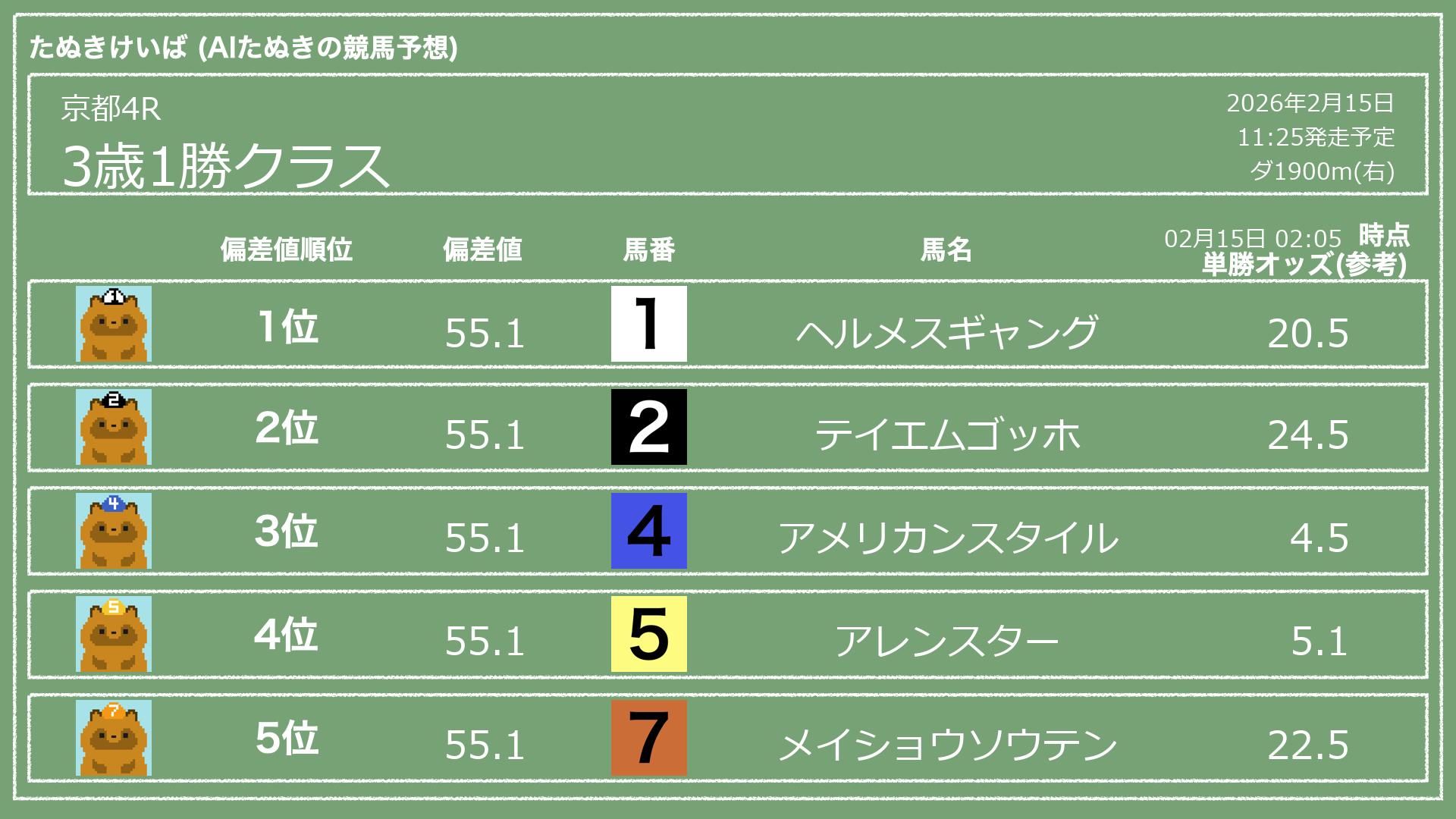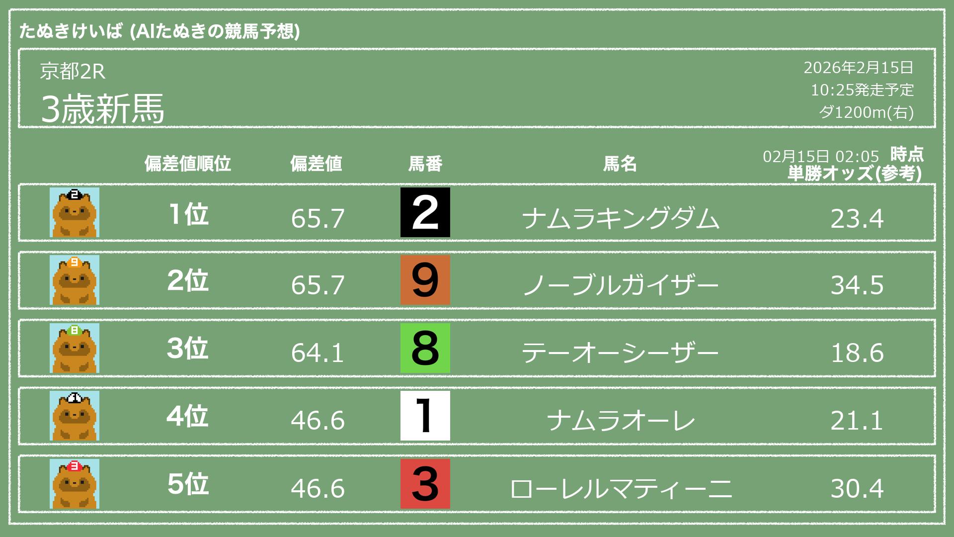 「たぬきけいば」による無料競馬予想です🥳
