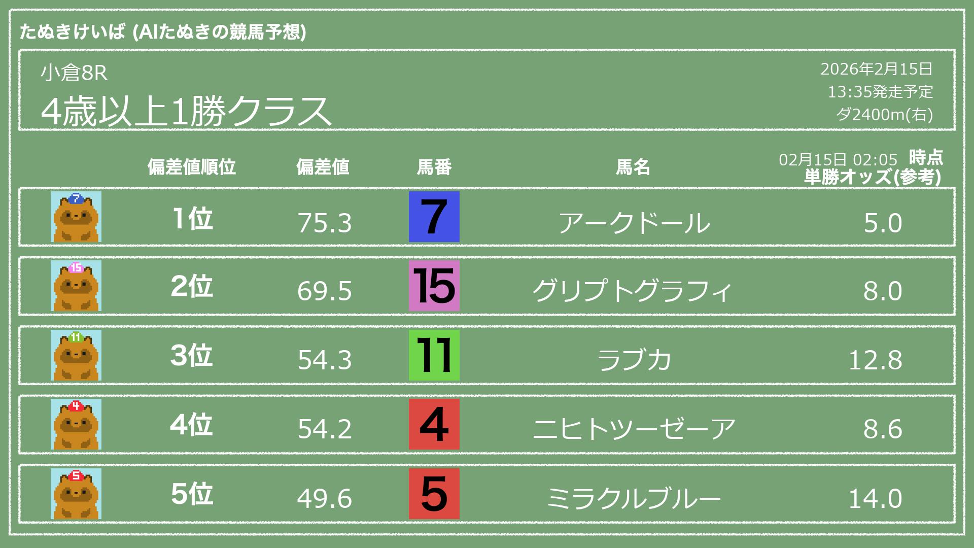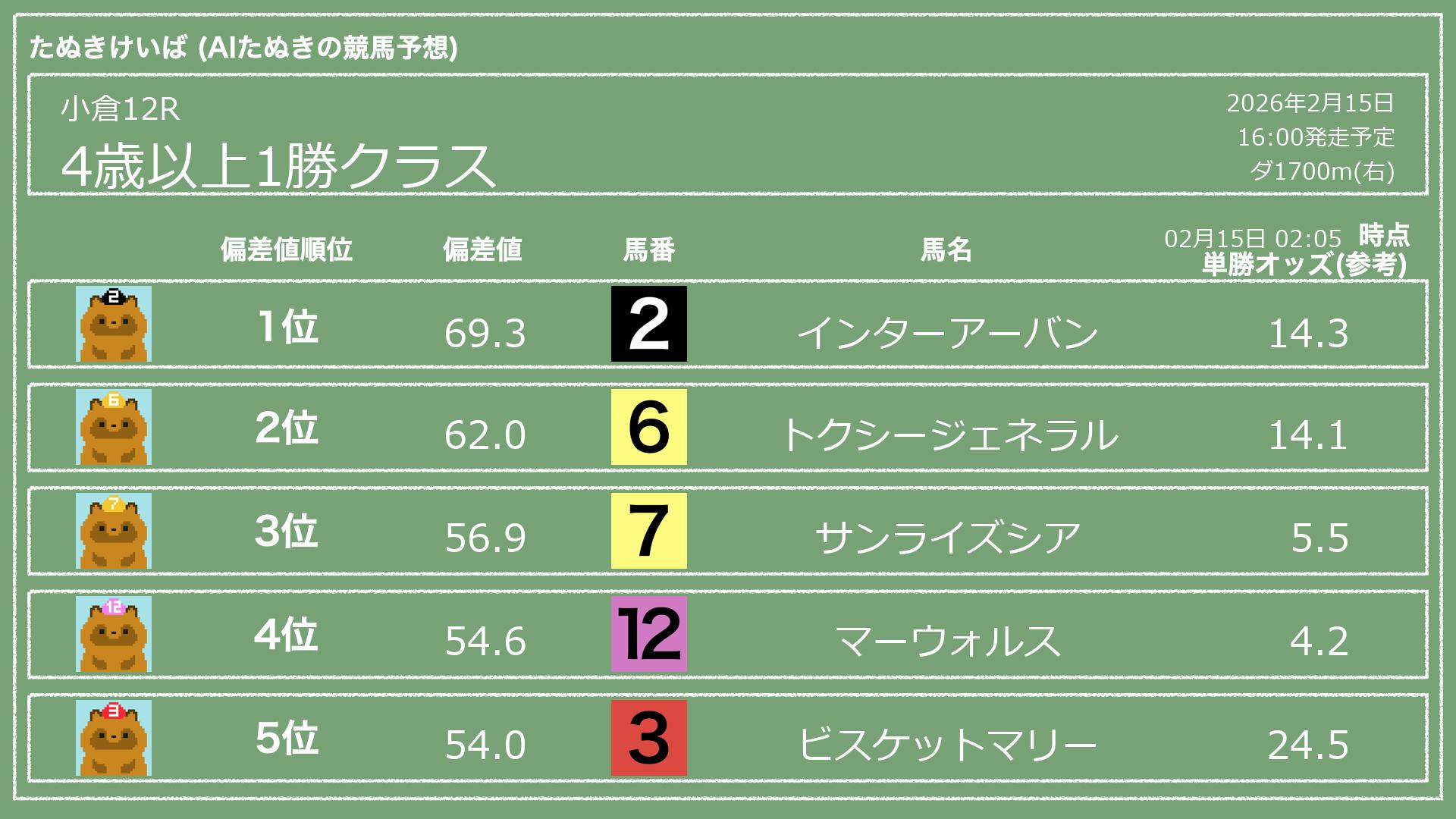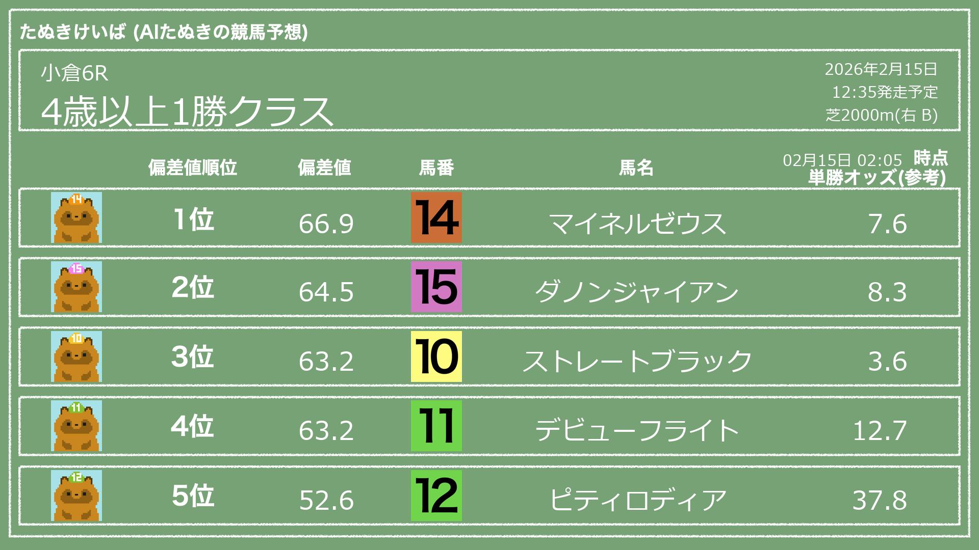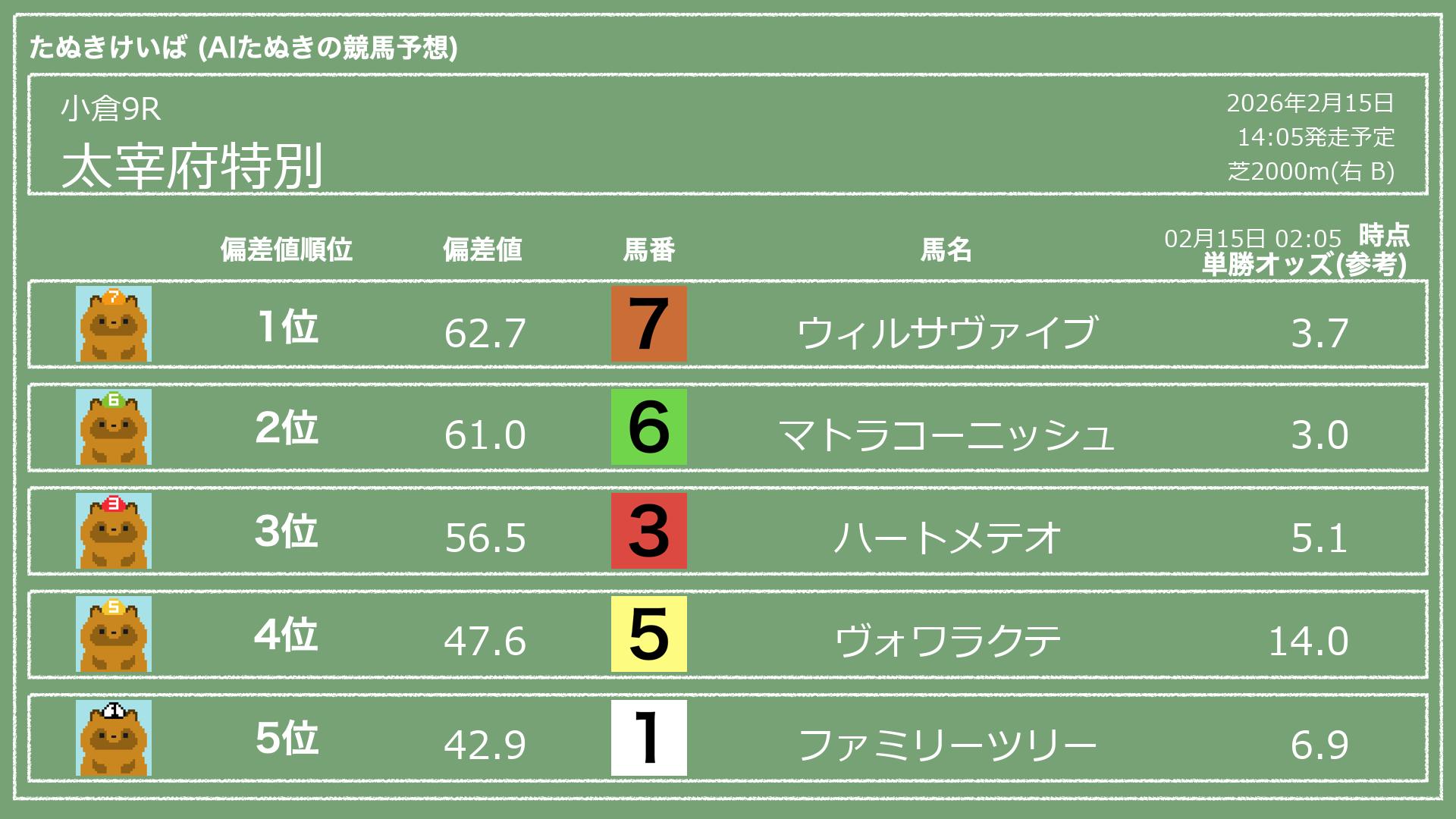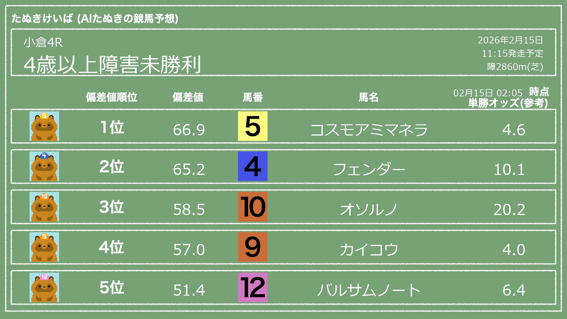 「たぬきけいば」による無料競馬予想です🥳