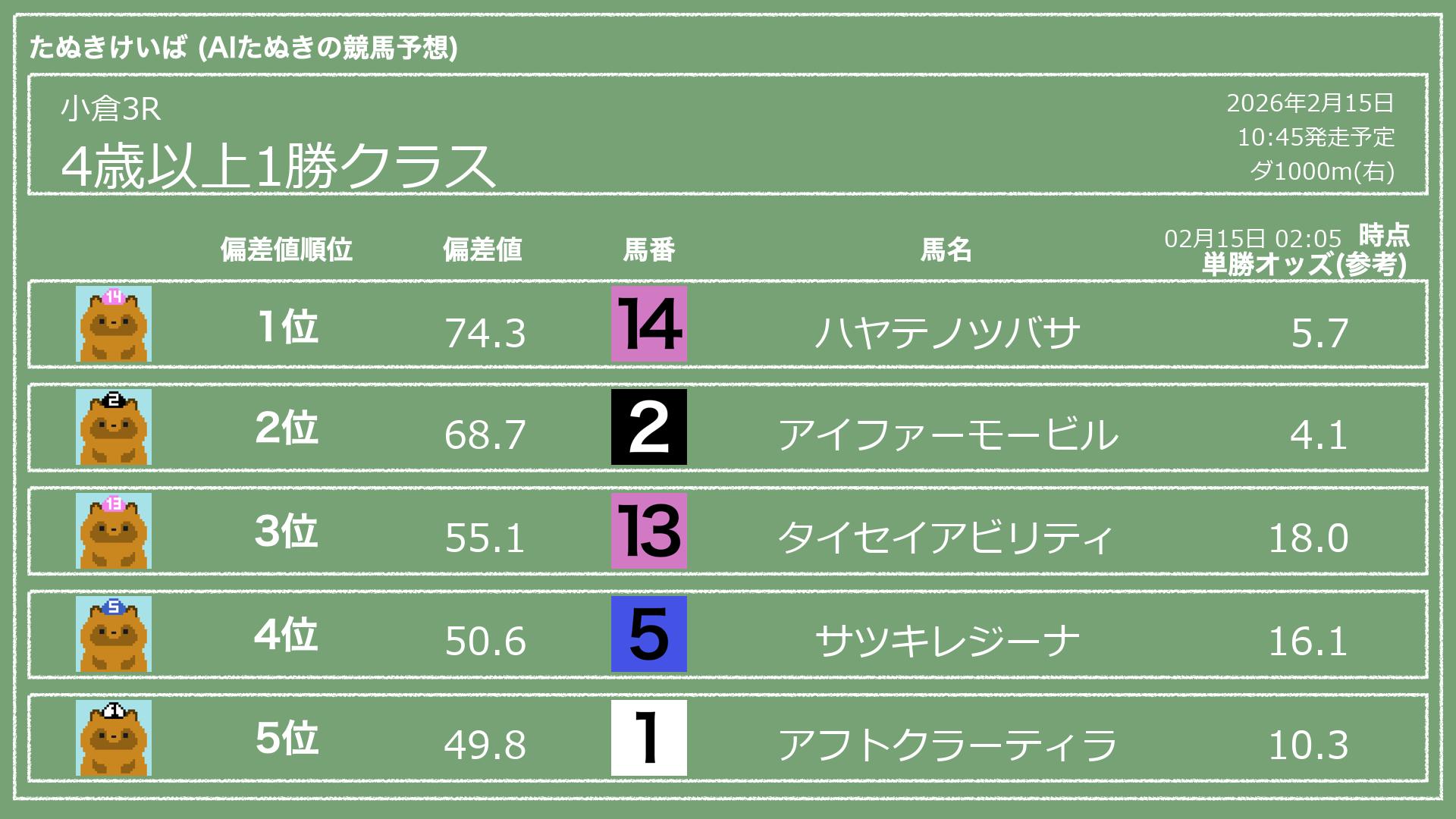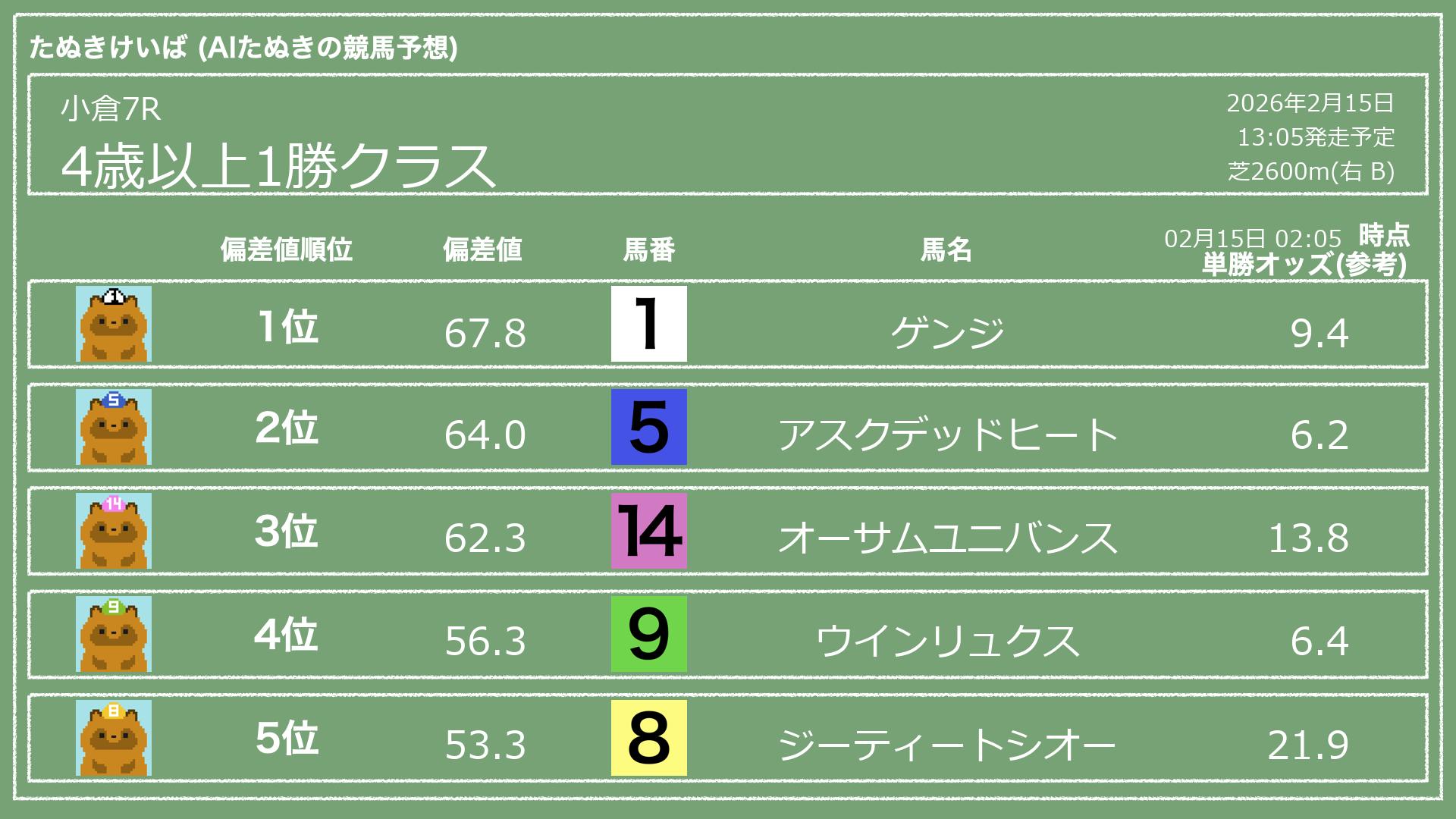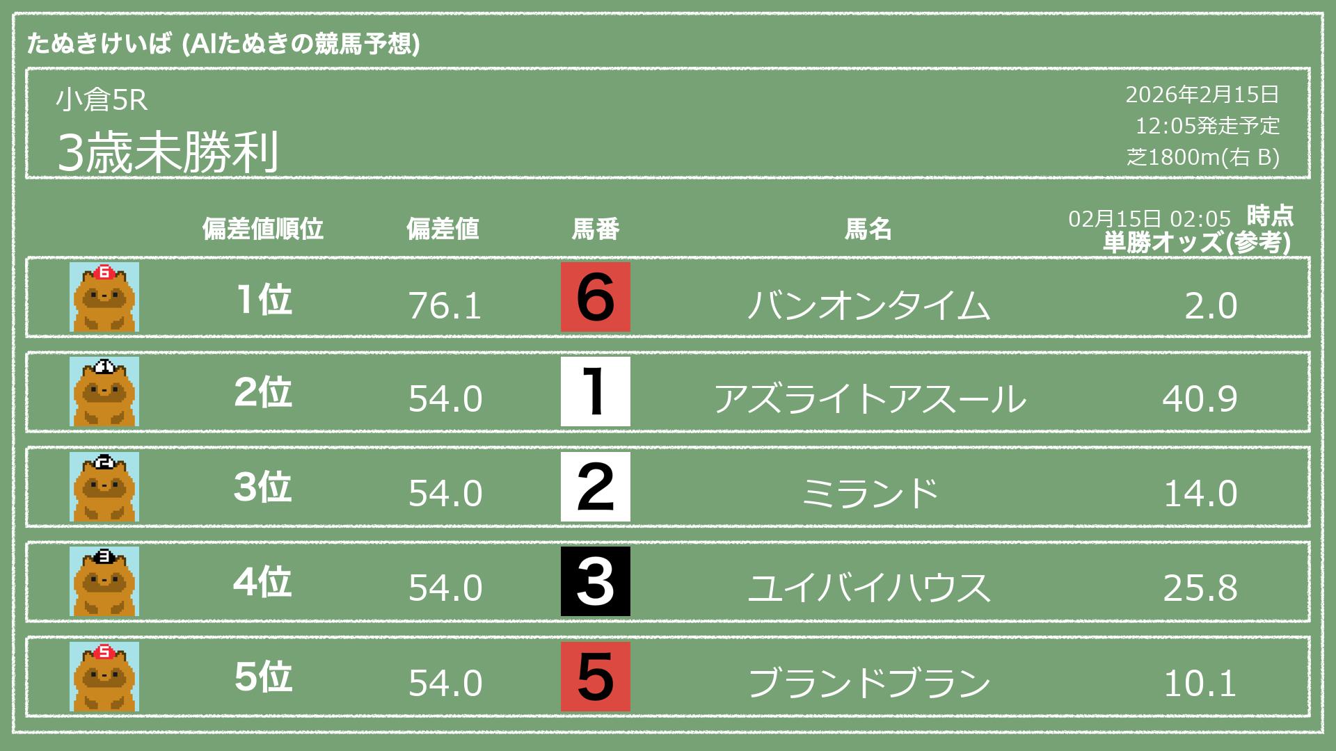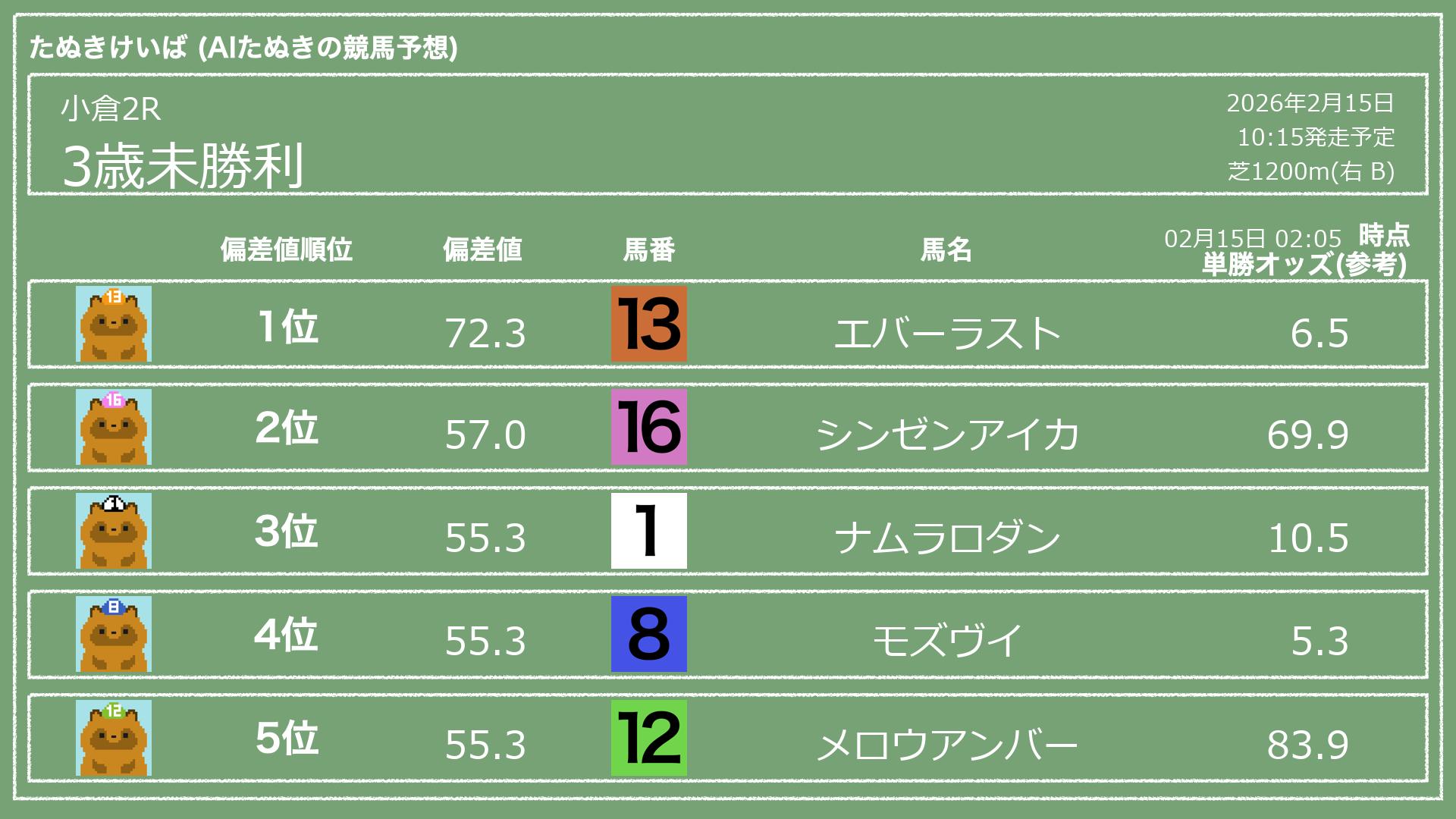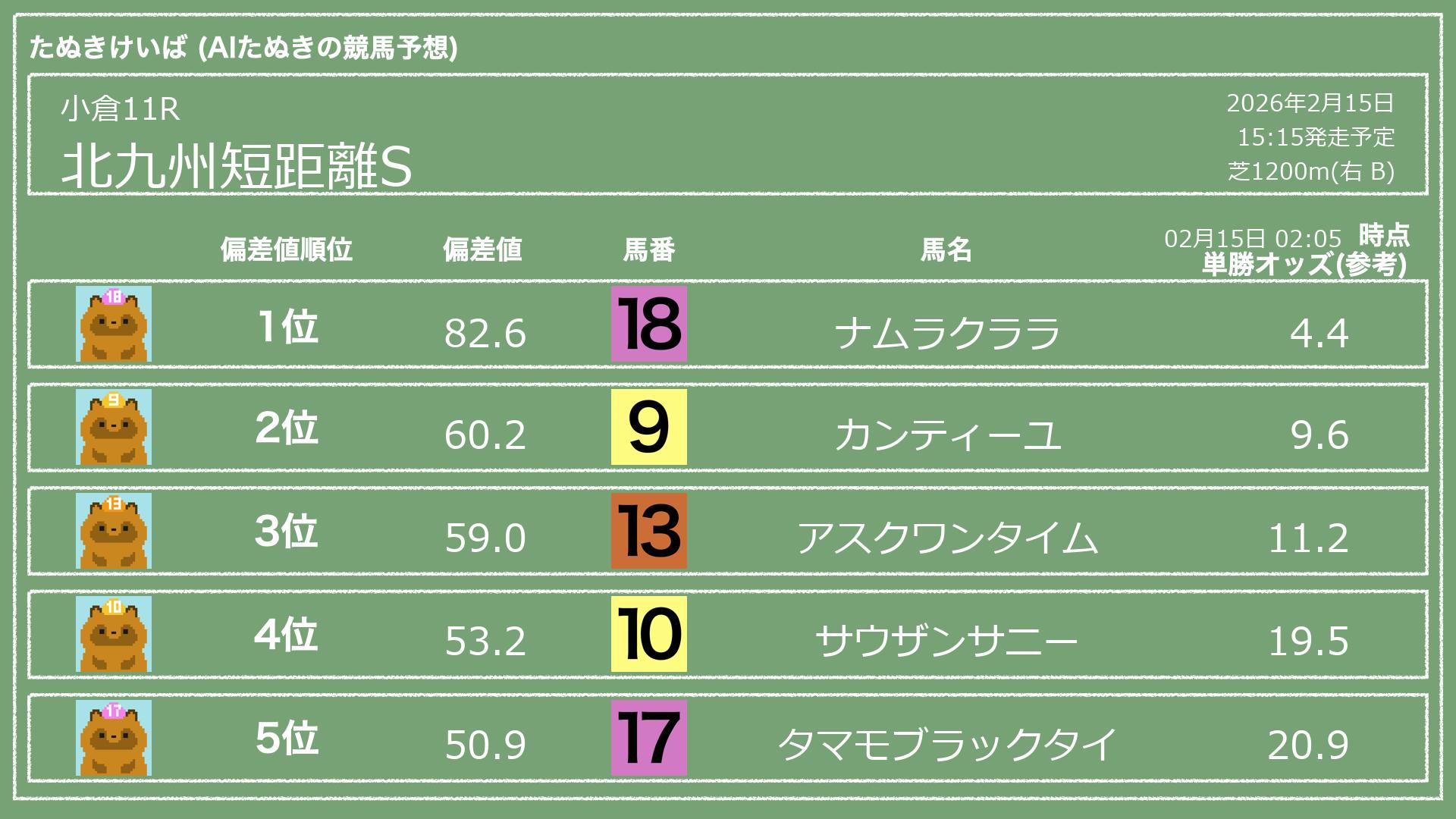 「たぬきけいば」による無料競馬予想です🥳