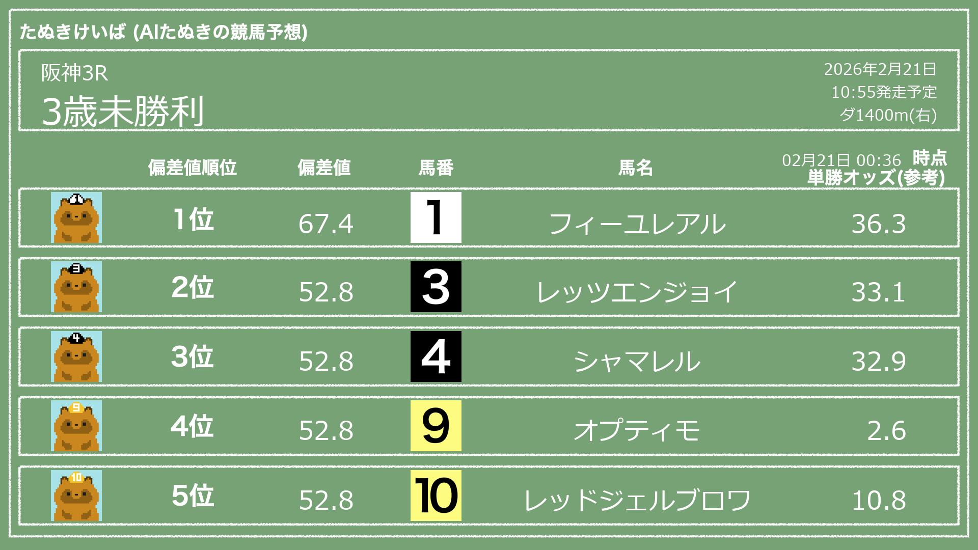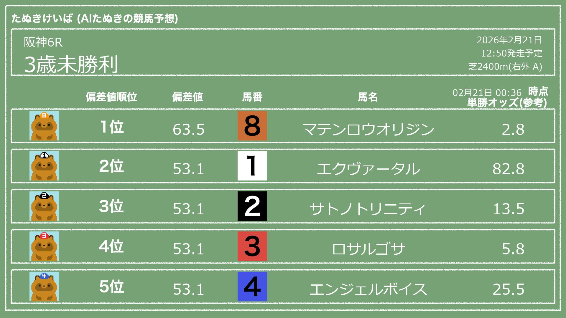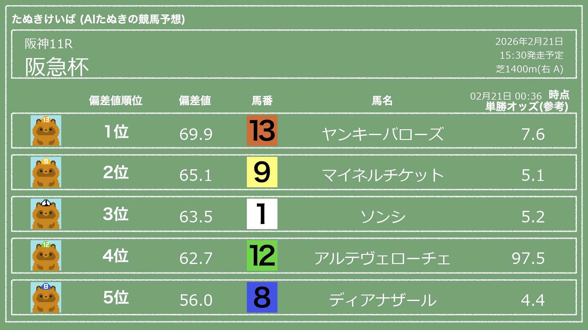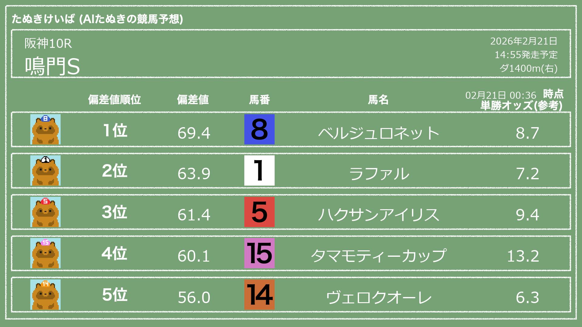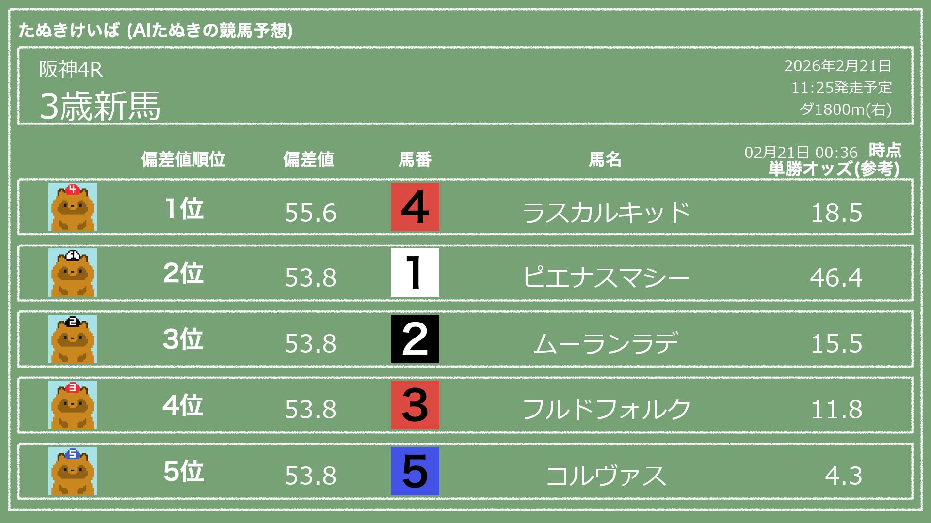 「たぬきけいば」による無料競馬予想です🥳