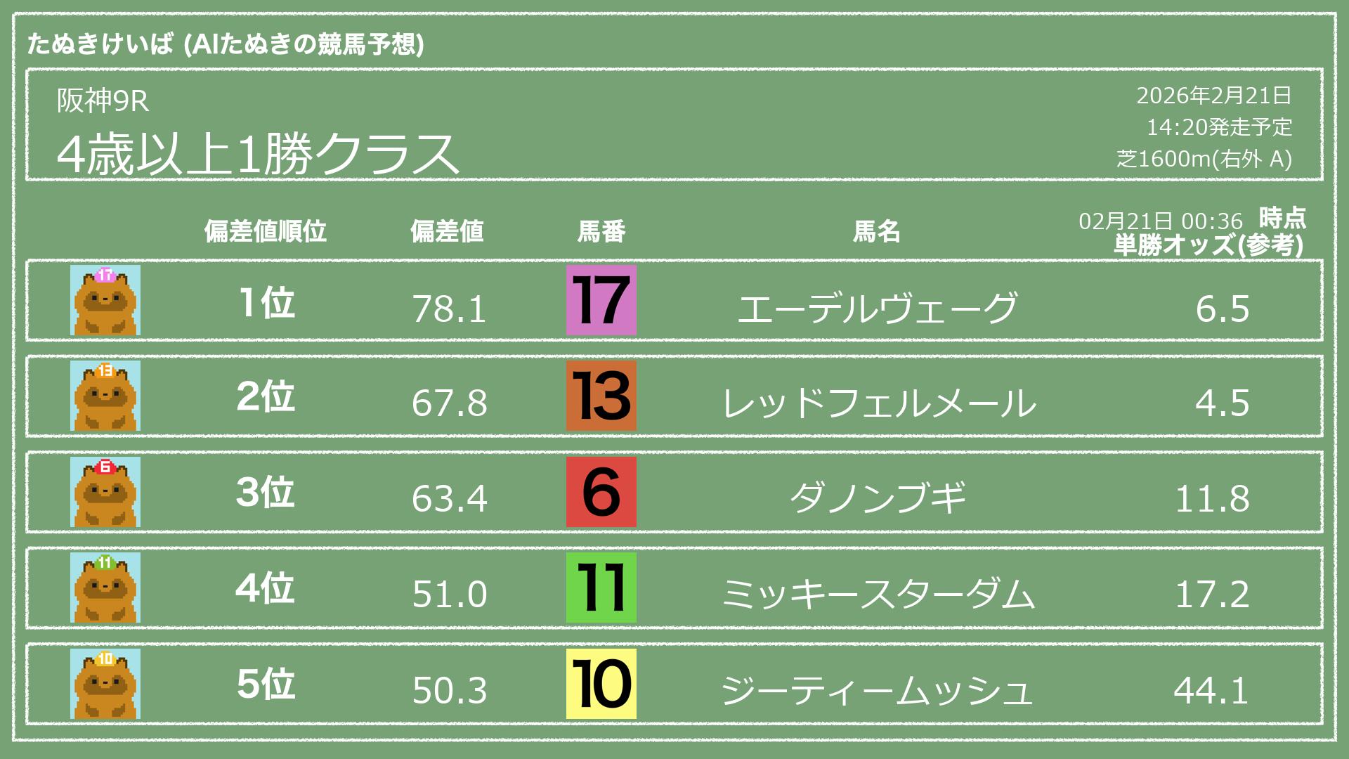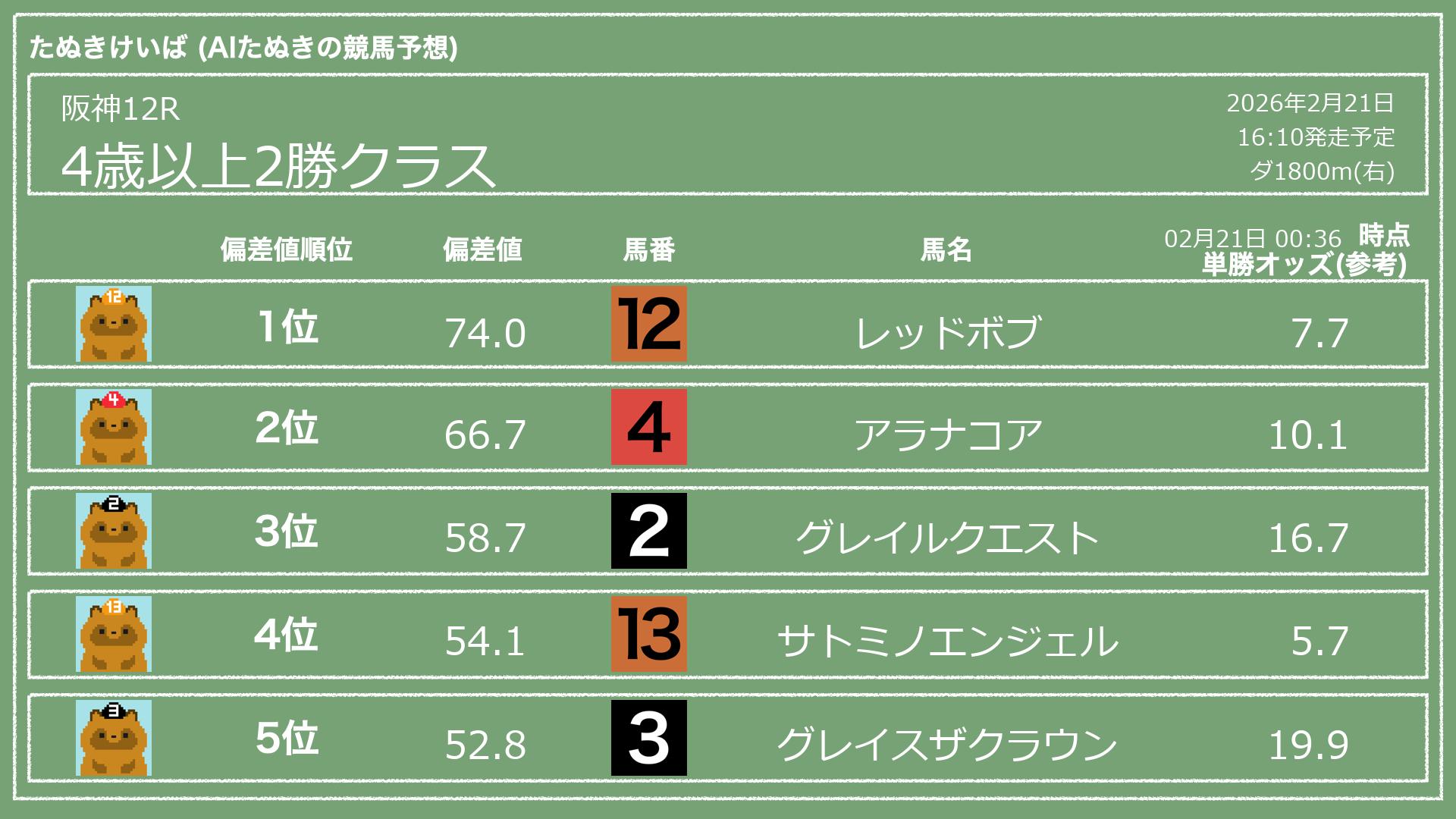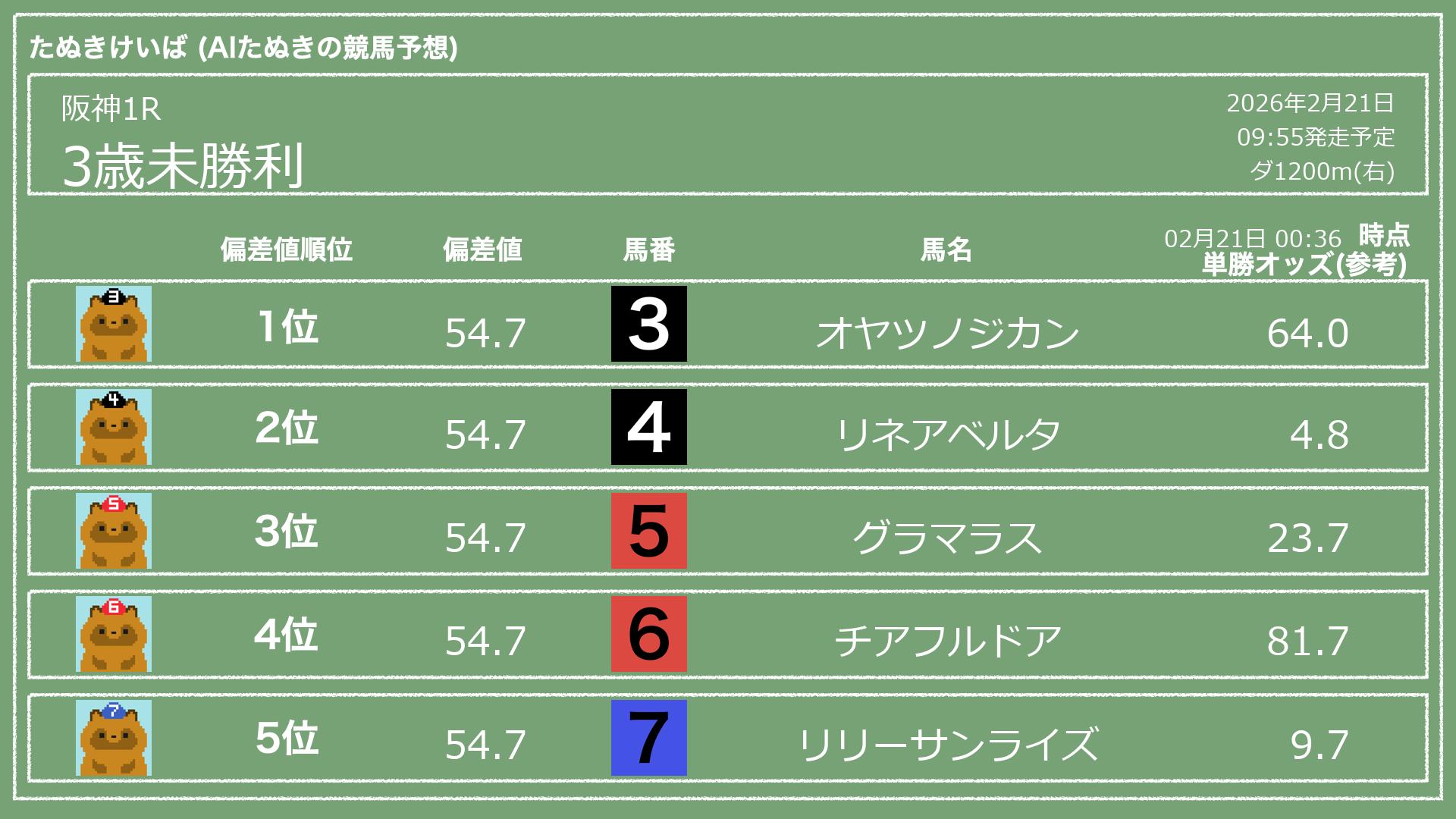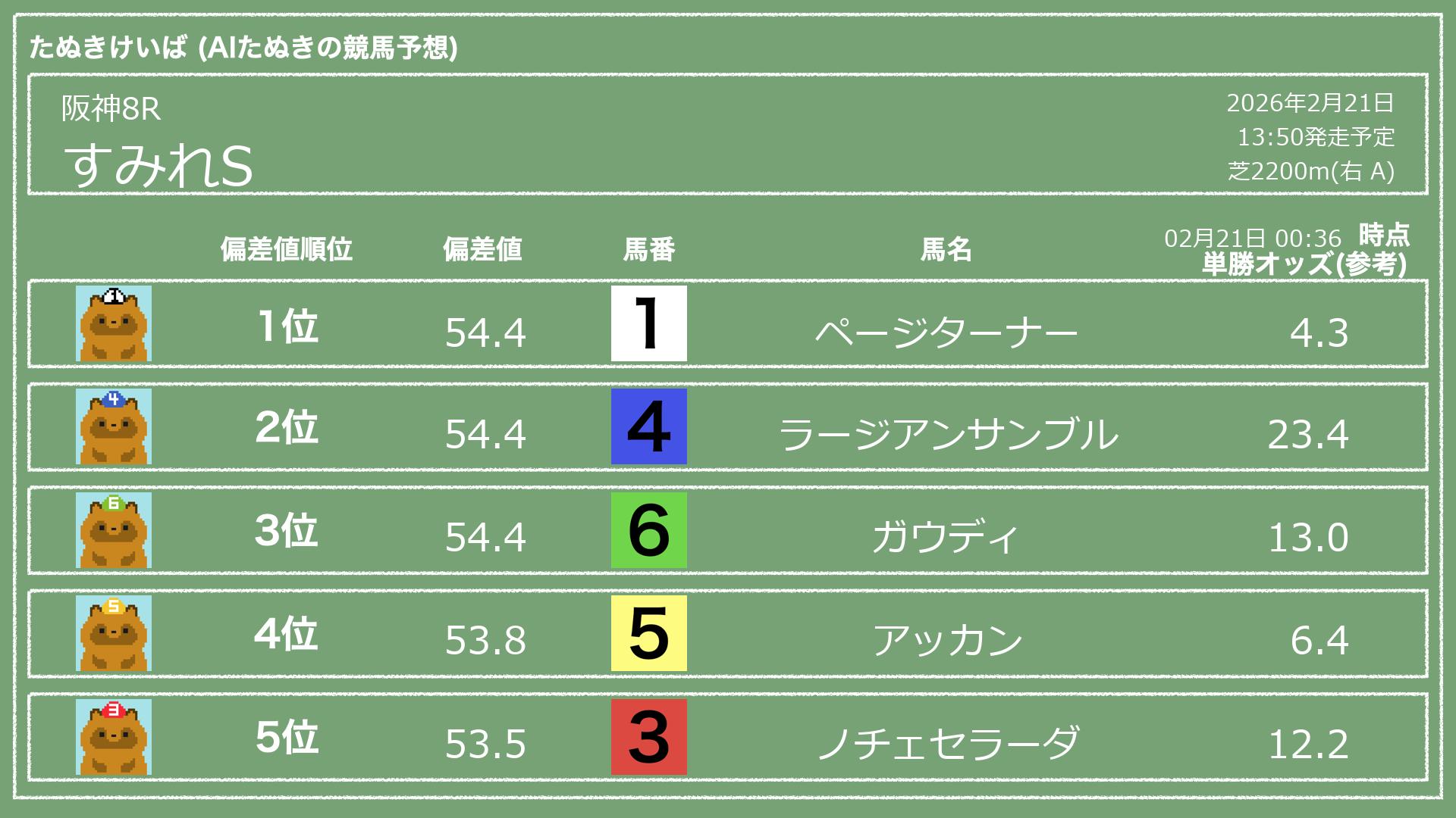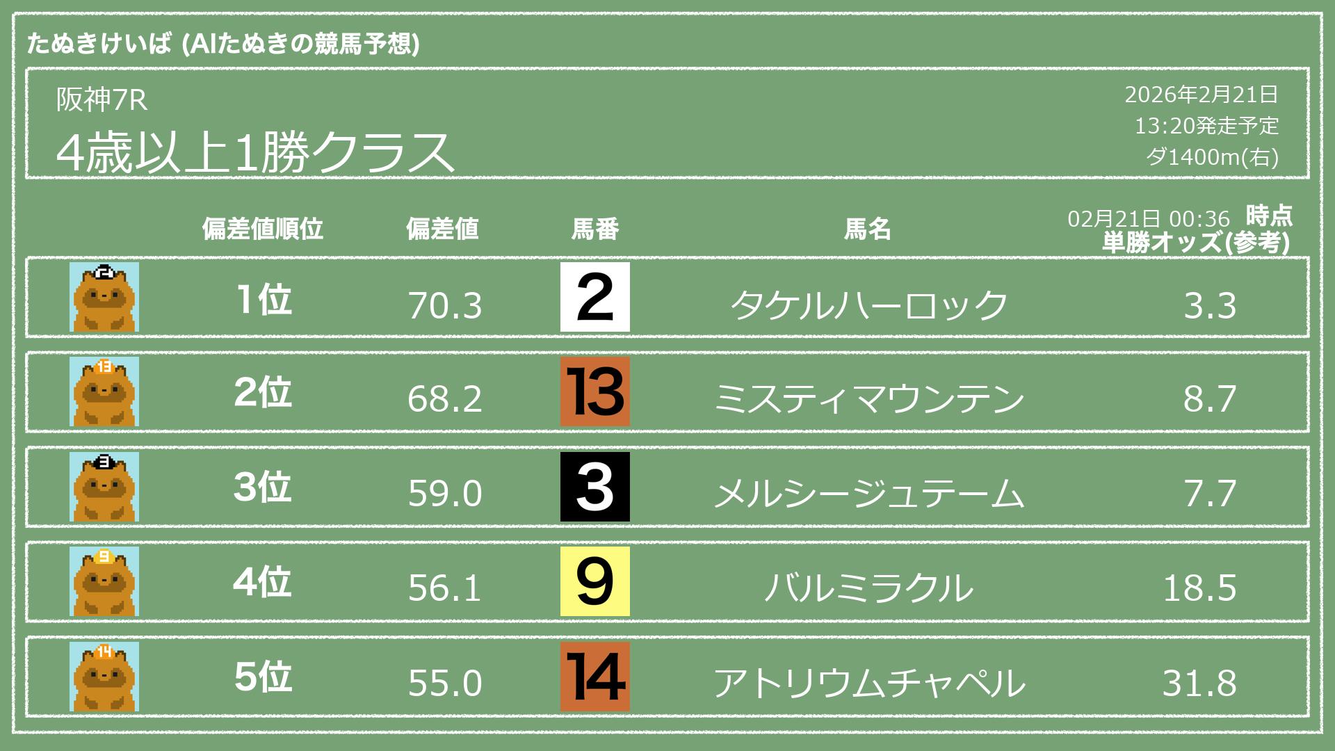 「たぬきけいば」による無料競馬予想です🥳