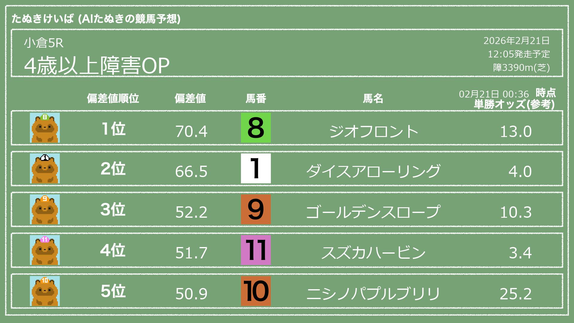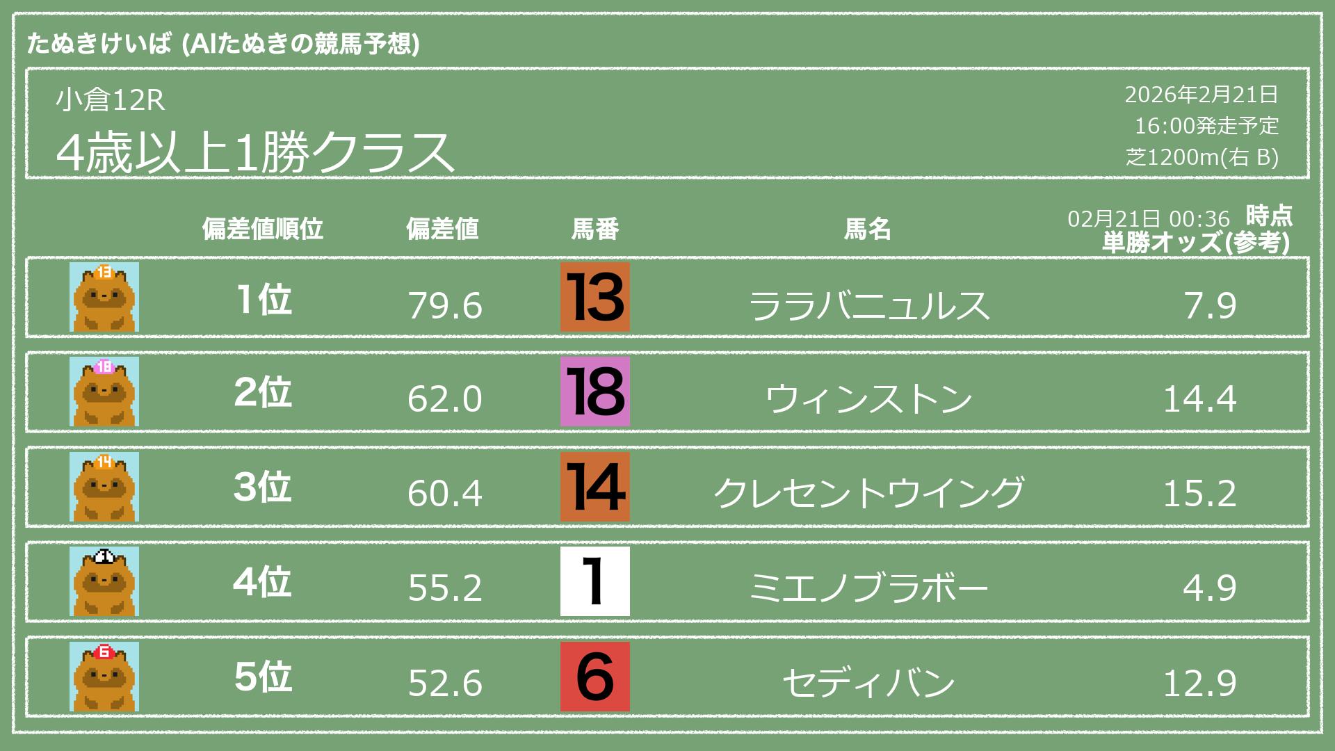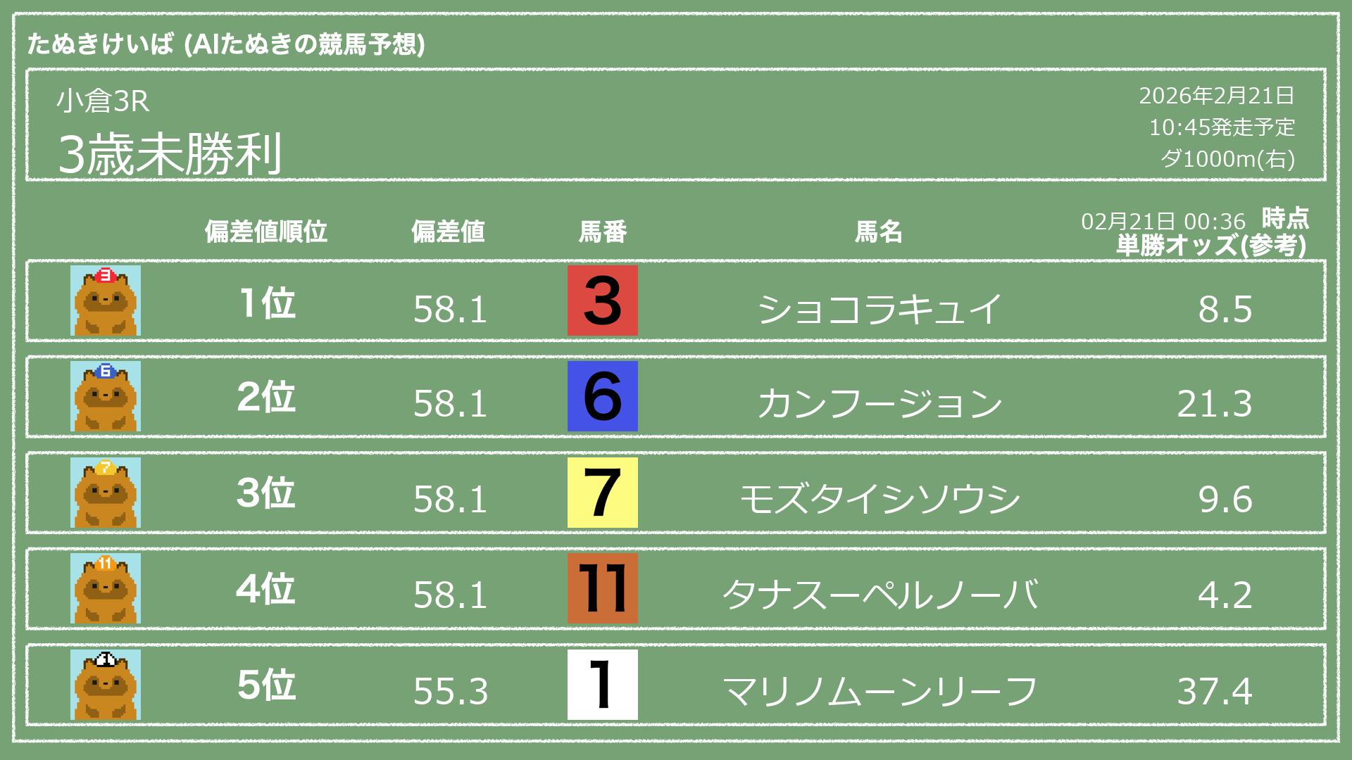 「たぬきけいば」による無料競馬予想です🥳