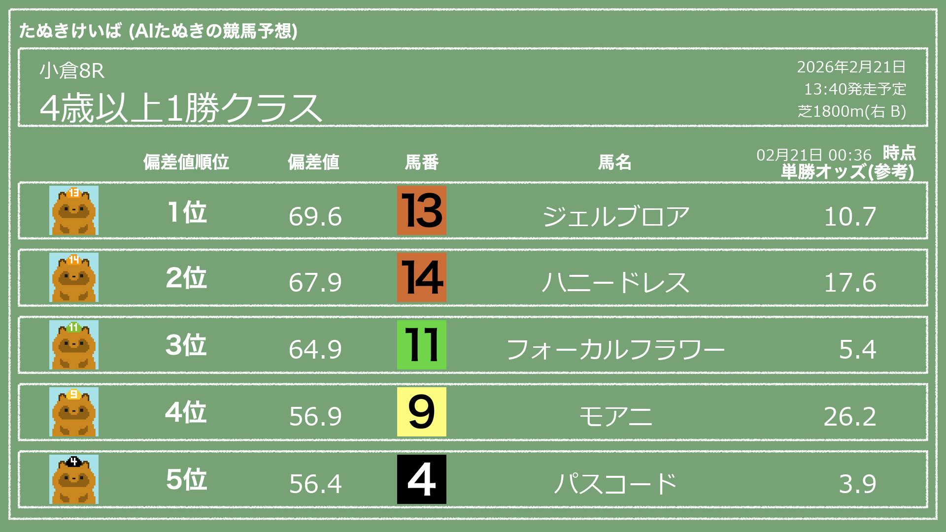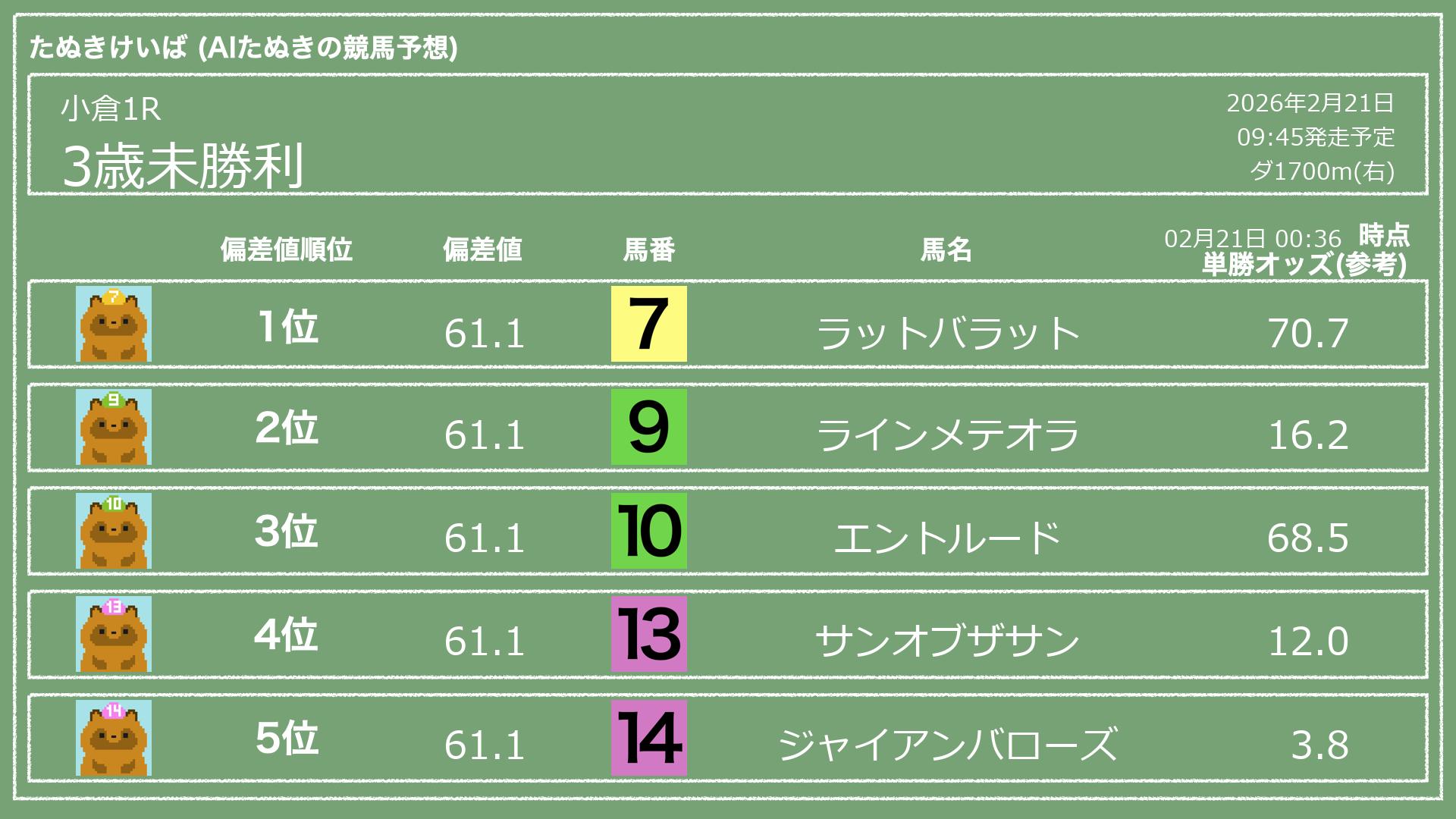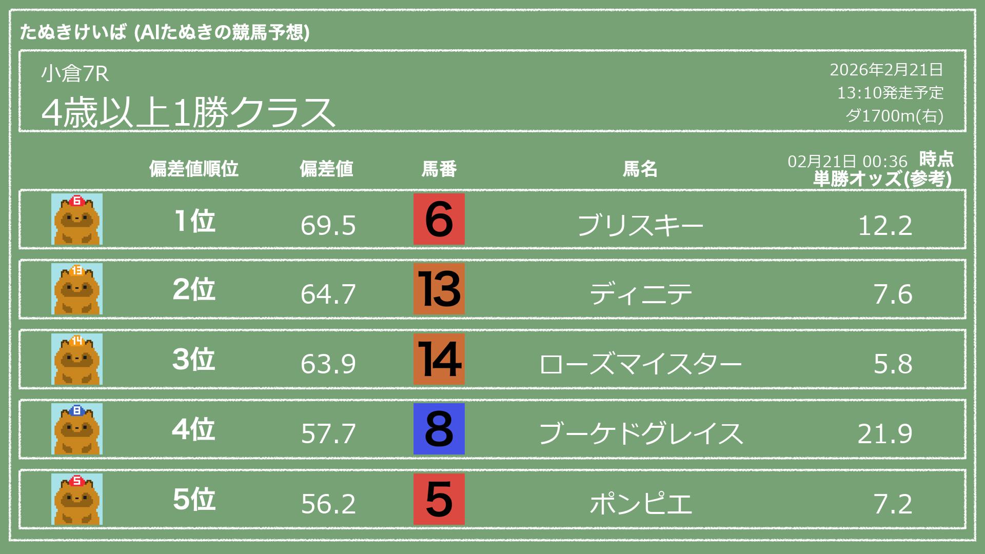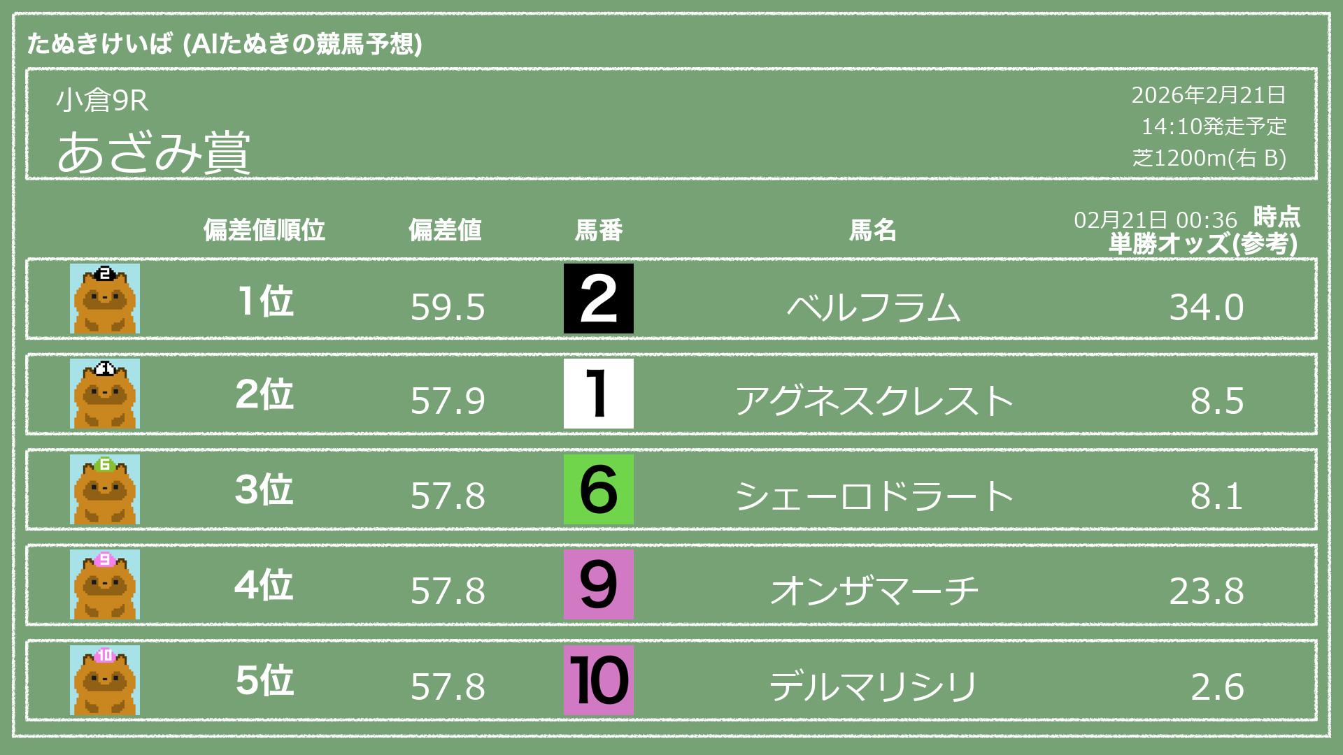 「たぬきけいば」による無料競馬予想です🥳