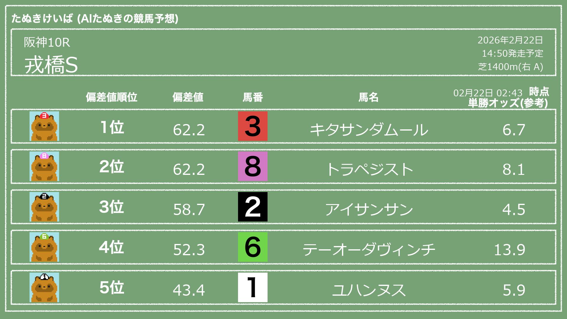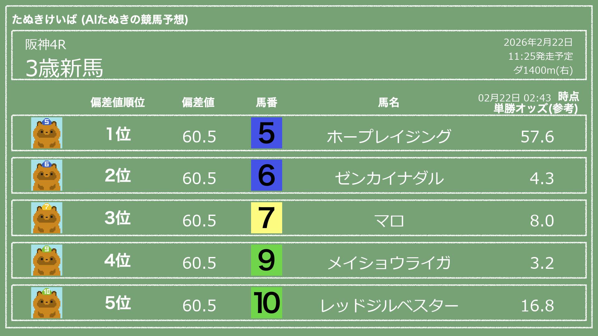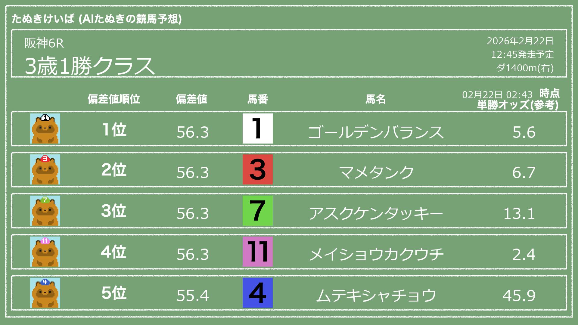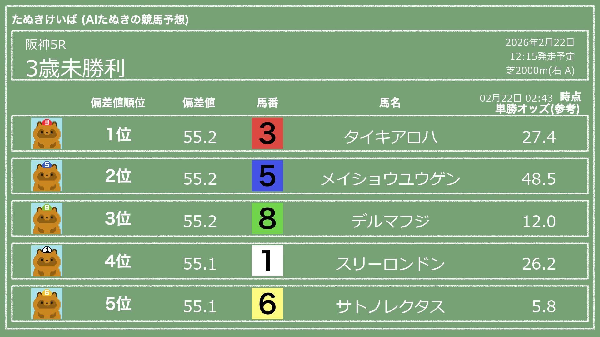 「たぬきけいば」による無料競馬予想です🥳