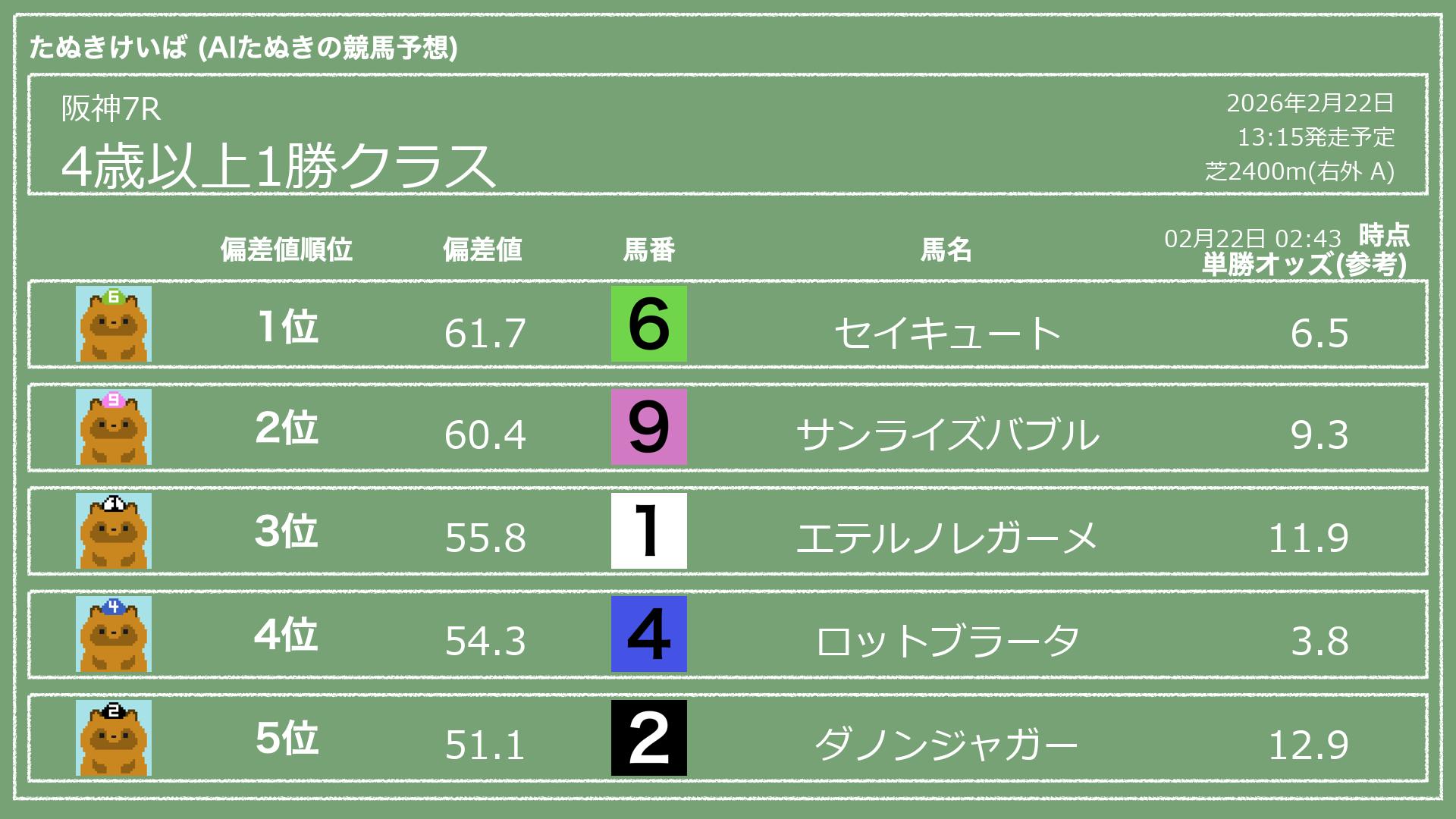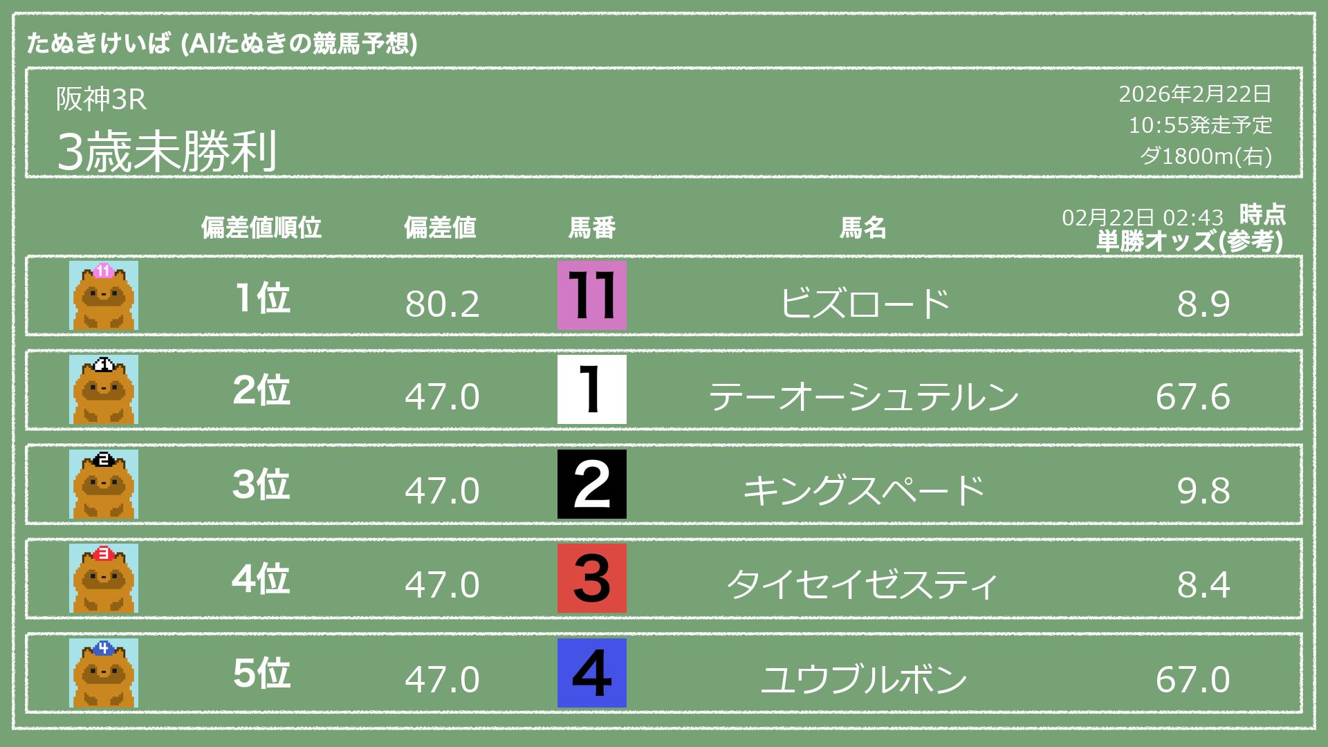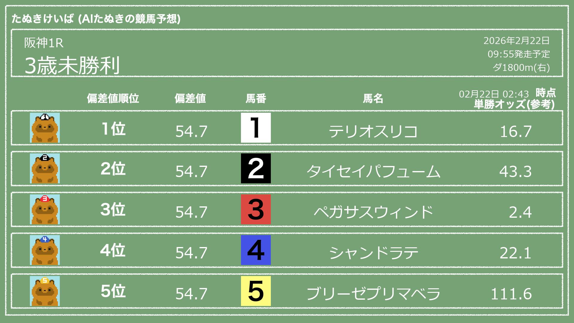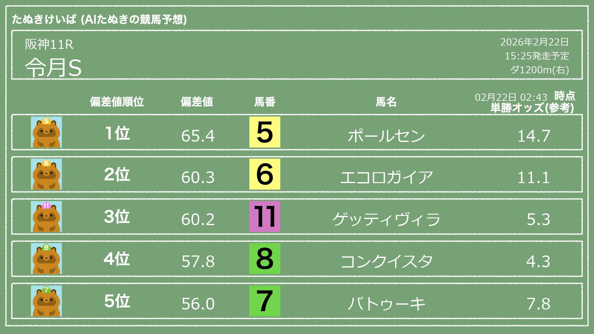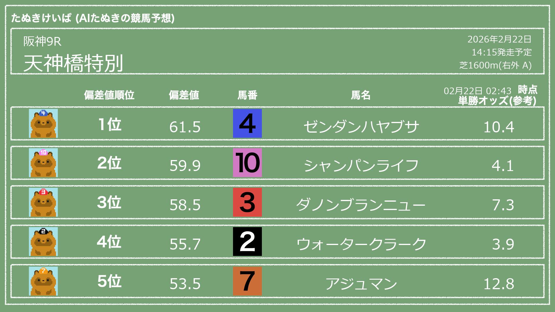 「たぬきけいば」による無料競馬予想です🥳