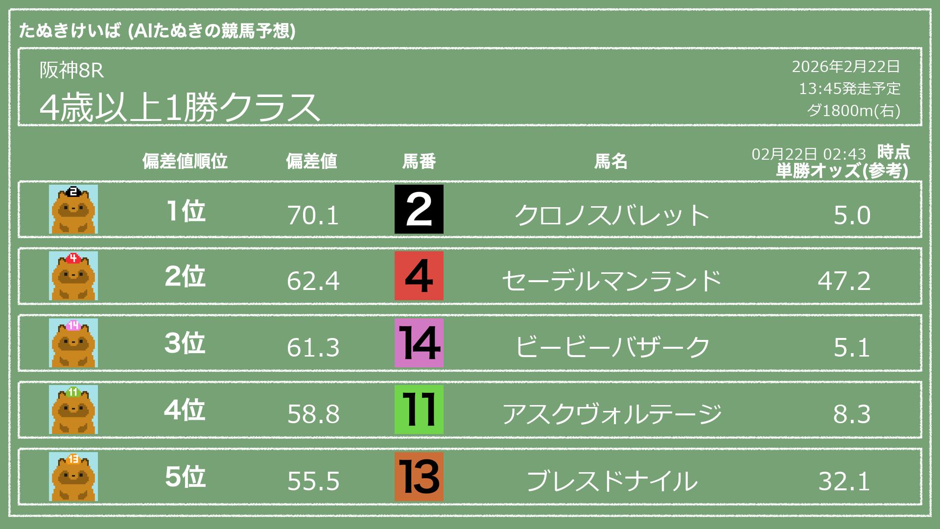 【全レース無料】2026年2月22日(日) 阪神競馬のAI予想