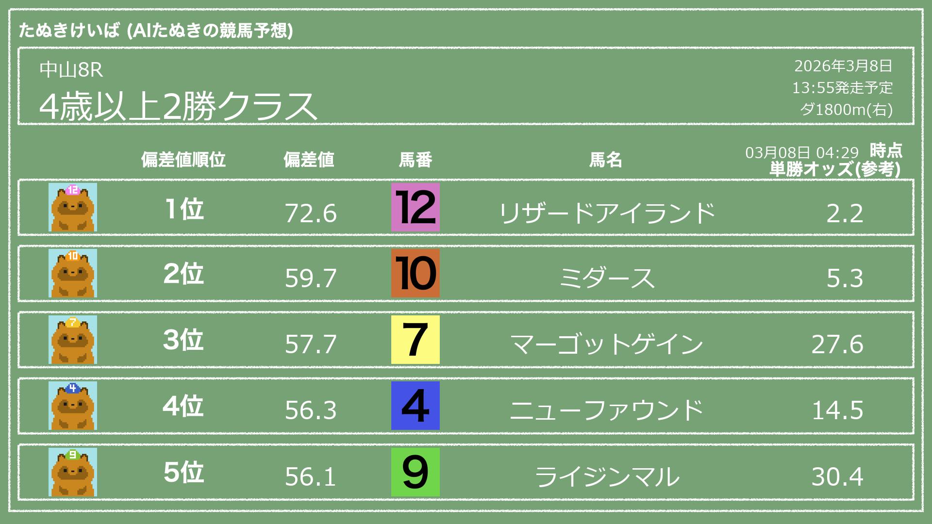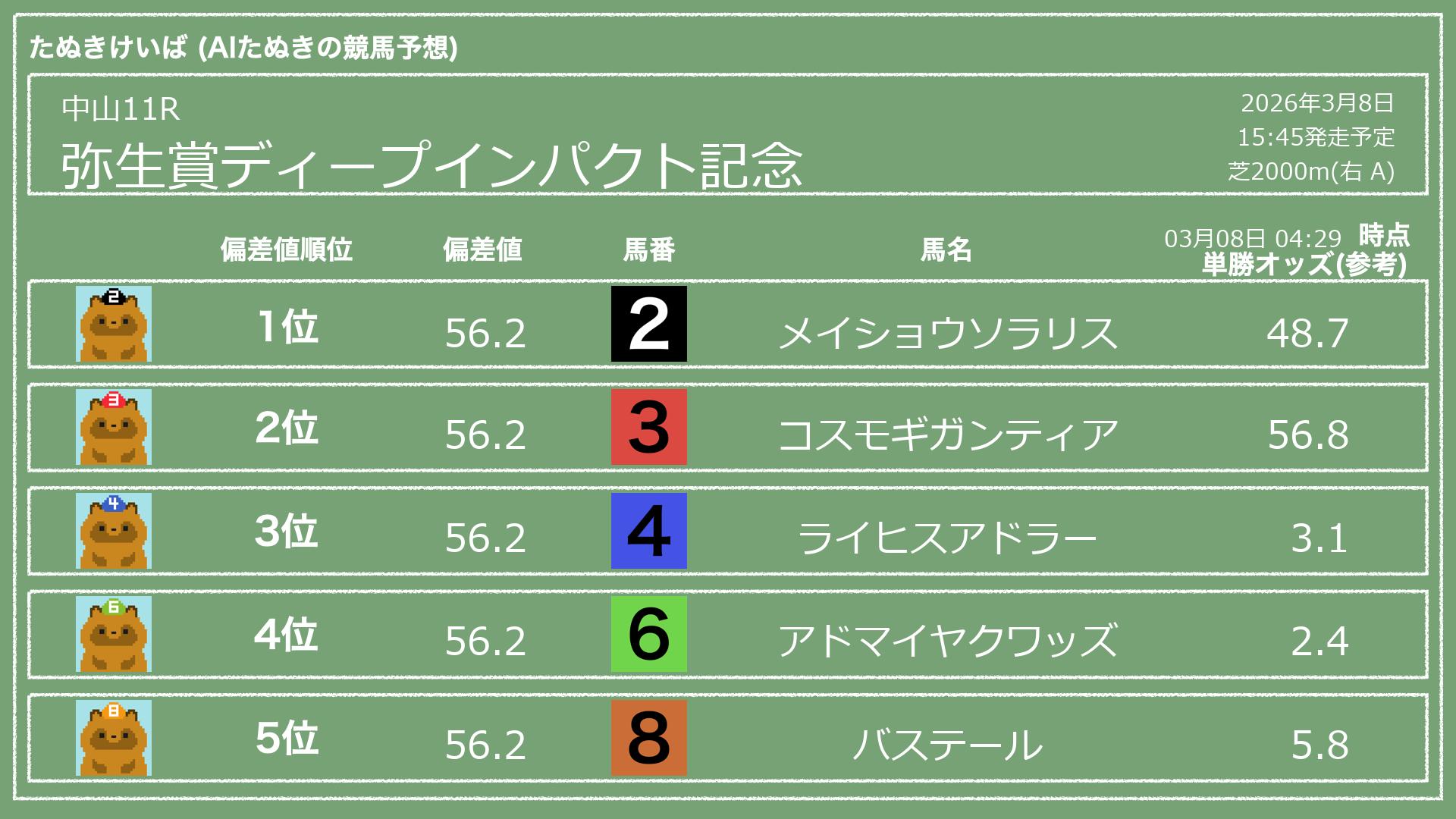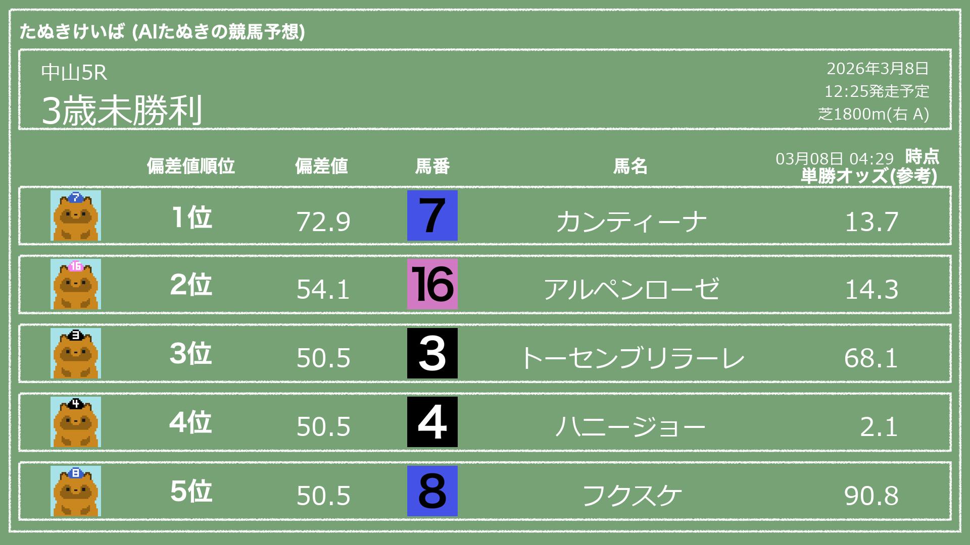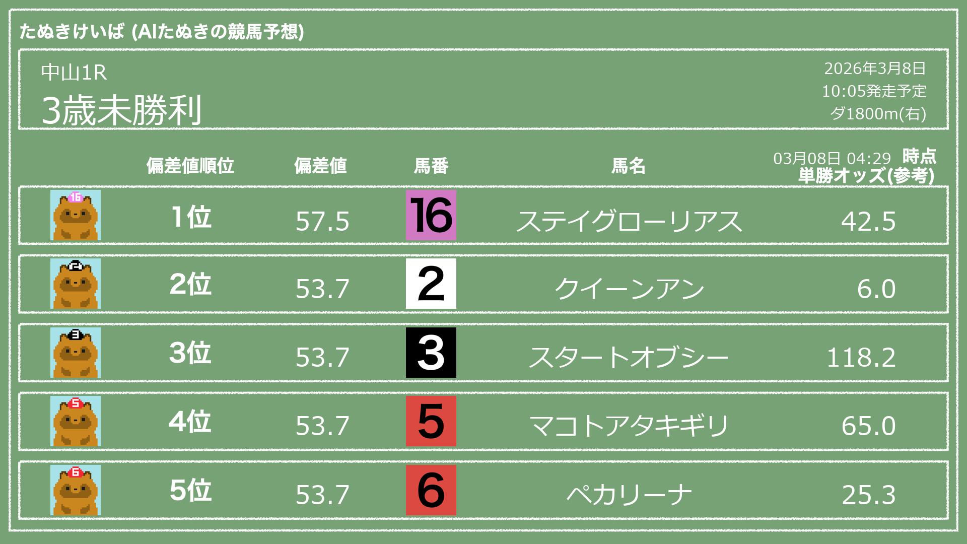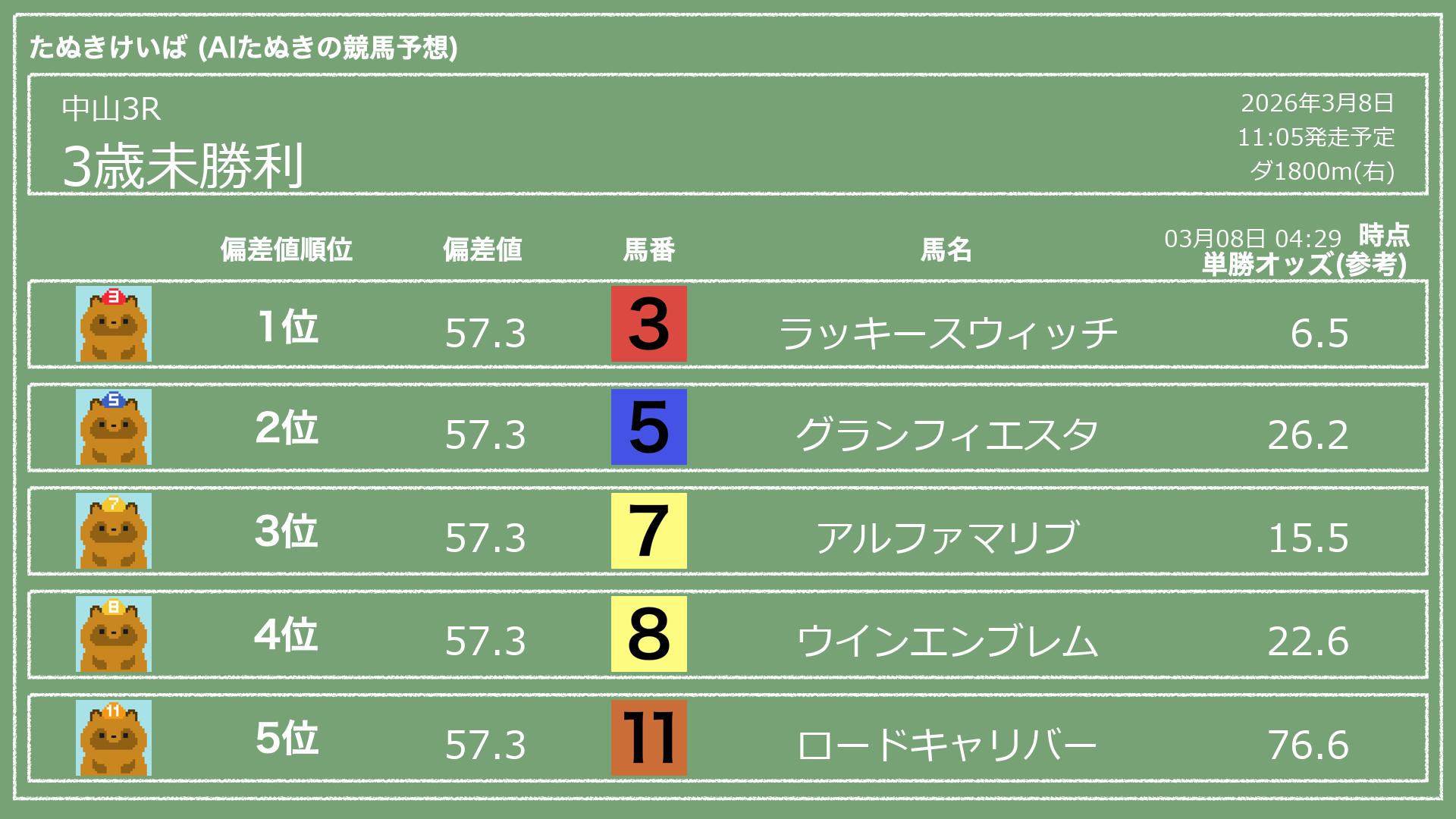 「たぬきけいば」による無料競馬予想です🥳