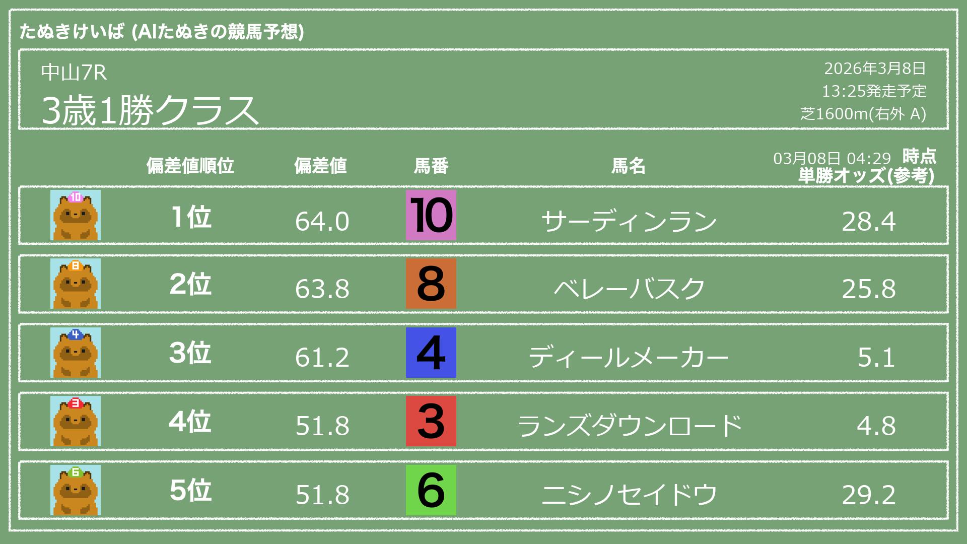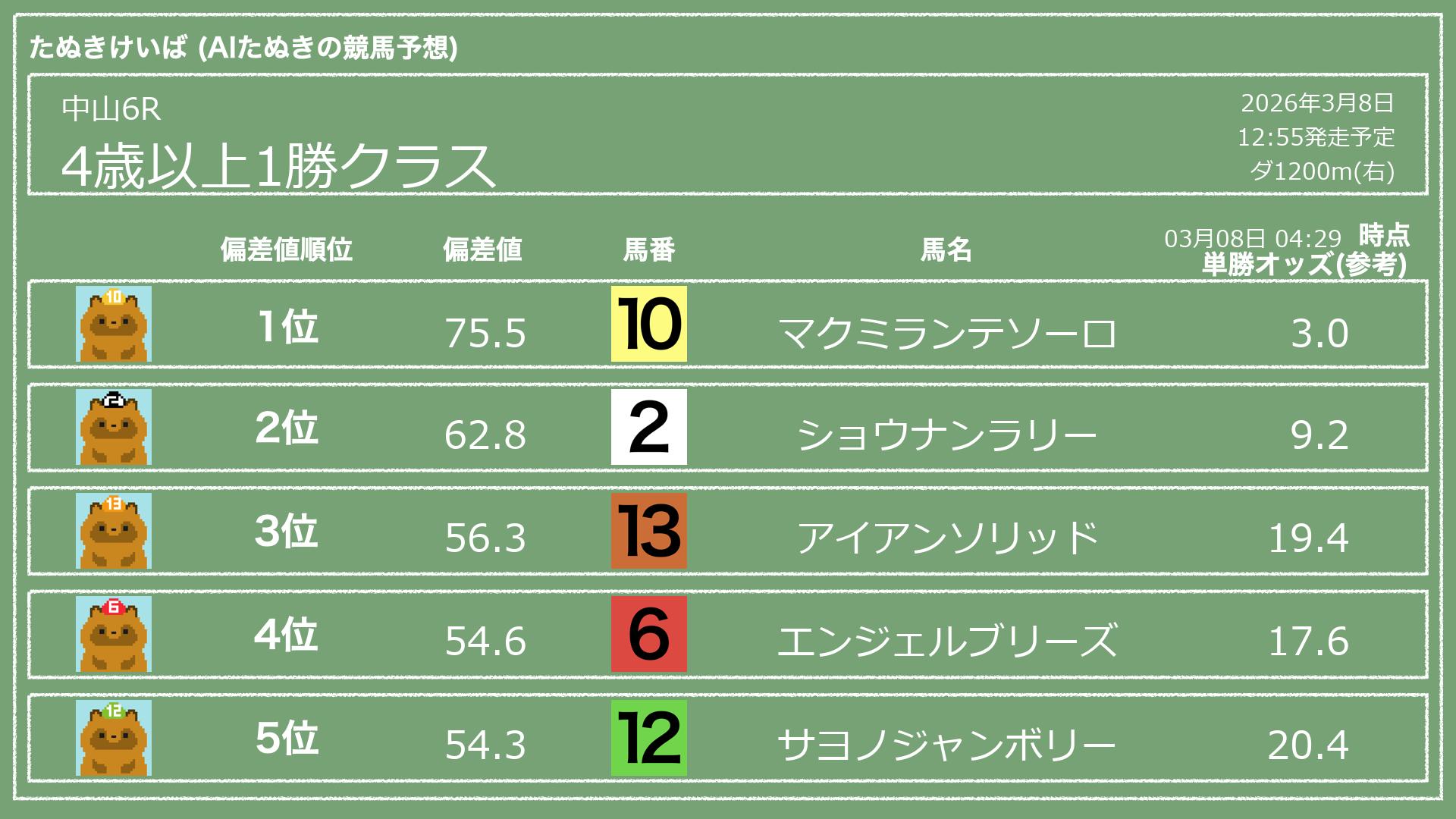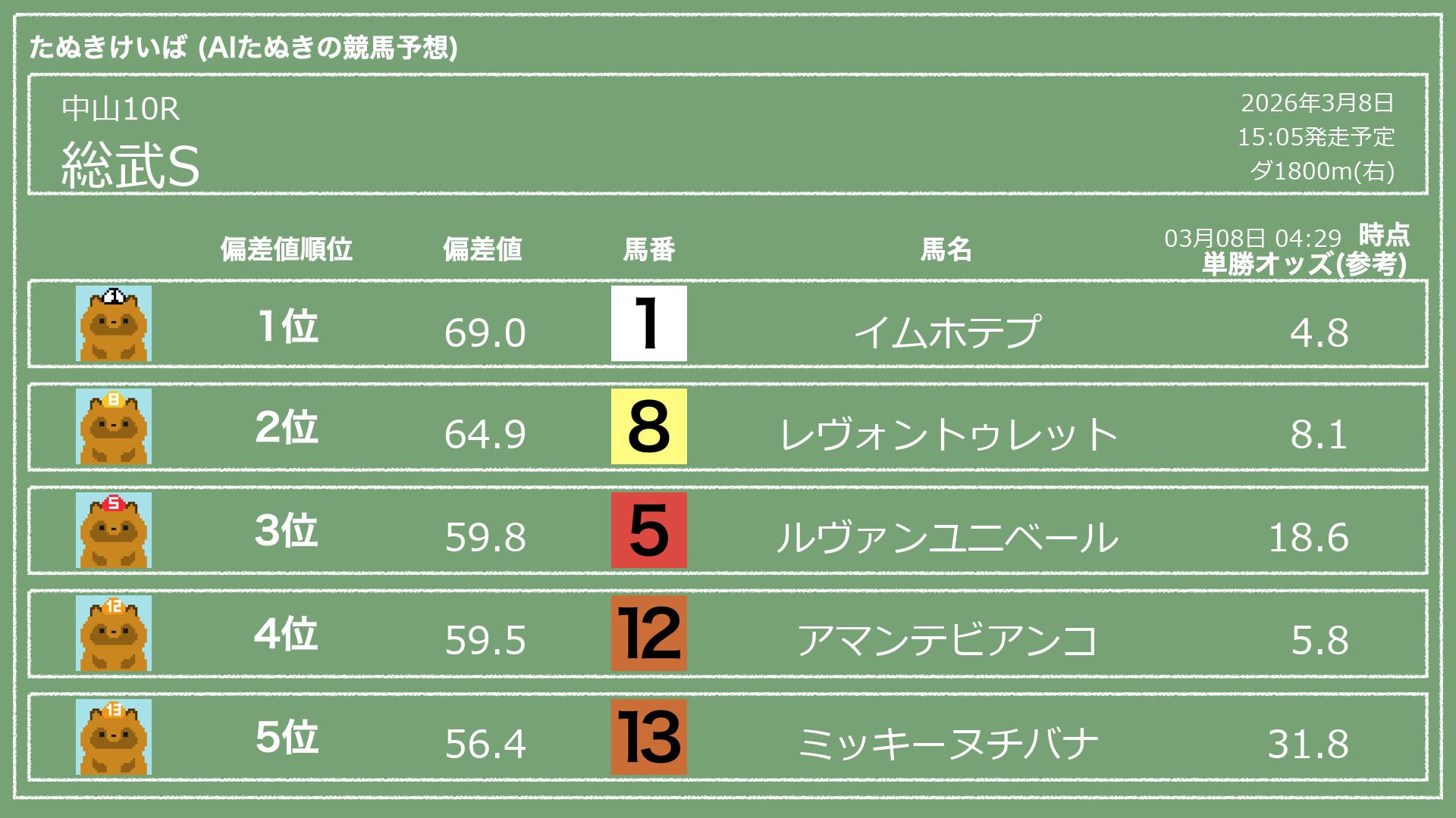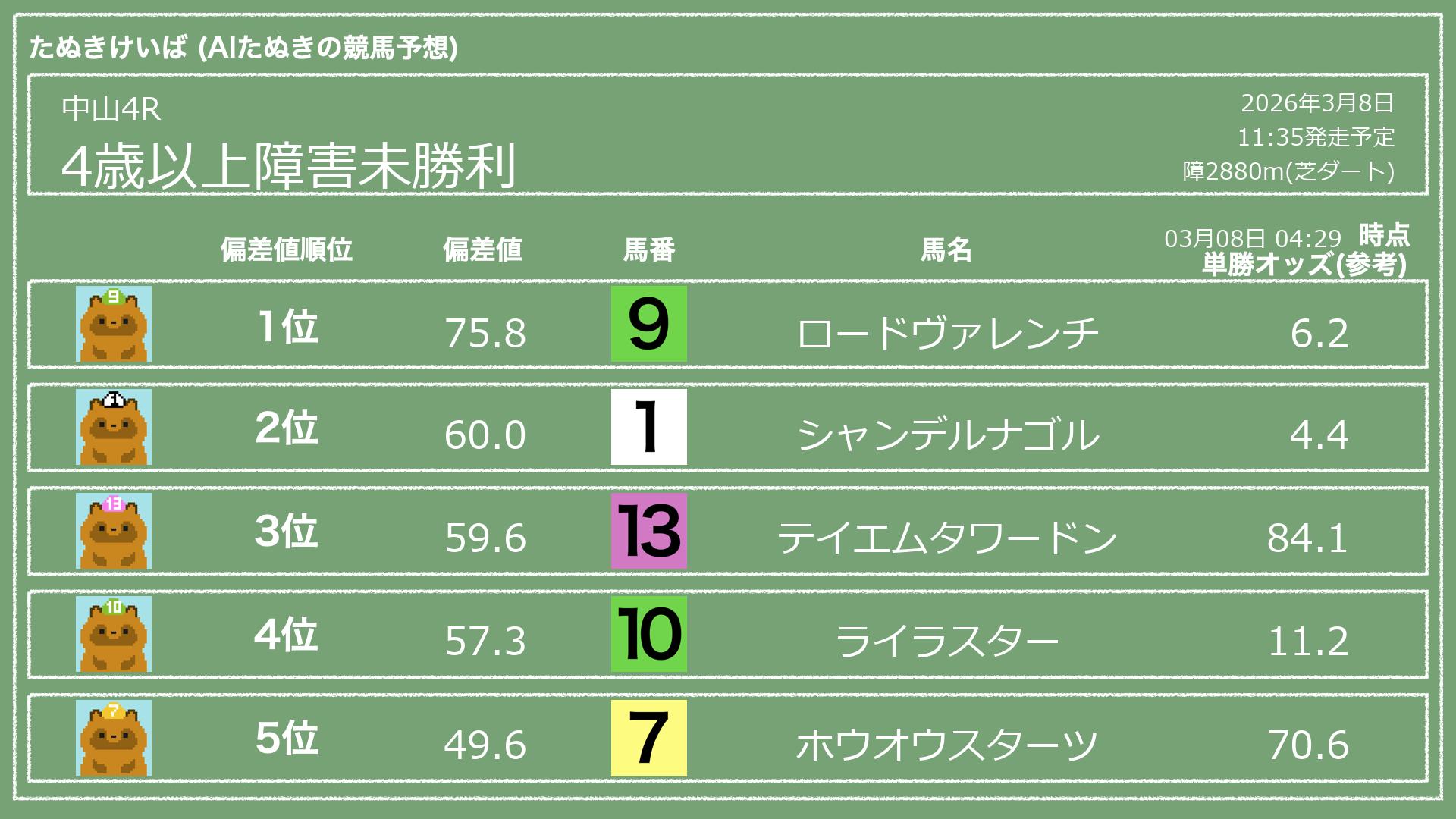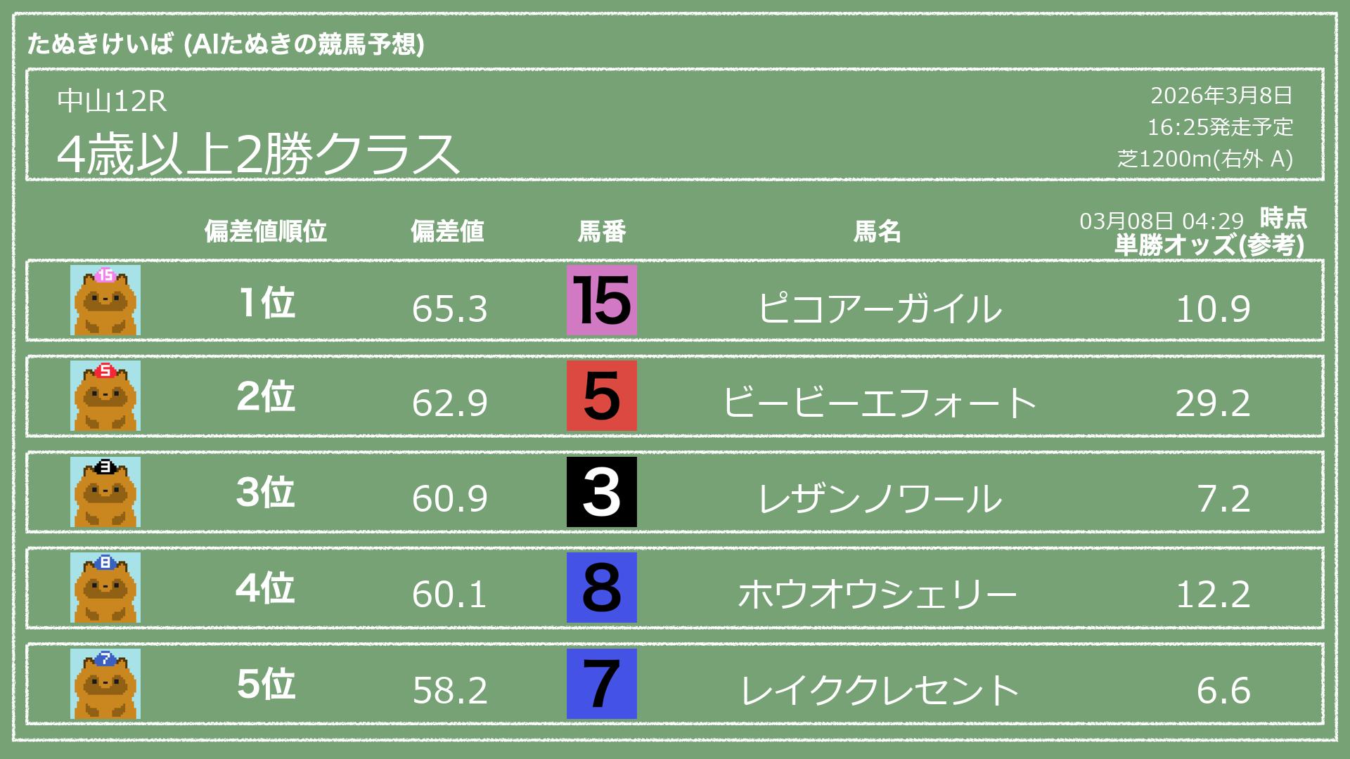 「たぬきけいば」による無料競馬予想です🥳