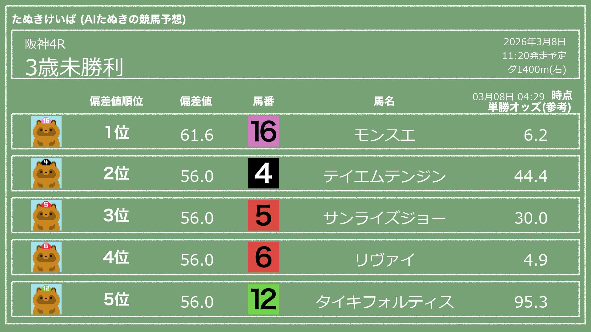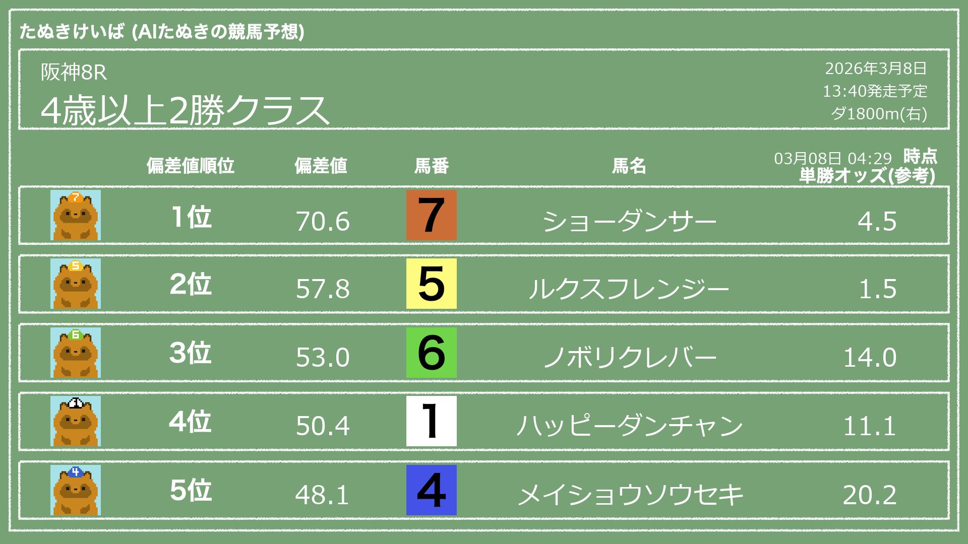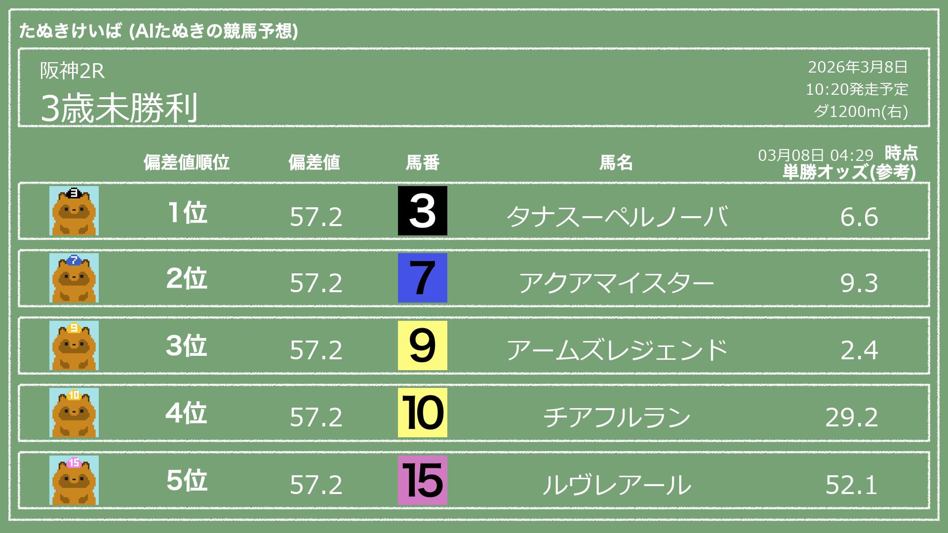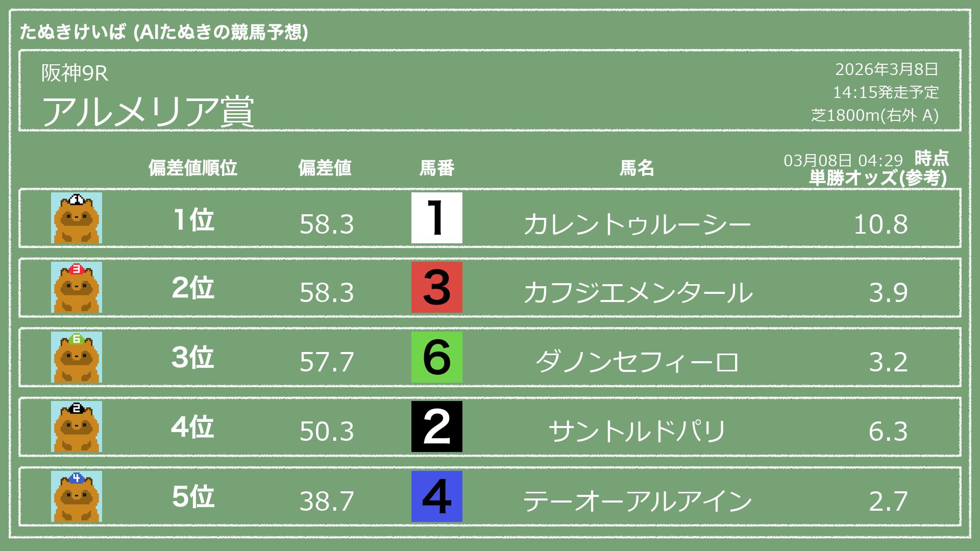 「たぬきけいば」による無料競馬予想です🥳