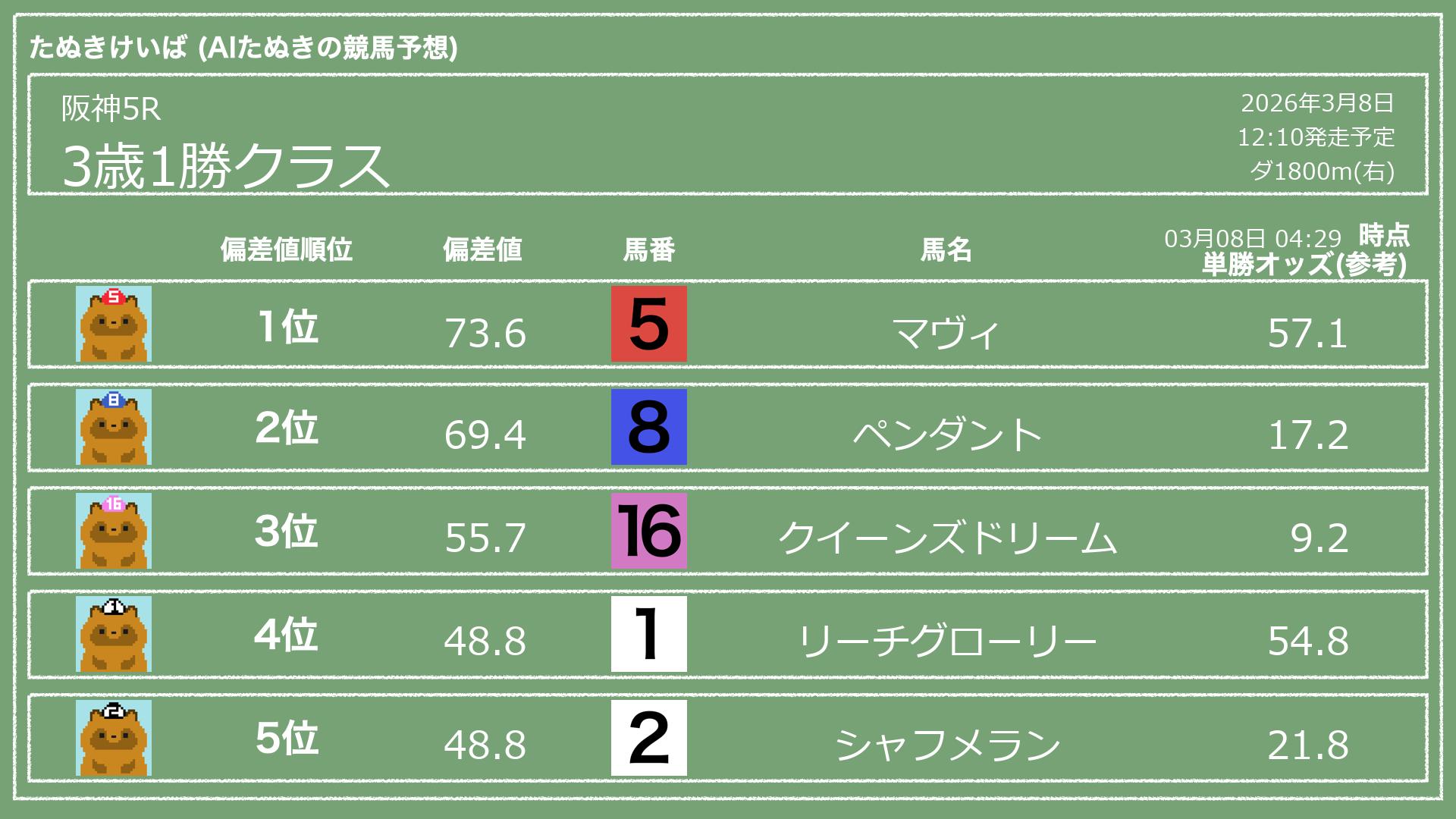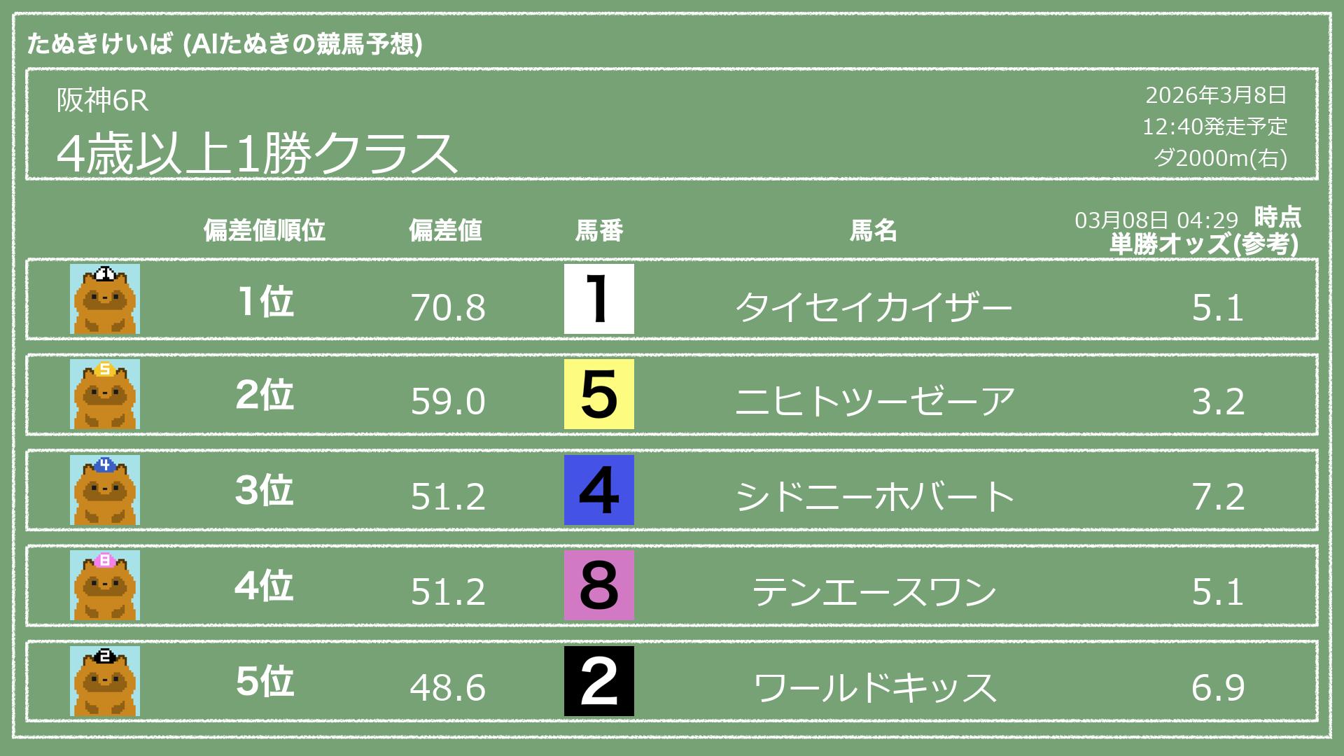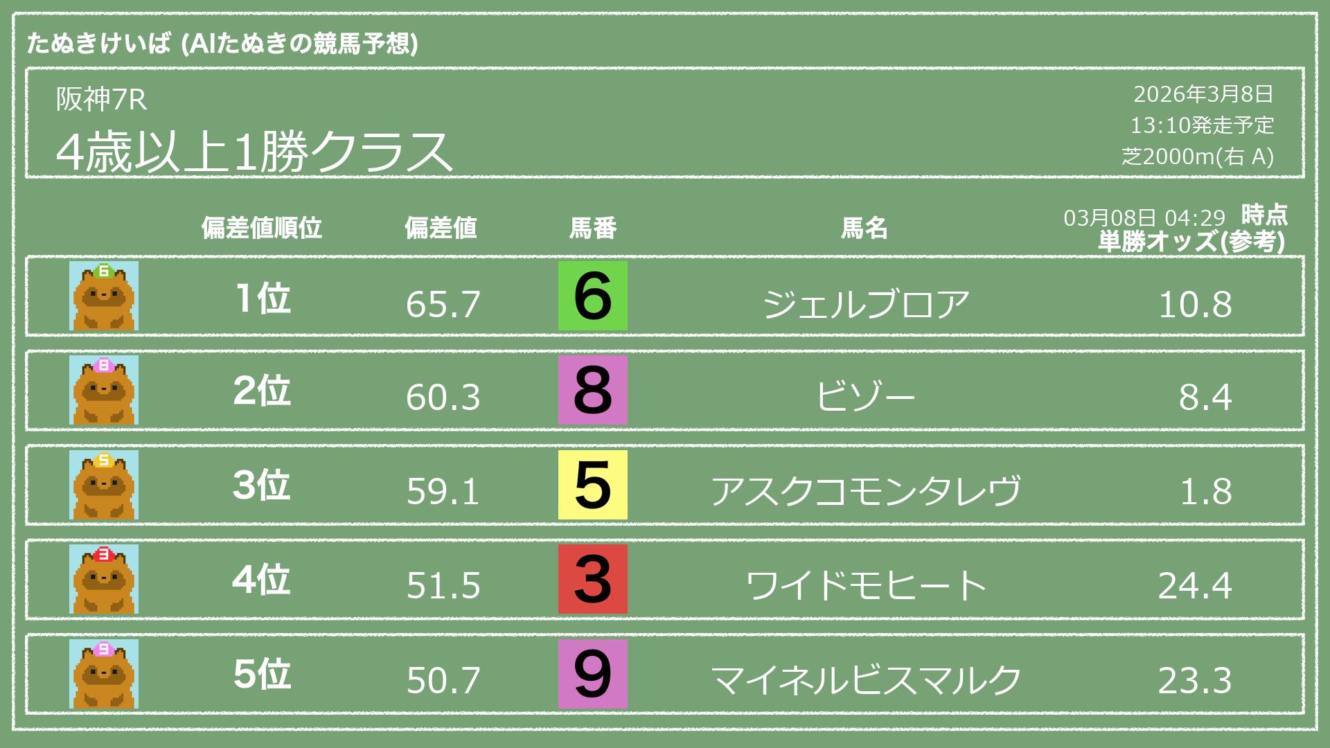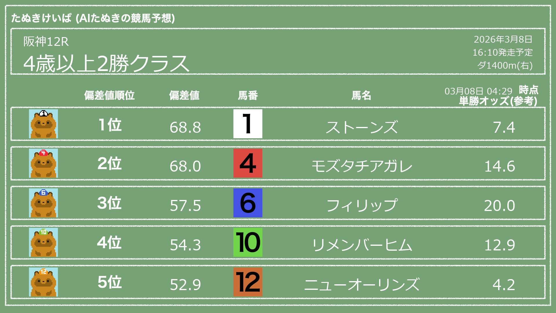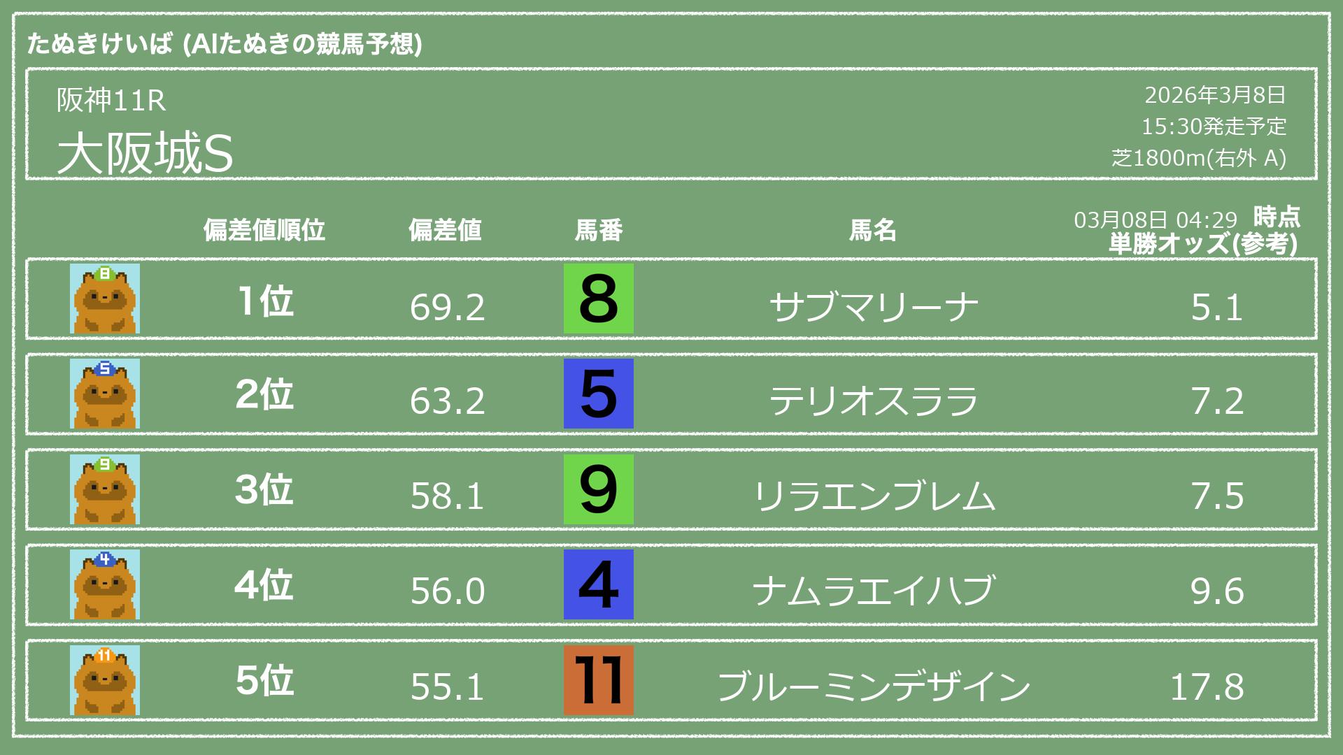 「たぬきけいば」による無料競馬予想です🥳
