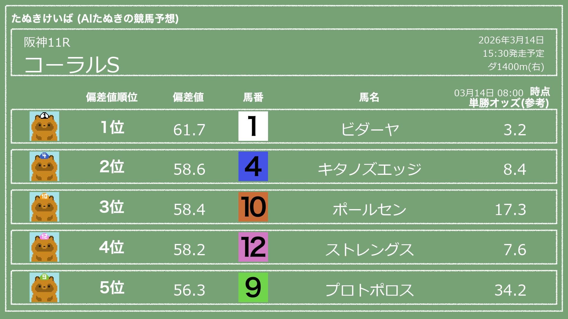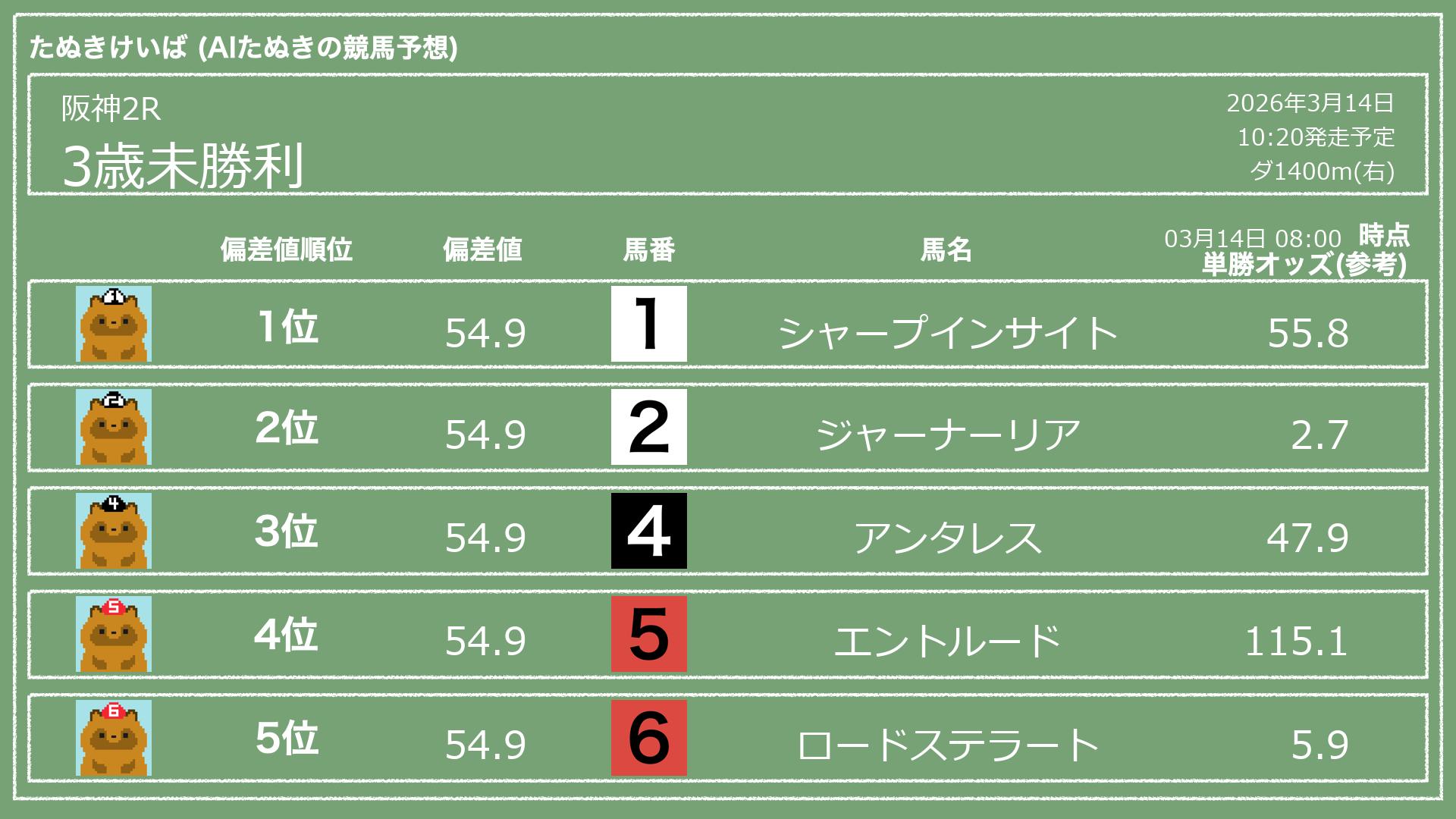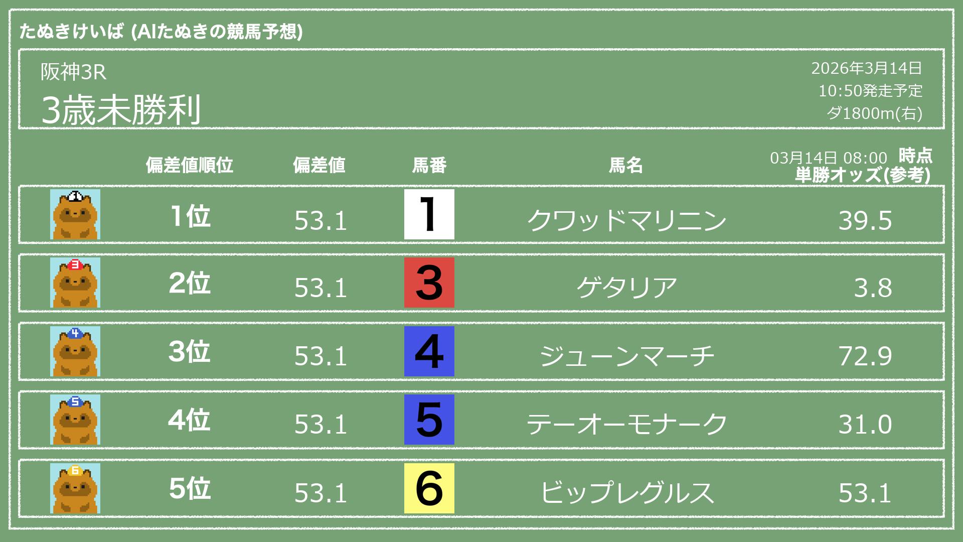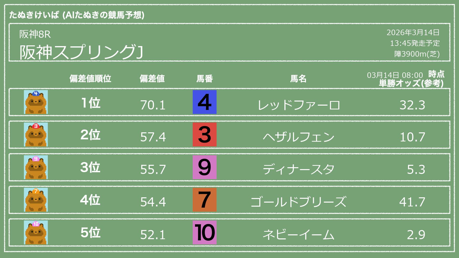 「たぬきけいば」による無料競馬予想です🥳