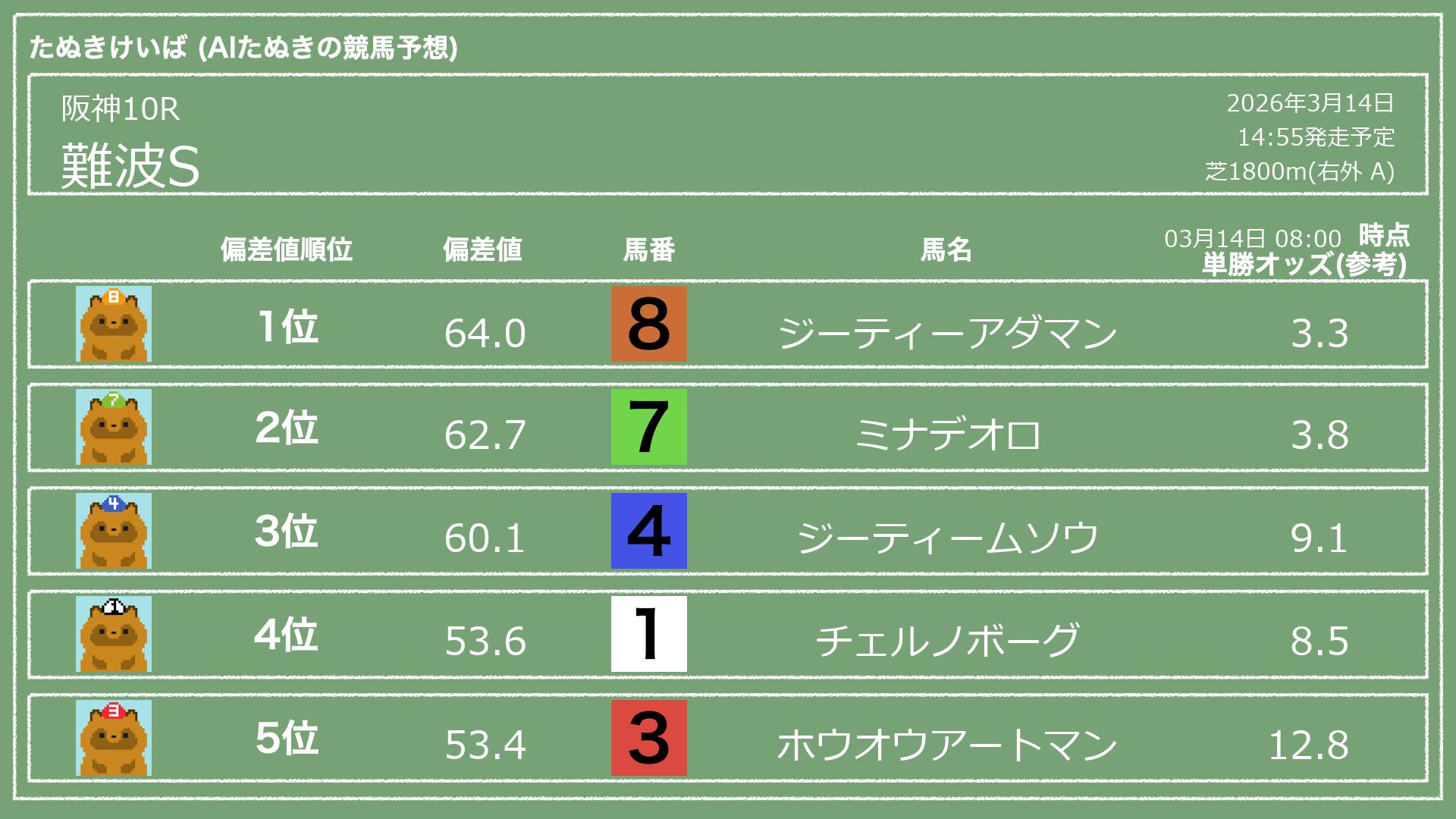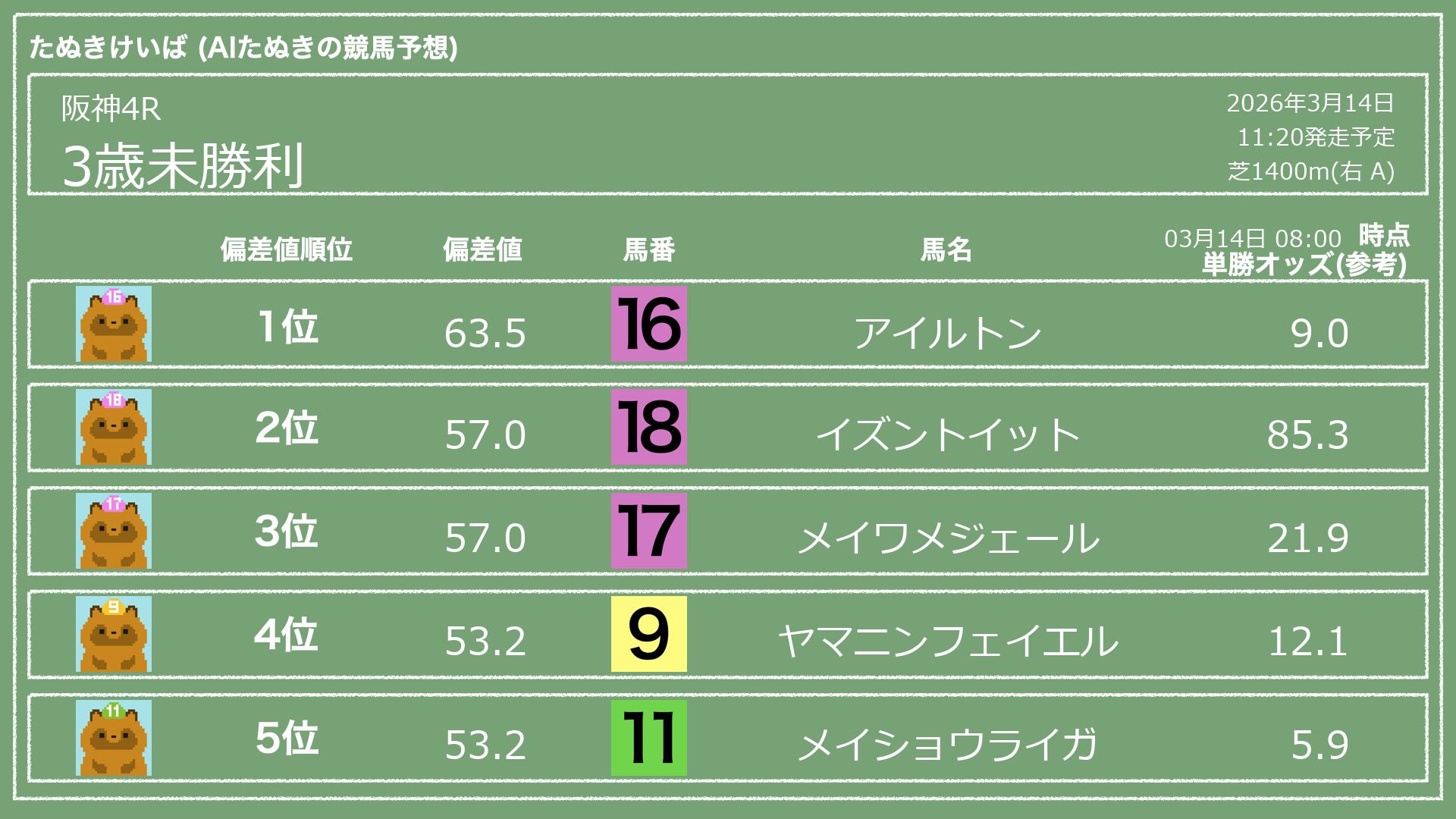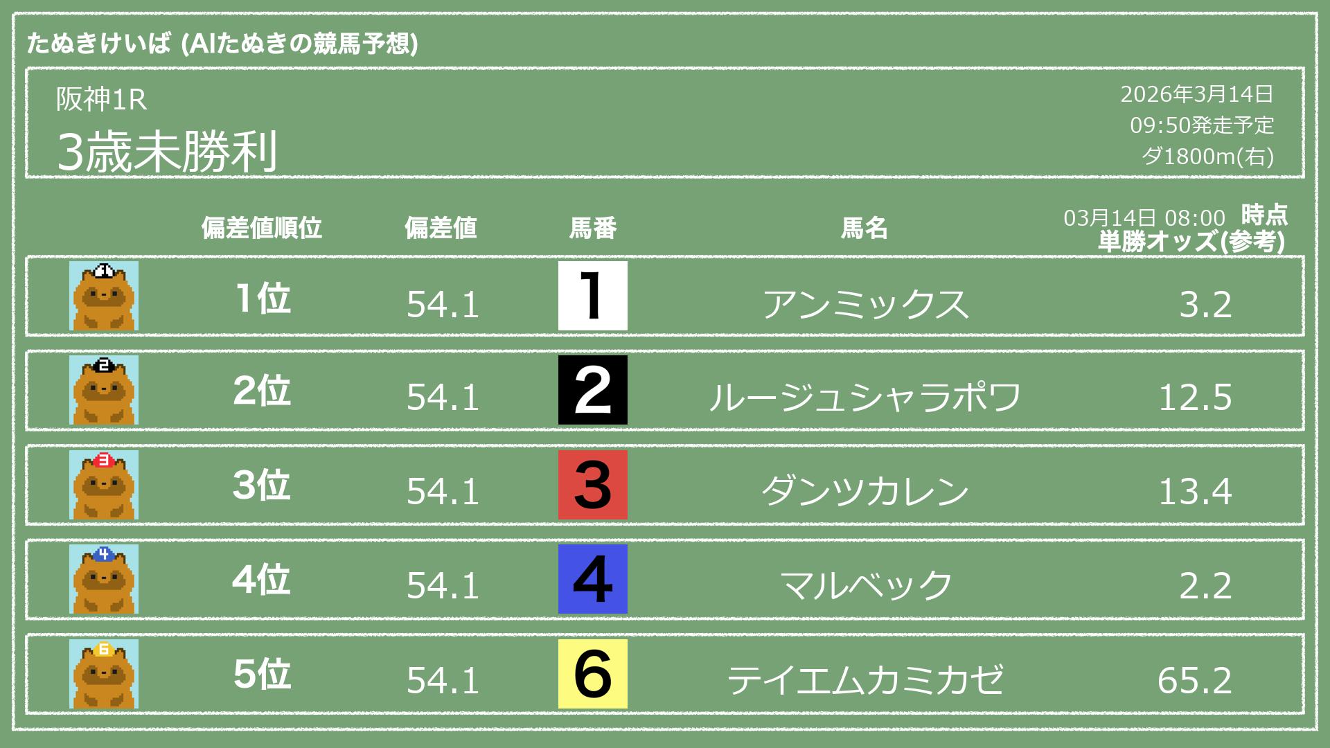 「たぬきけいば」による無料競馬予想です🥳