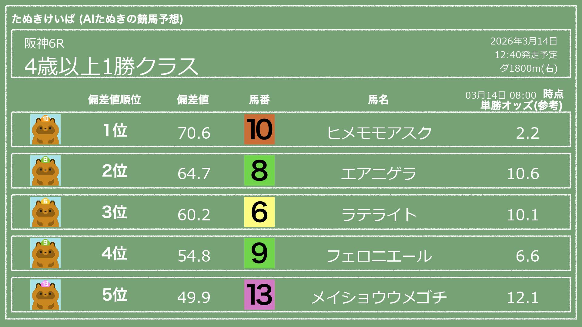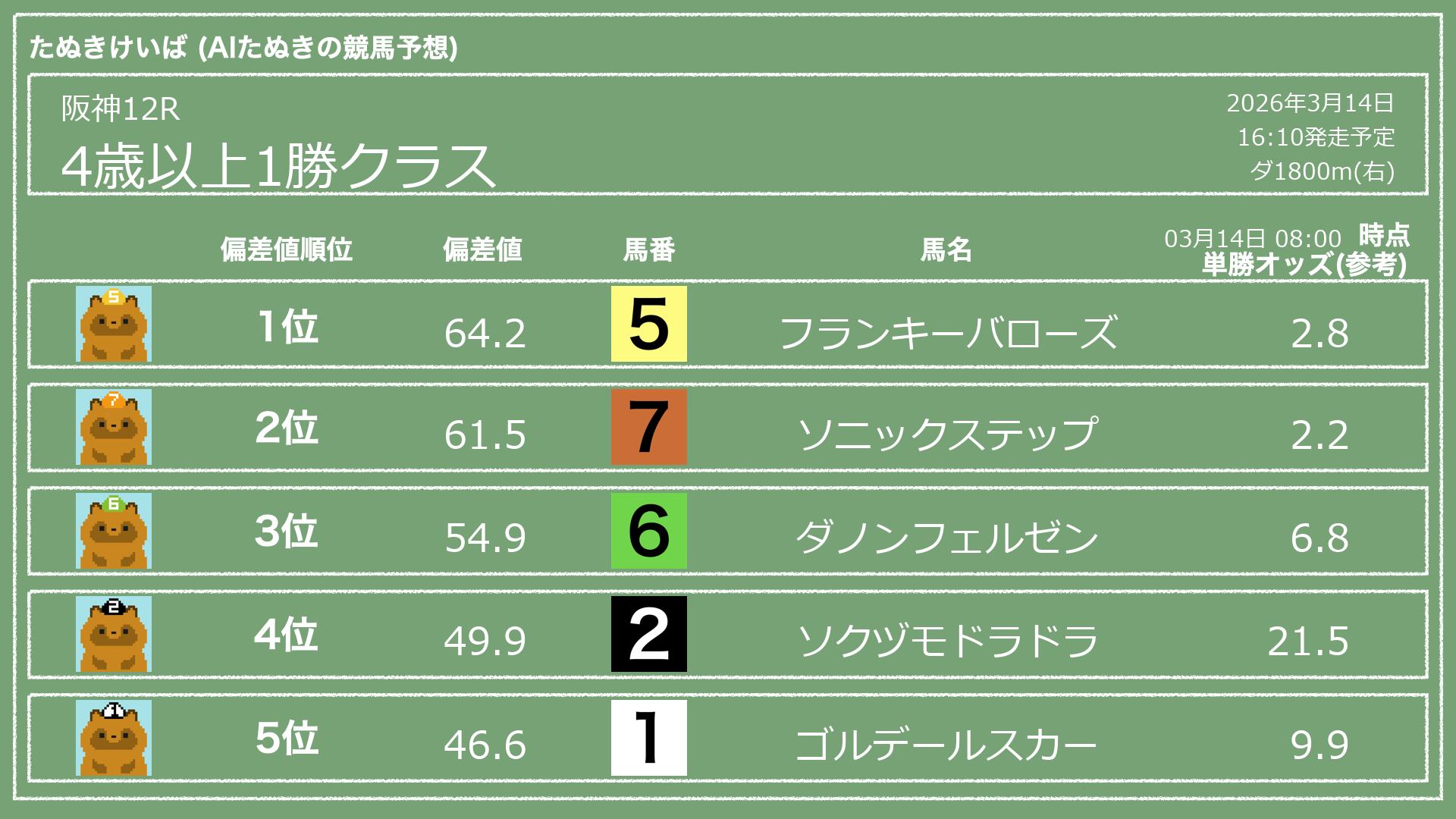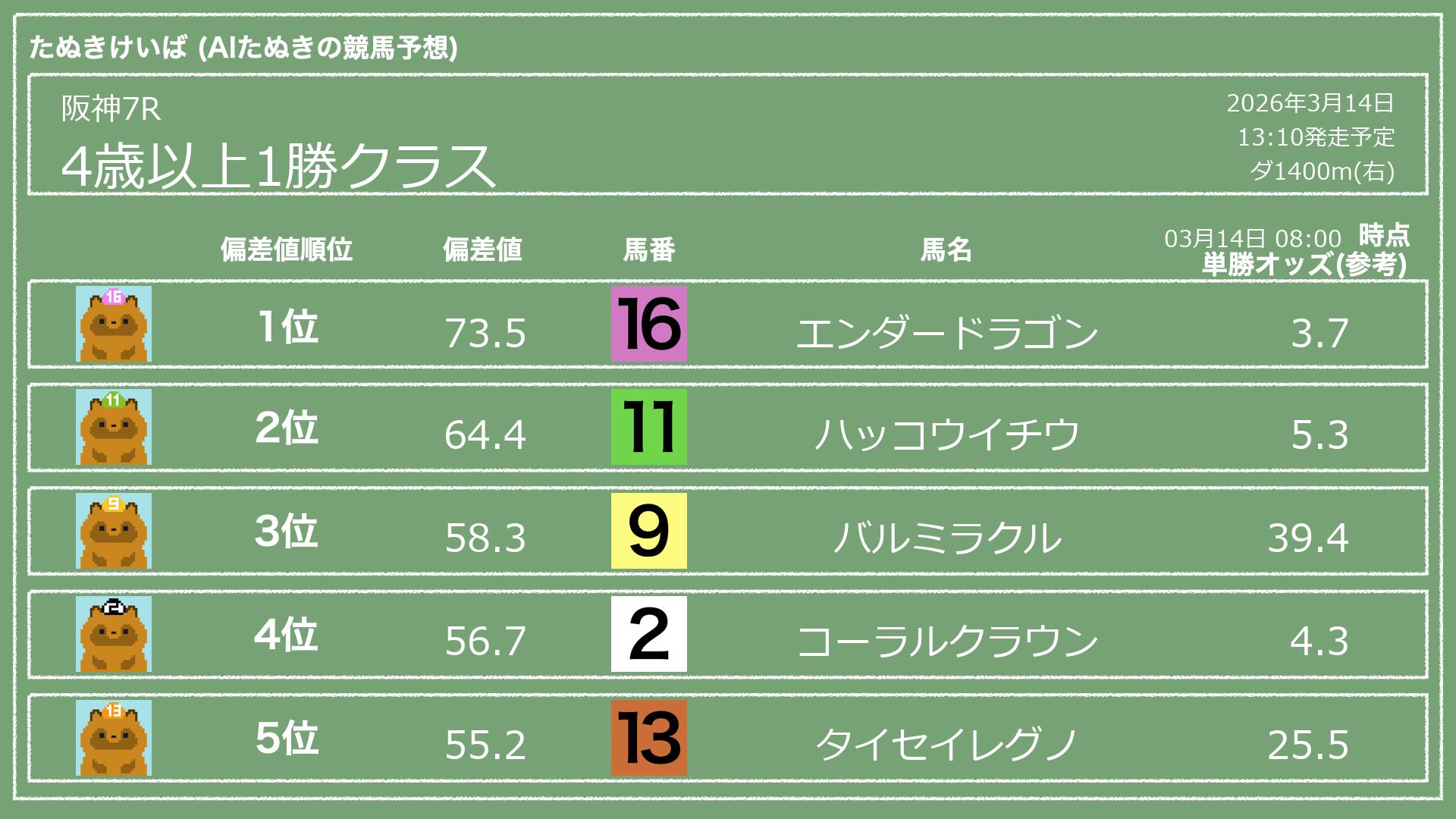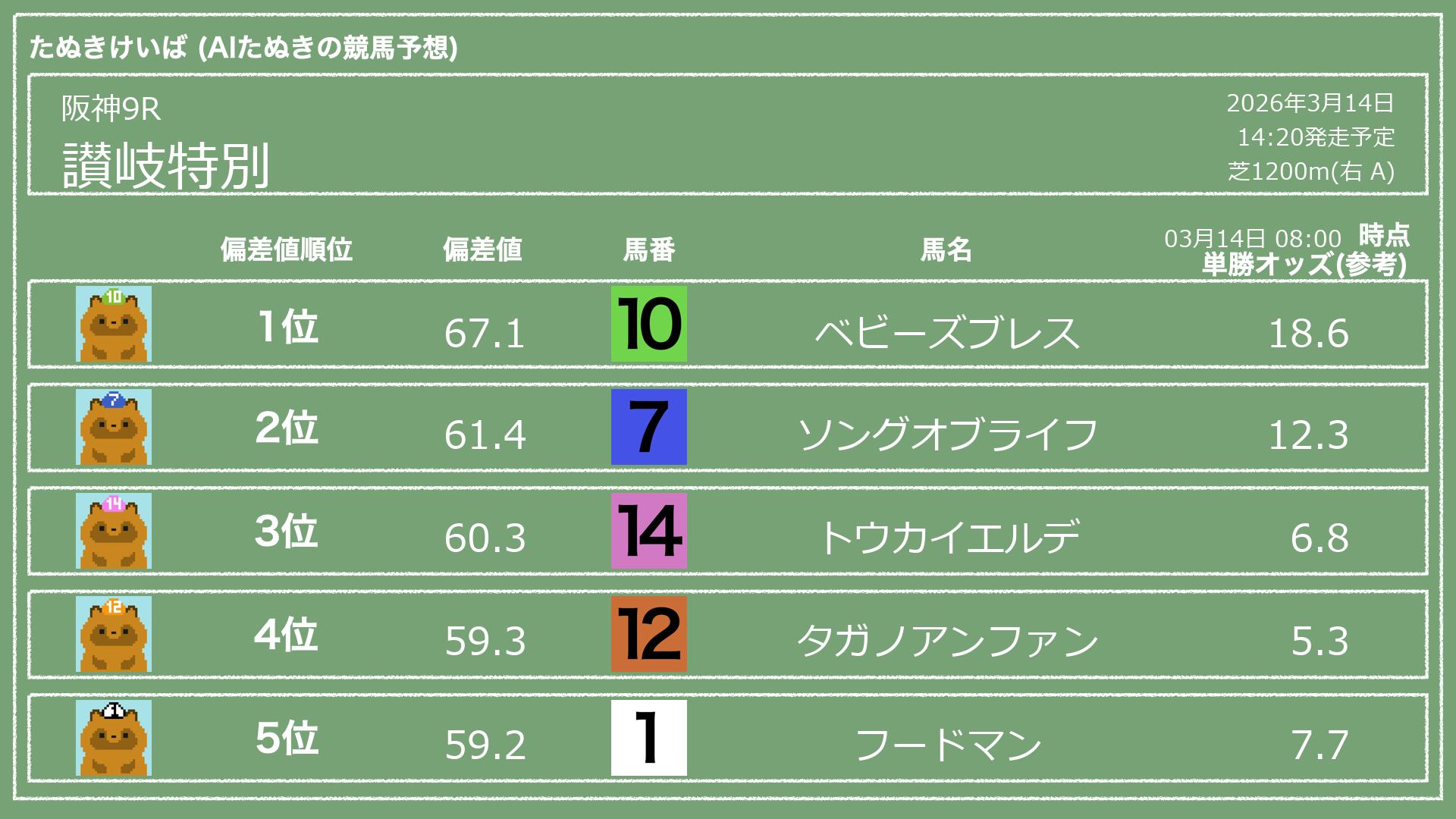 「たぬきけいば」による無料競馬予想です🥳