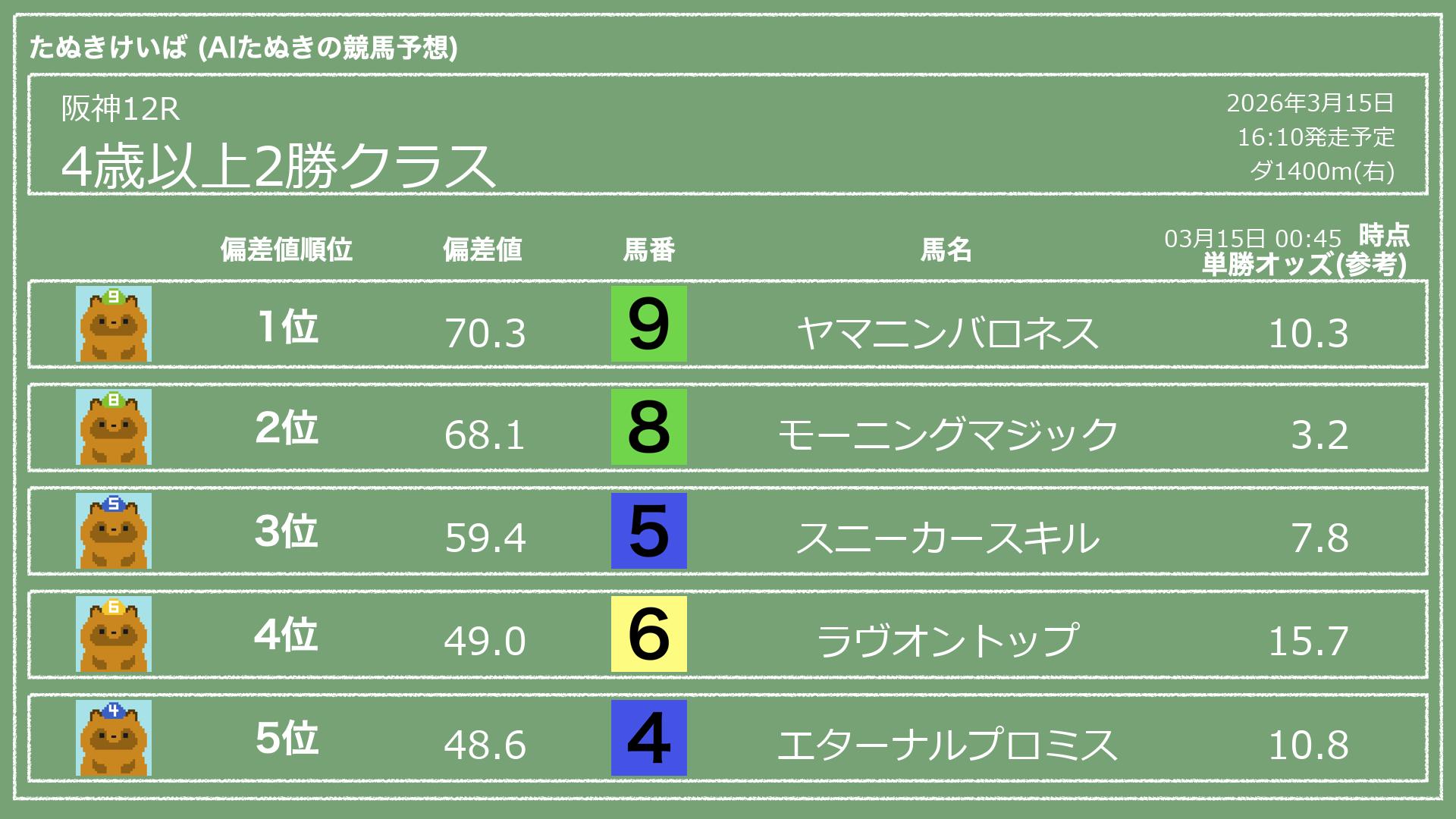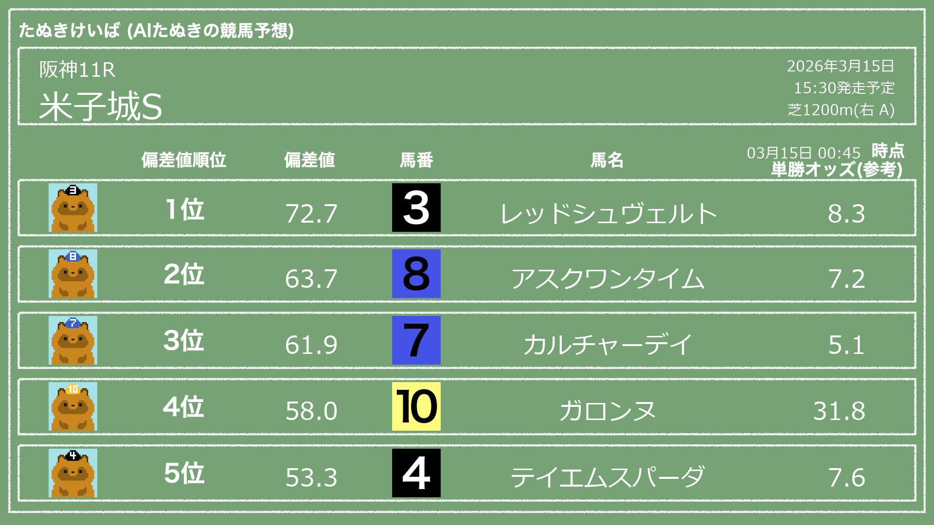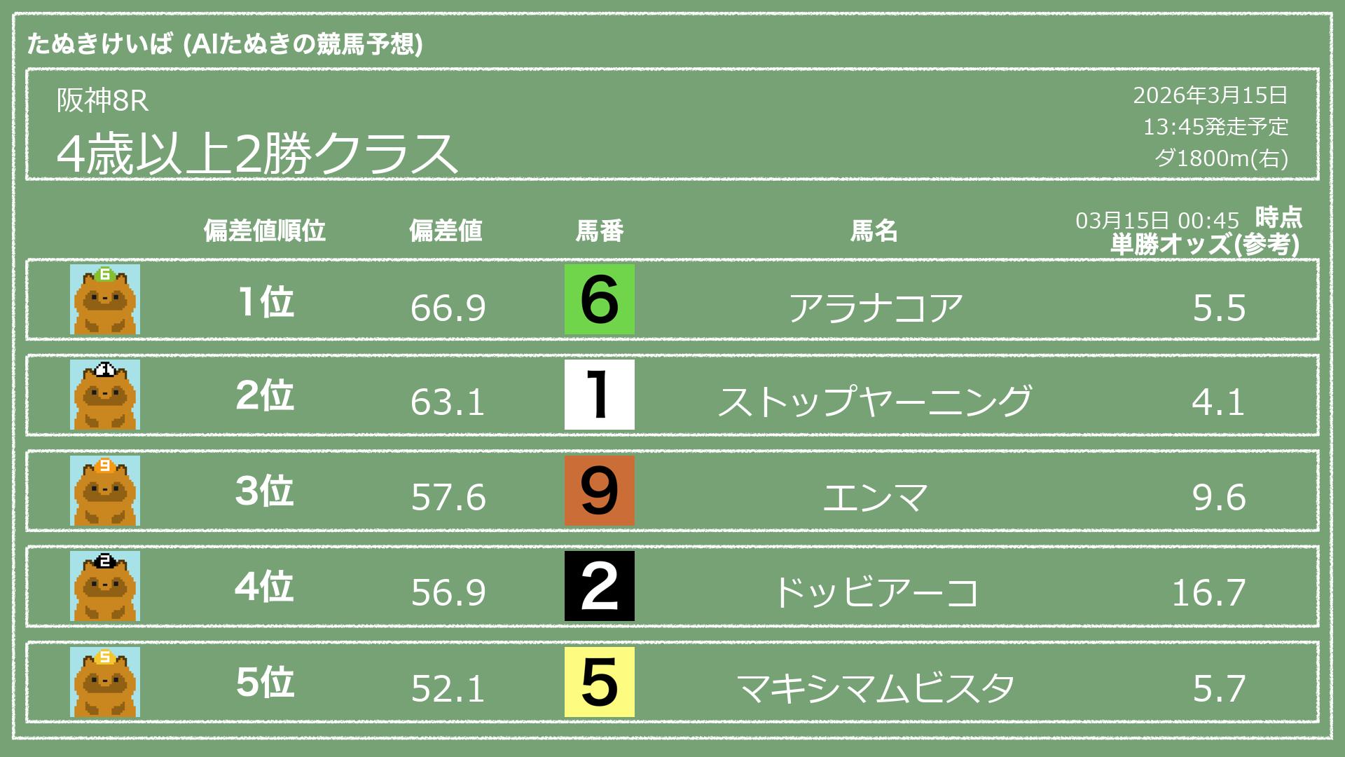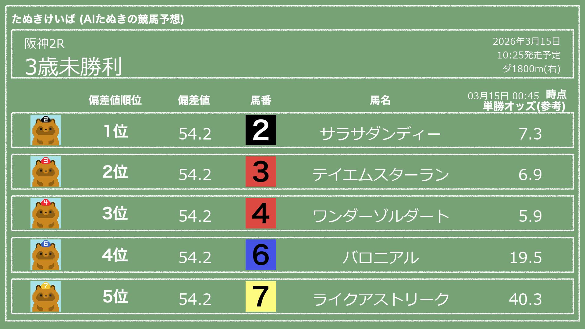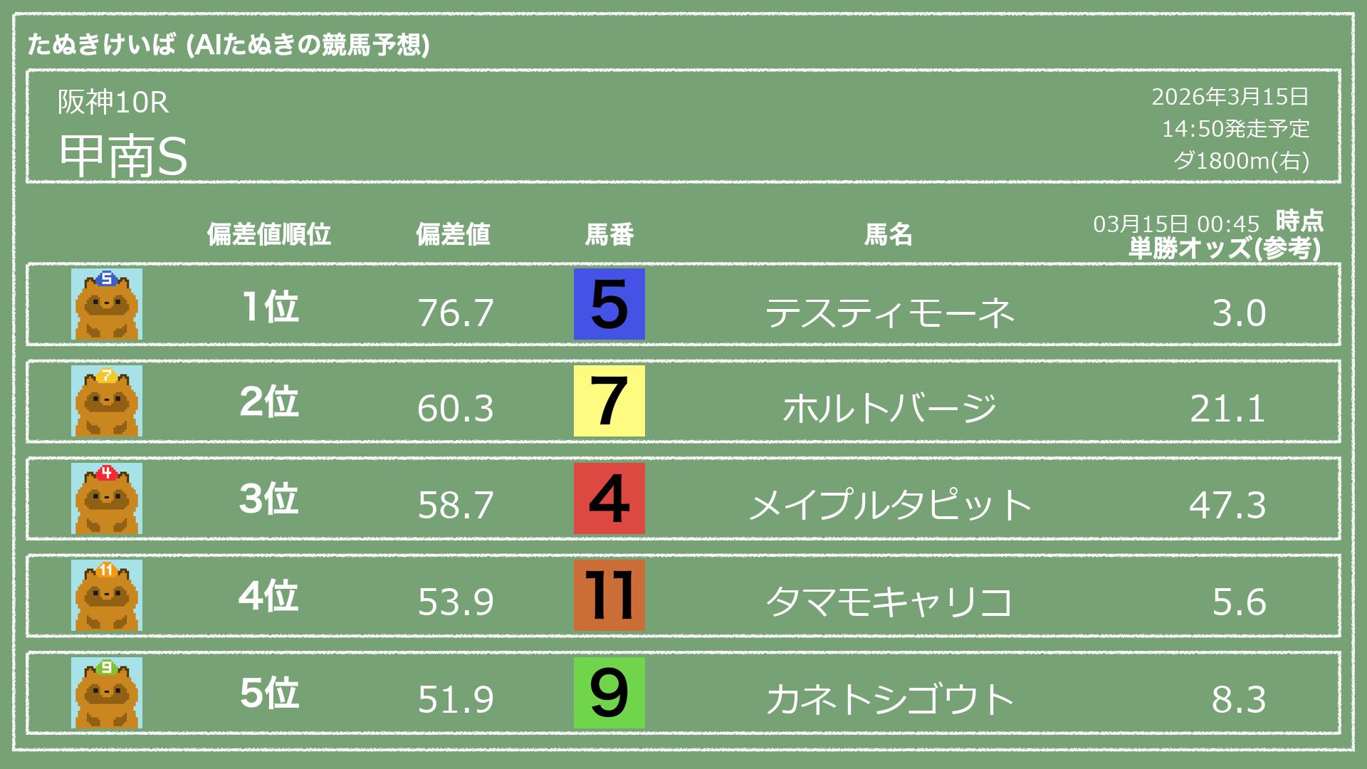 「たぬきけいば」による無料競馬予想です🥳
