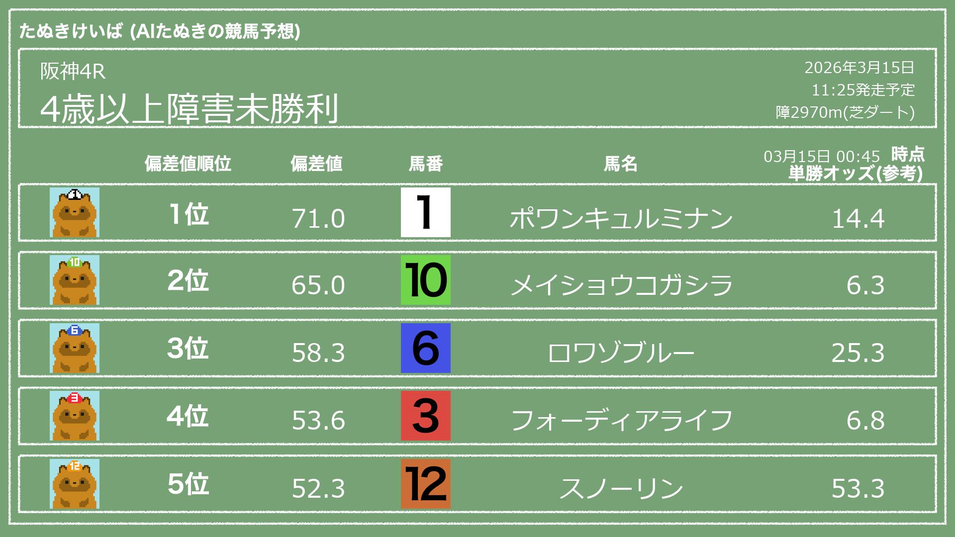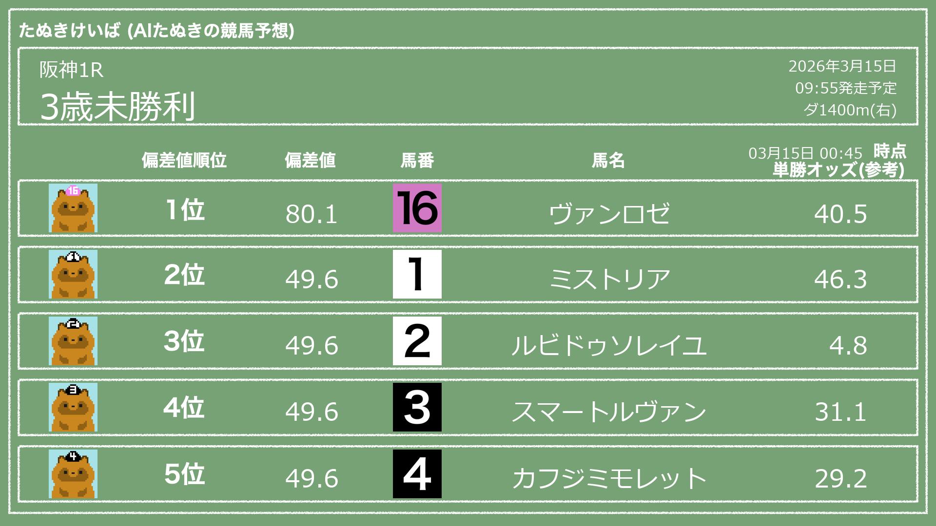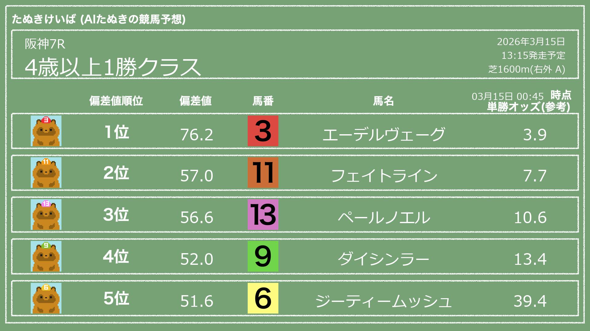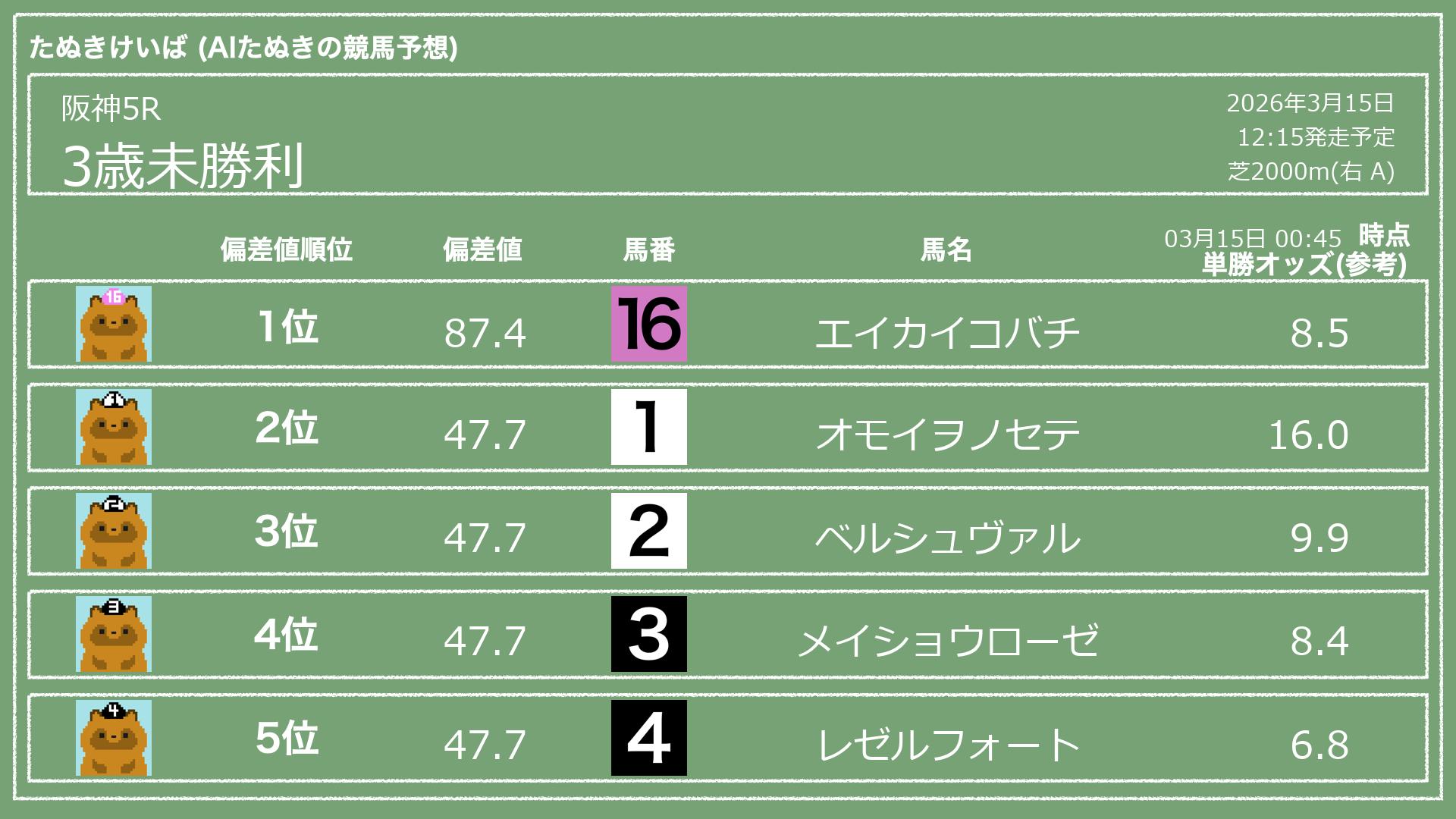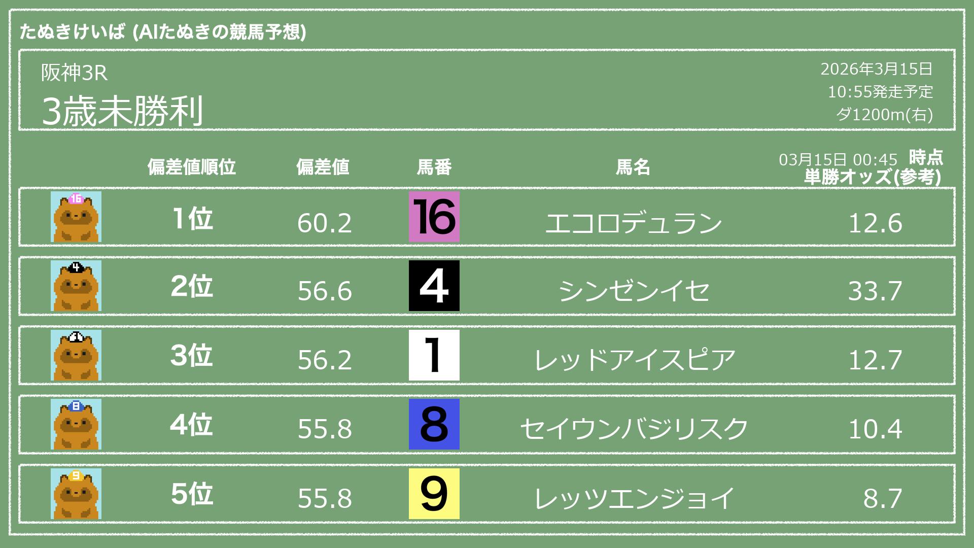 「たぬきけいば」による無料競馬予想です🥳