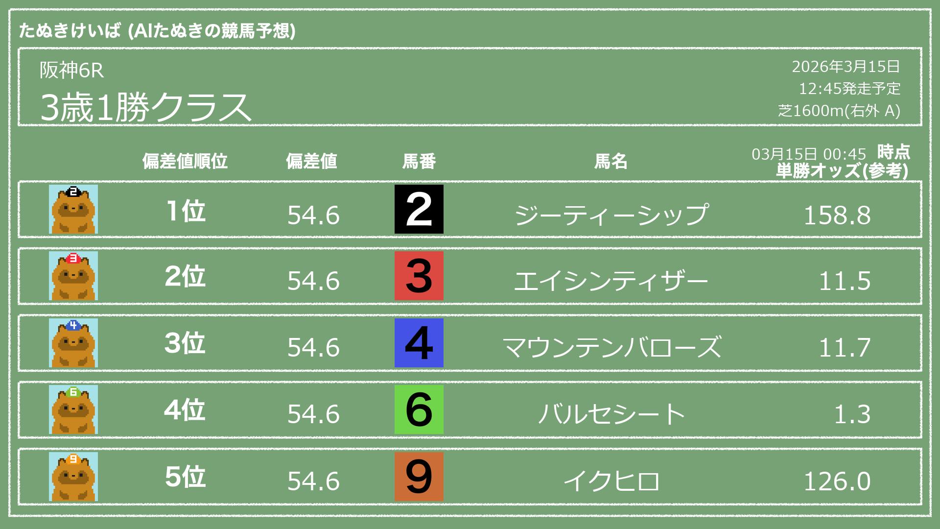 【全レース無料】2026年3月15日(日) 阪神競馬のAI予想