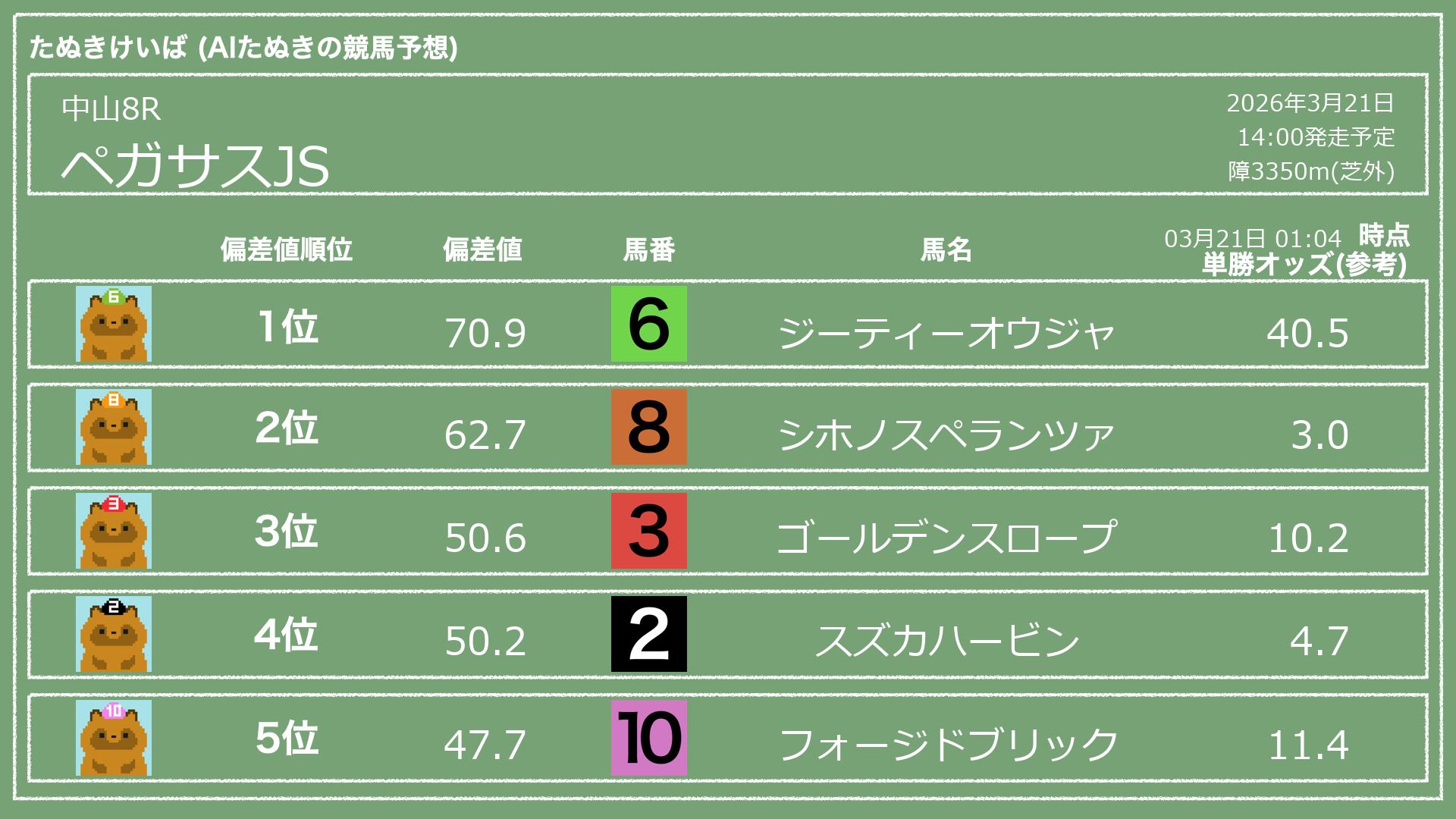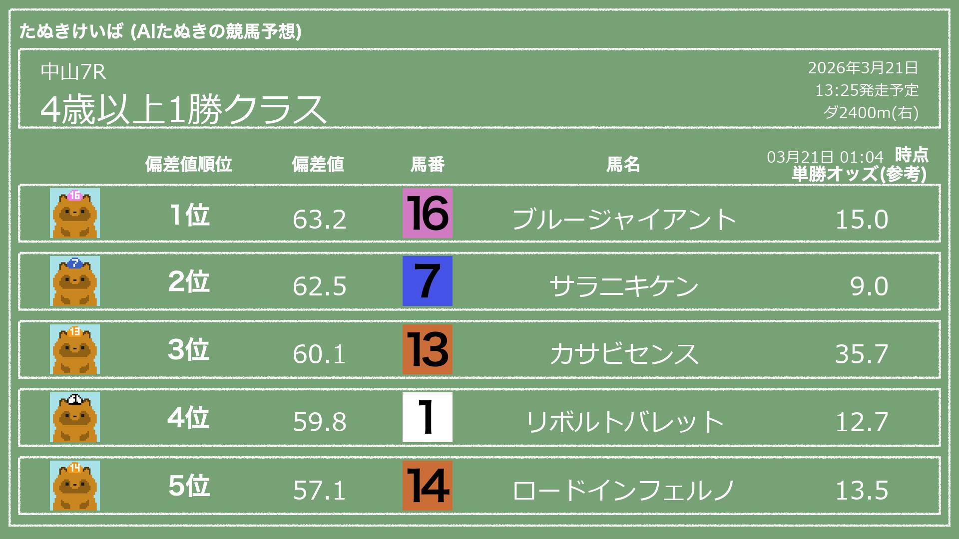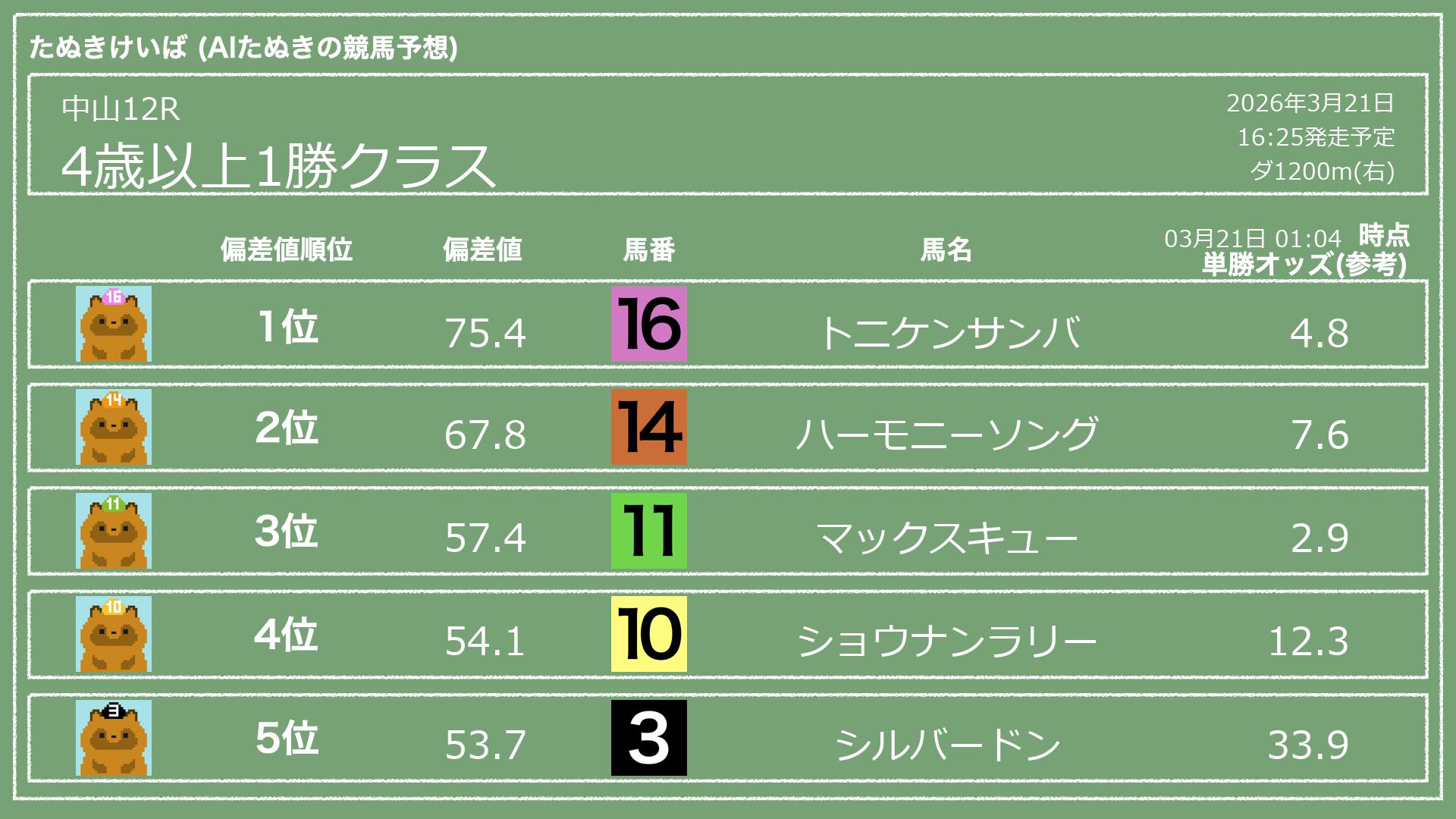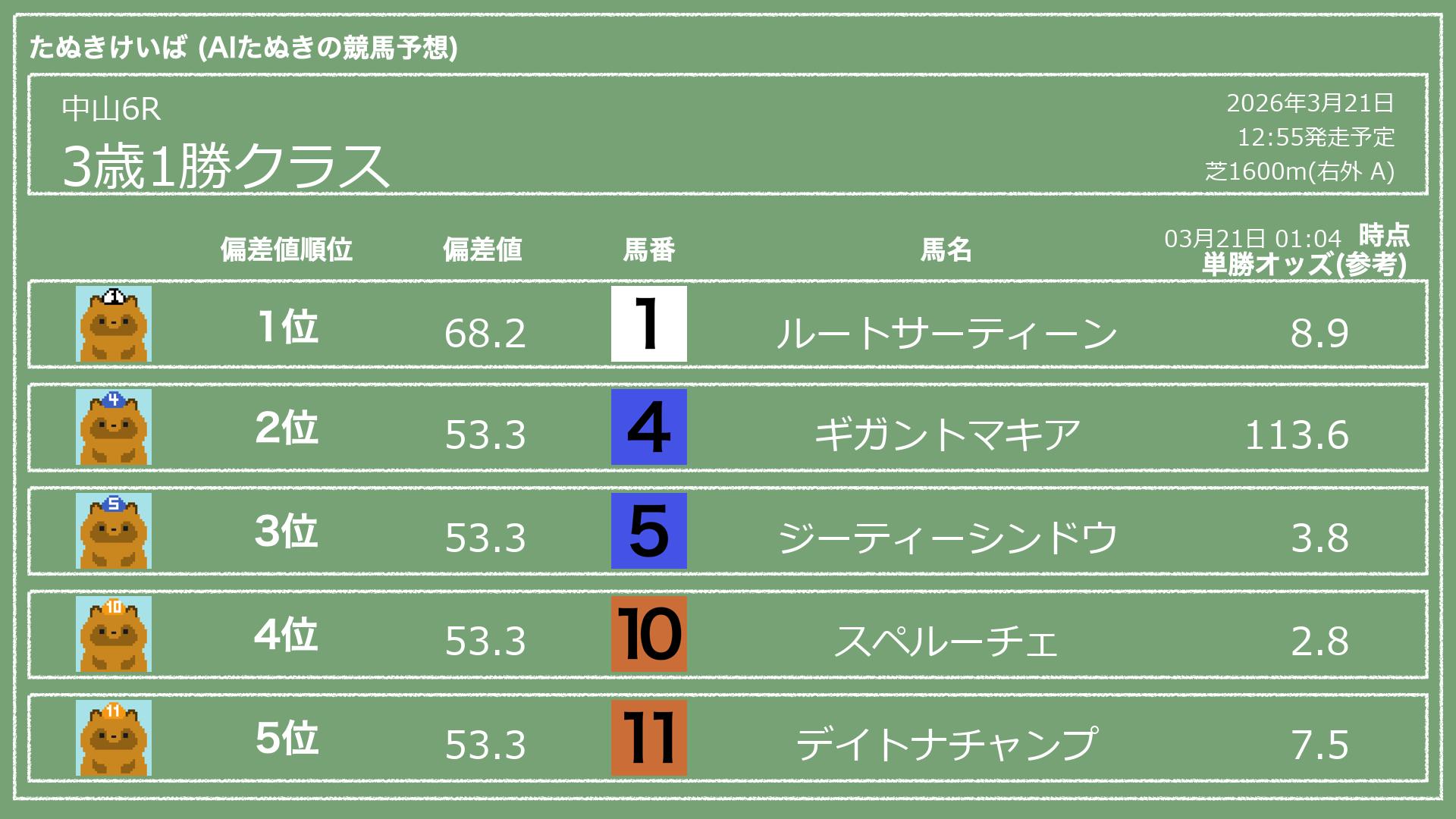 「たぬきけいば」による無料競馬予想です🥳