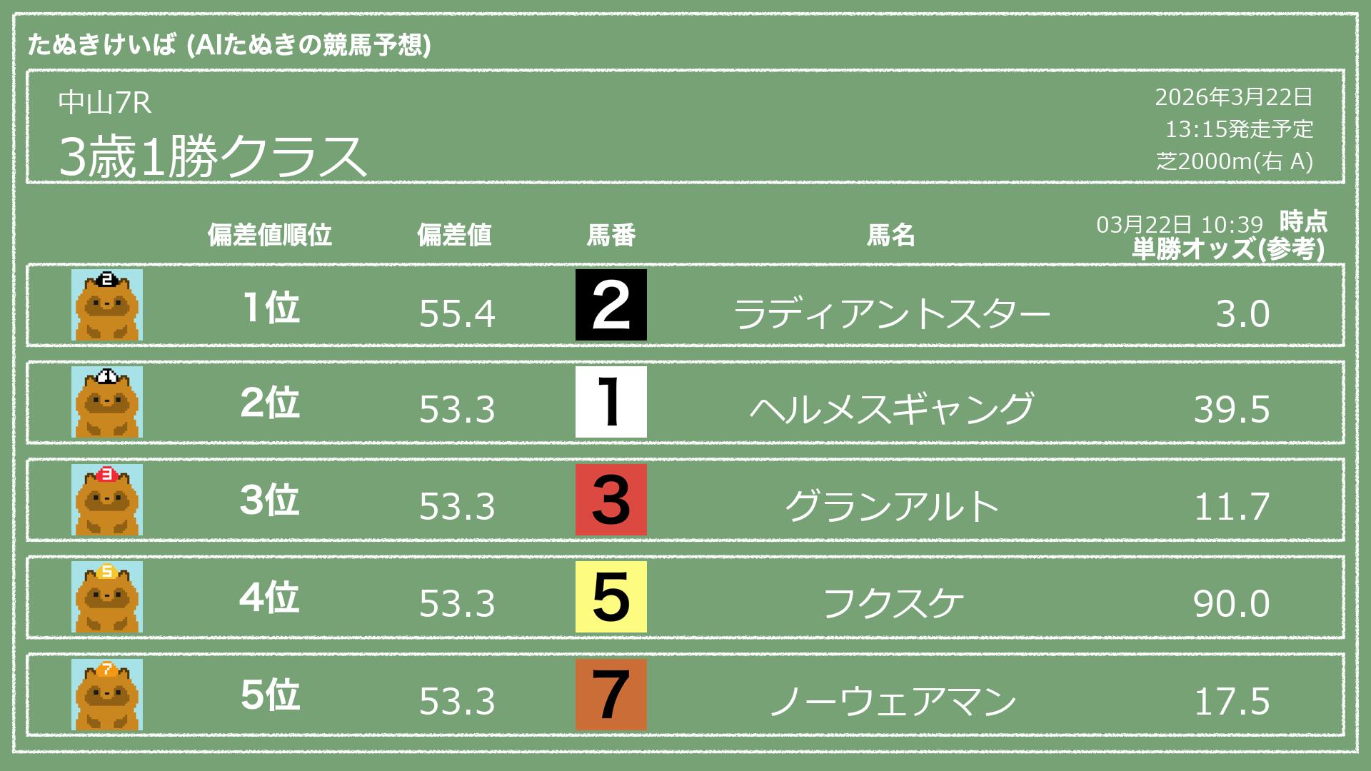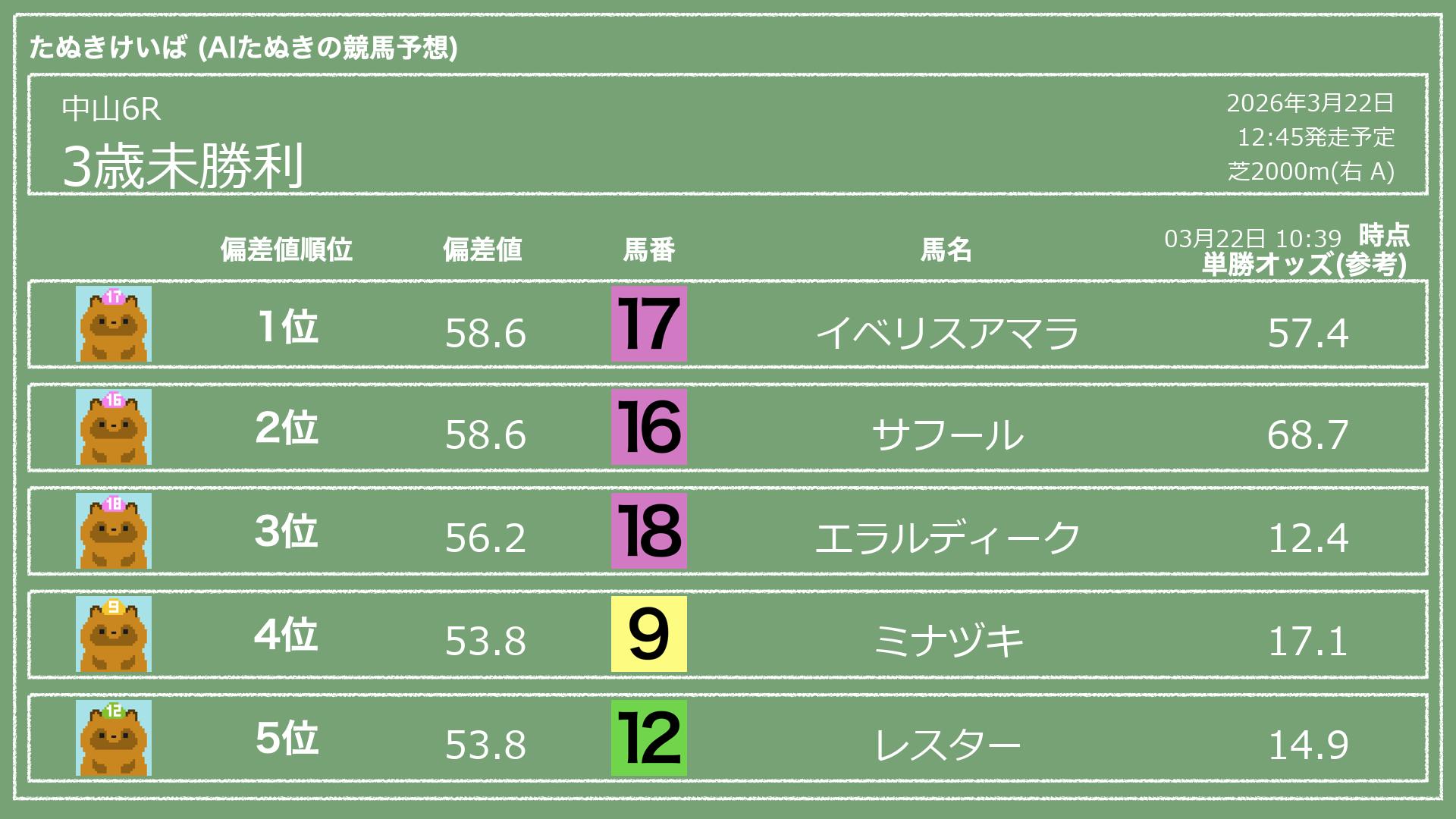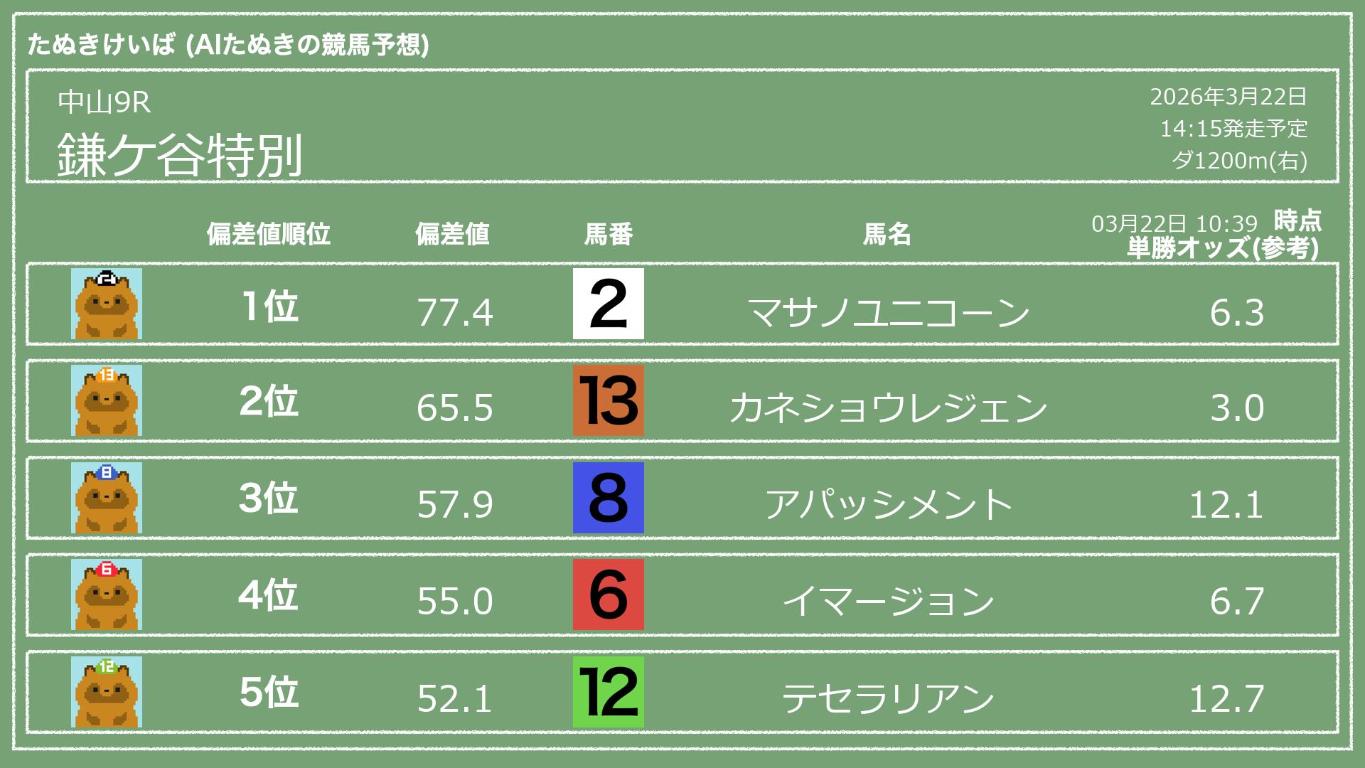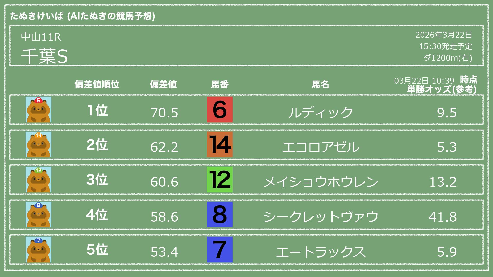 「たぬきけいば」による無料競馬予想です🥳