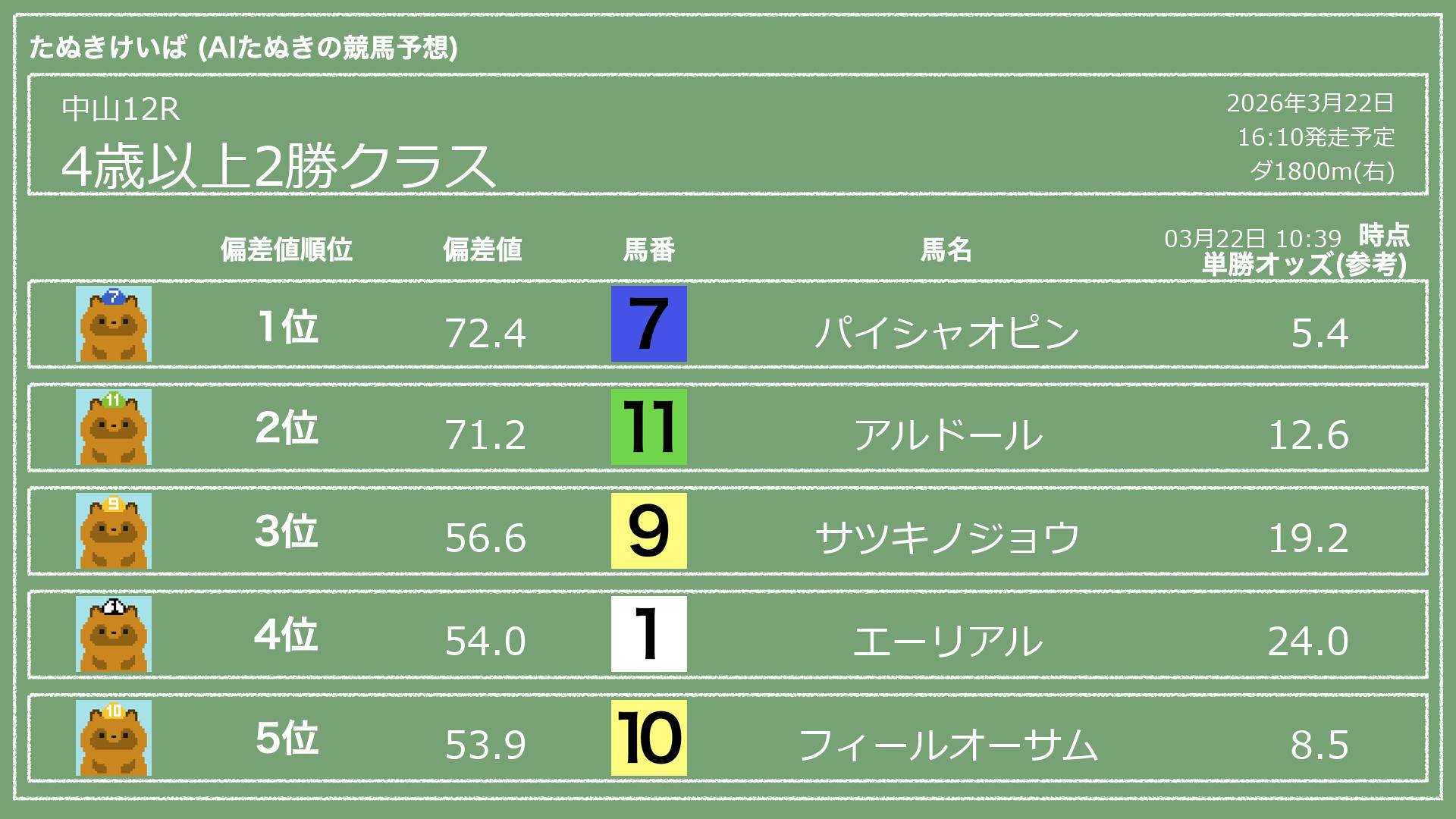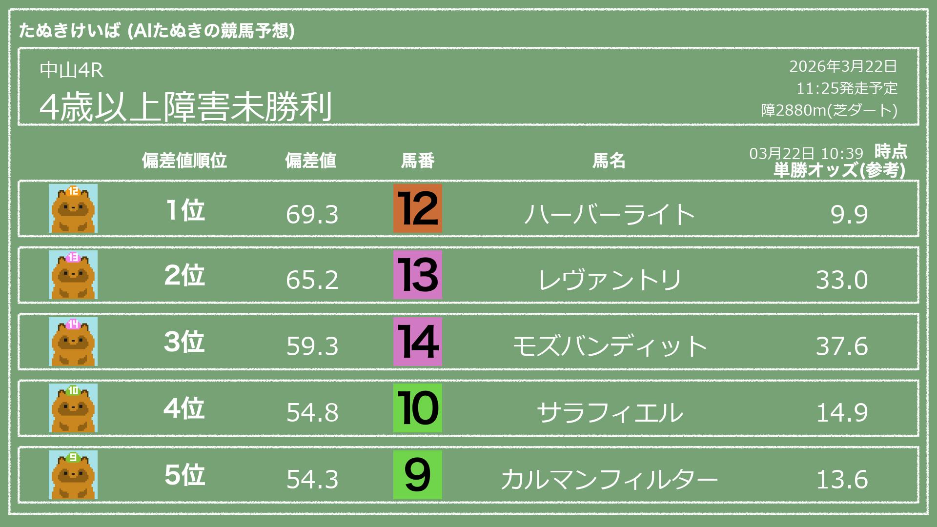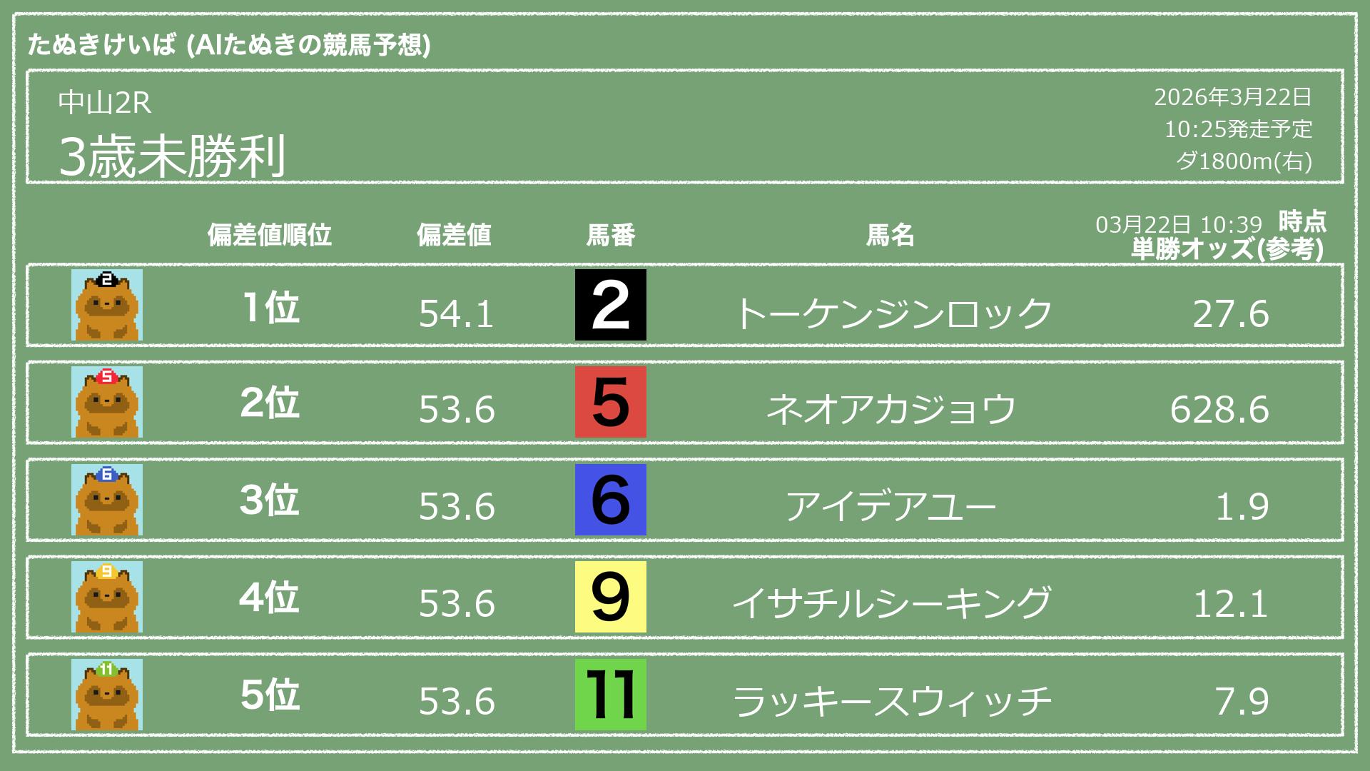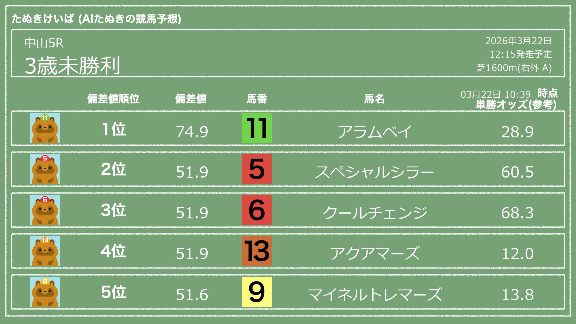 「たぬきけいば」による無料競馬予想です🥳