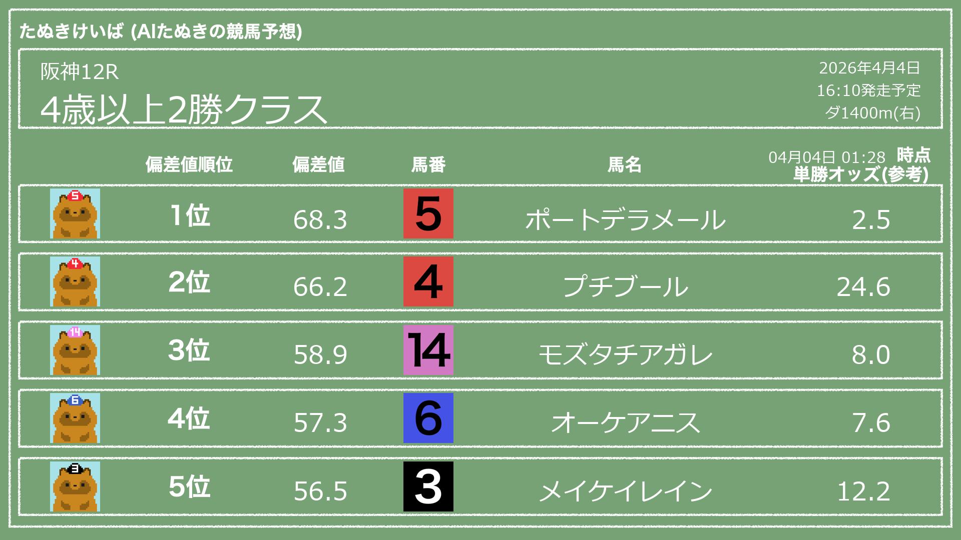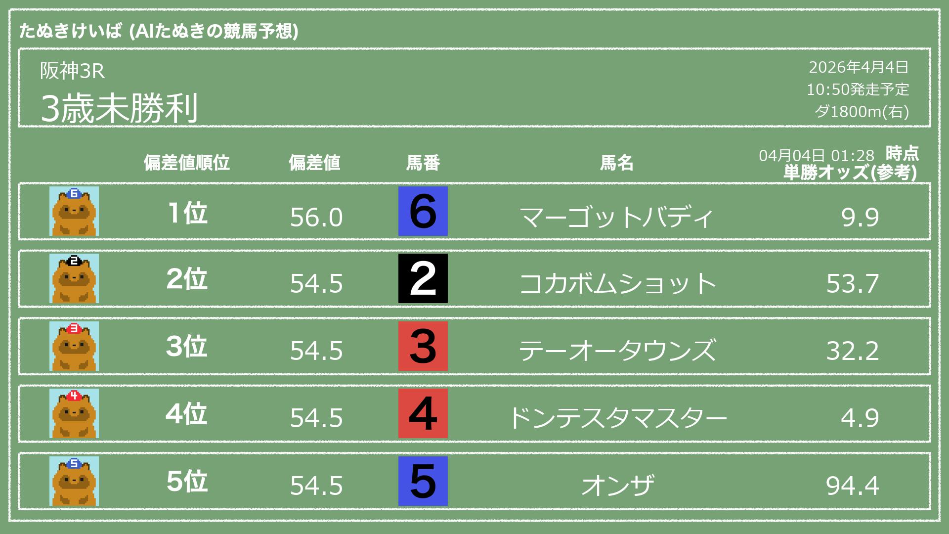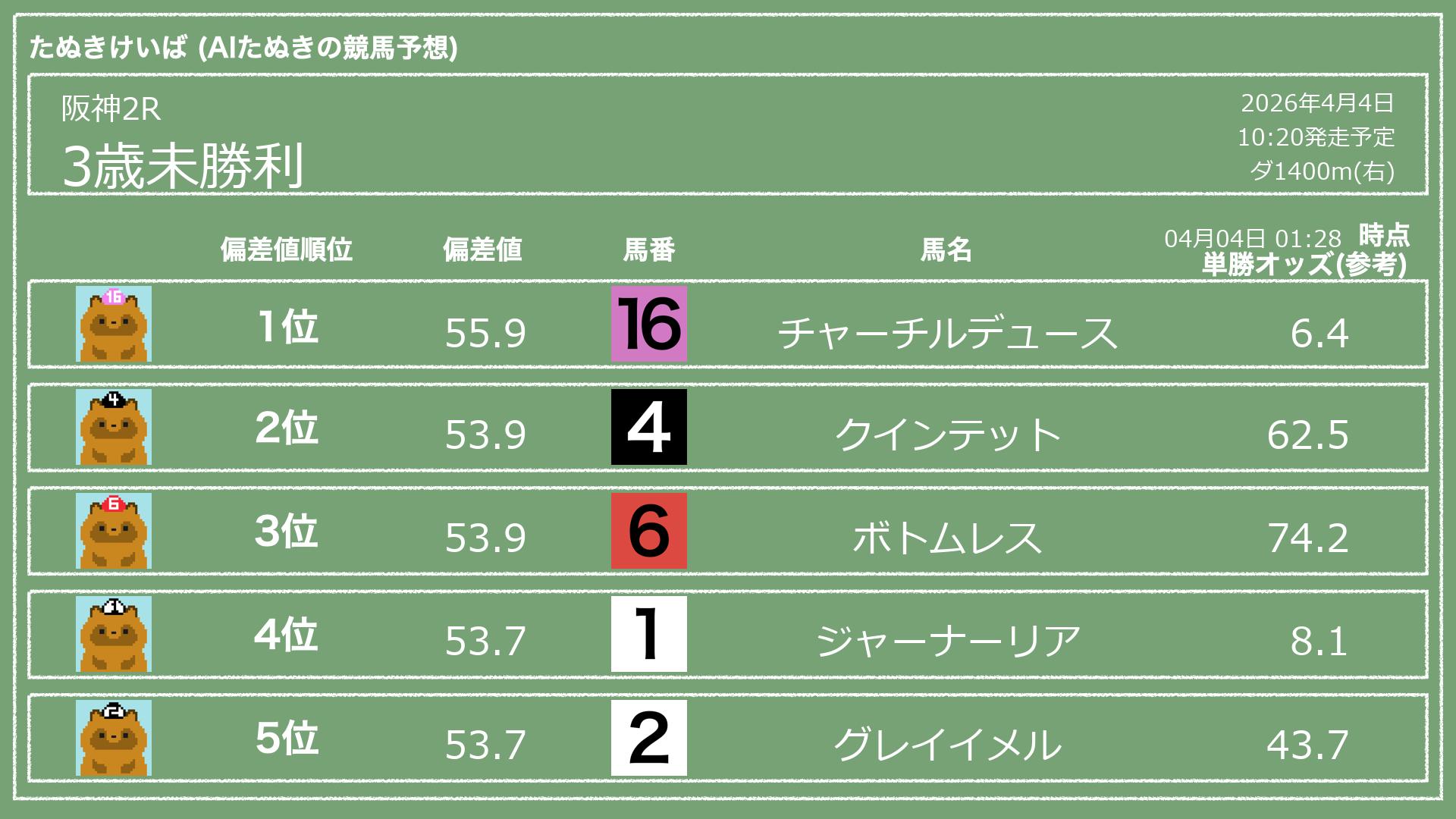 「たぬきけいば」による無料競馬予想です🥳