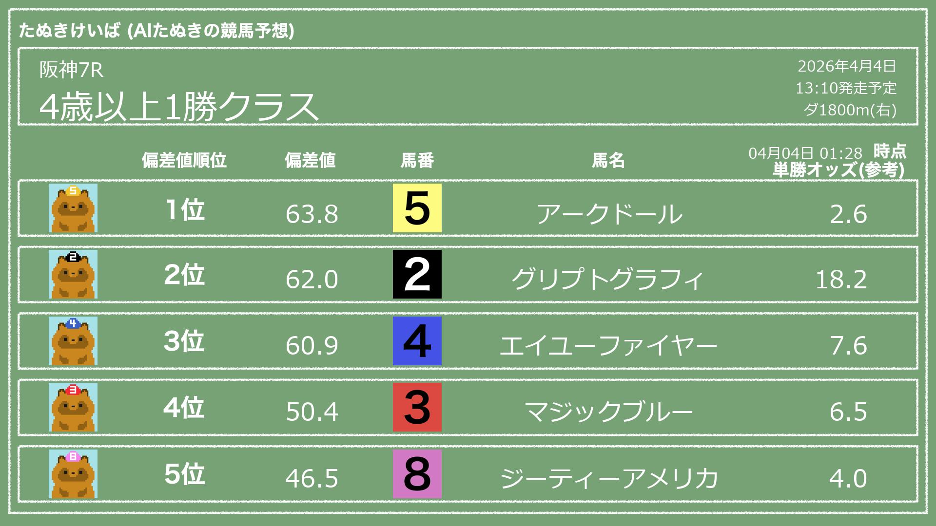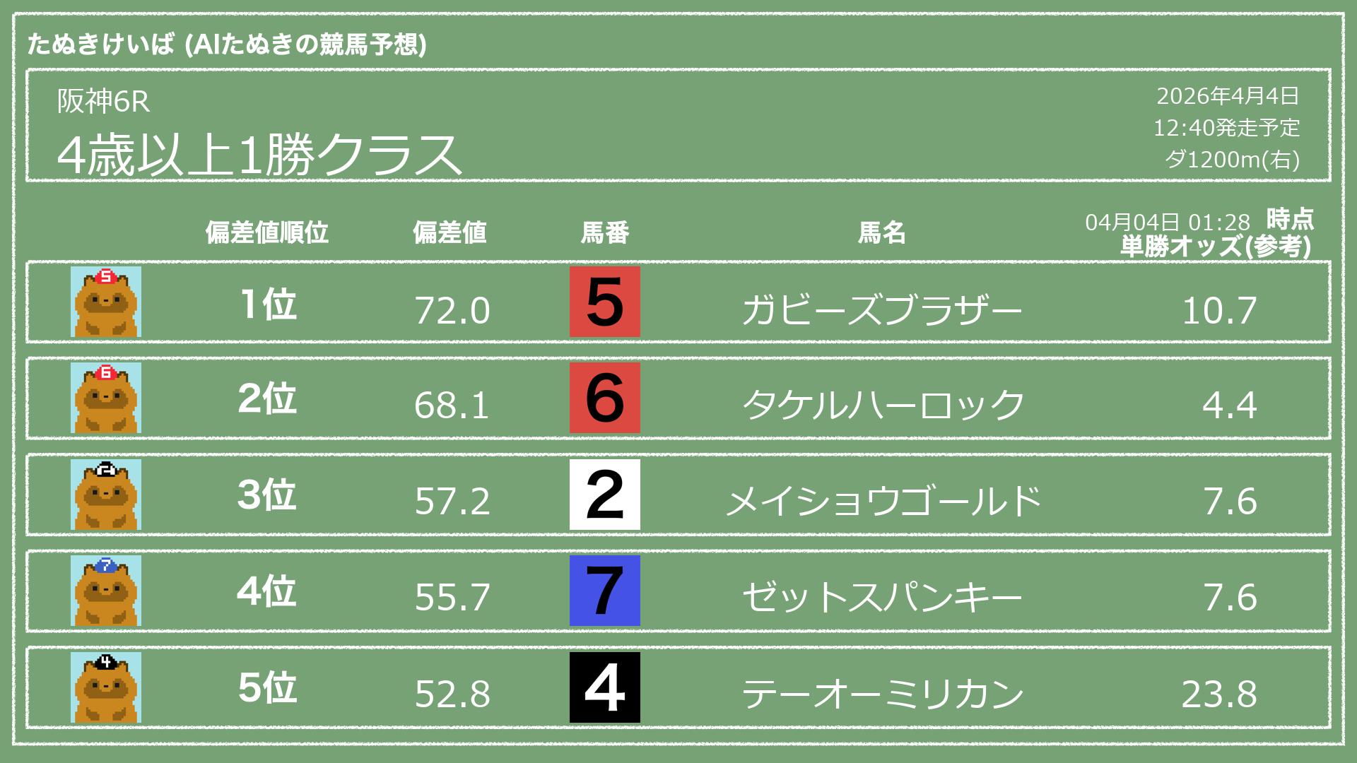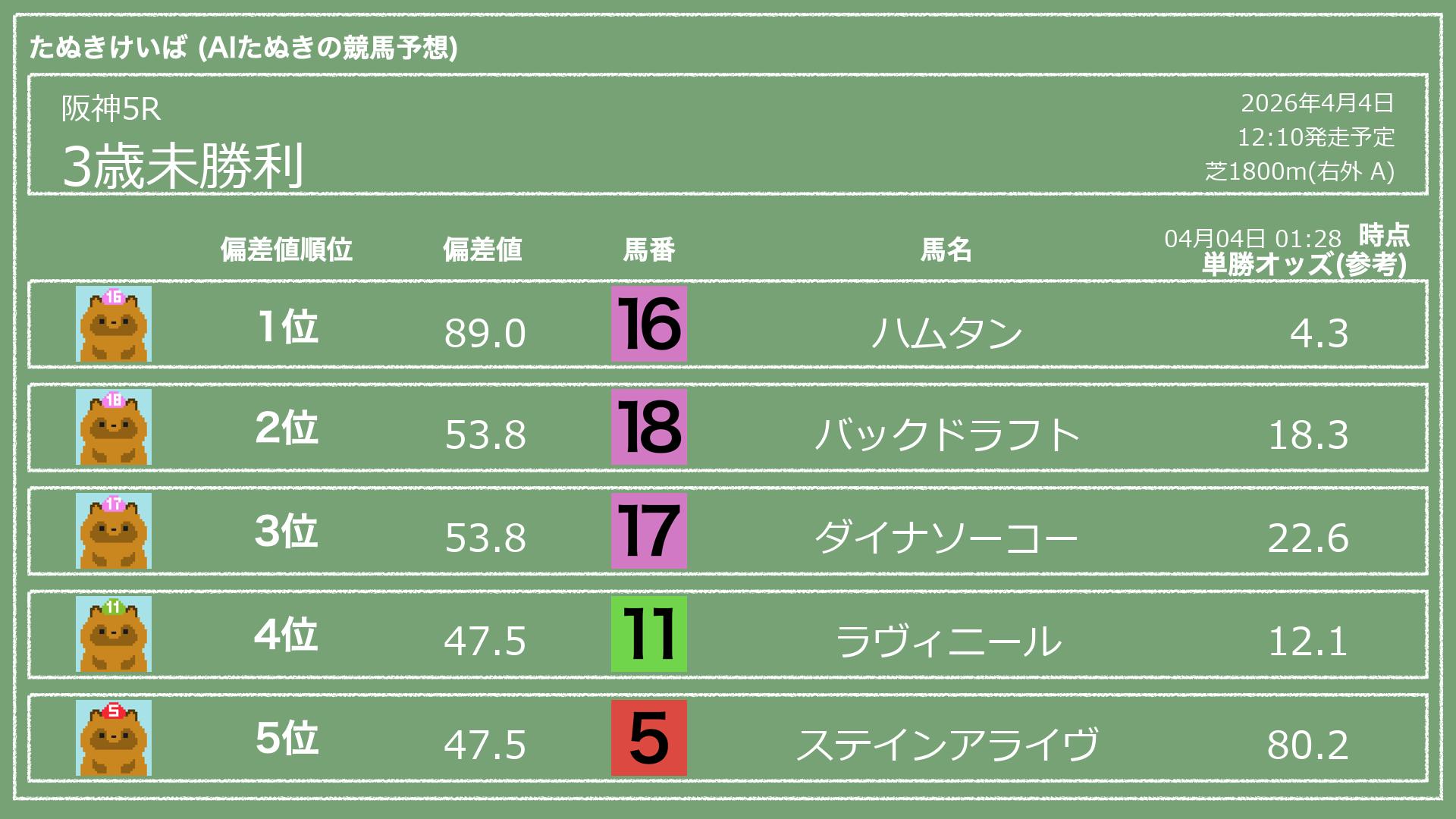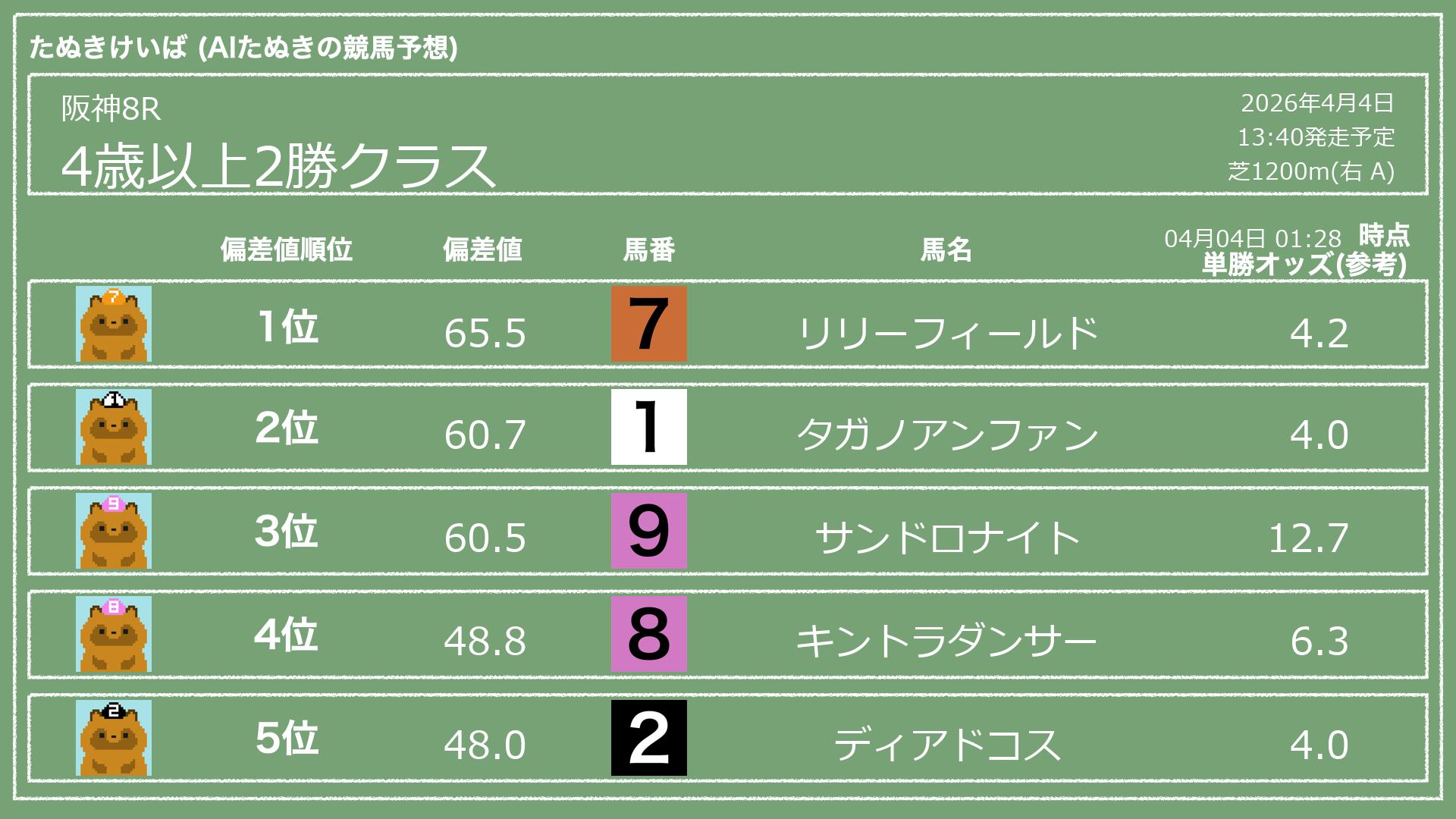 「たぬきけいば」による無料競馬予想です🥳