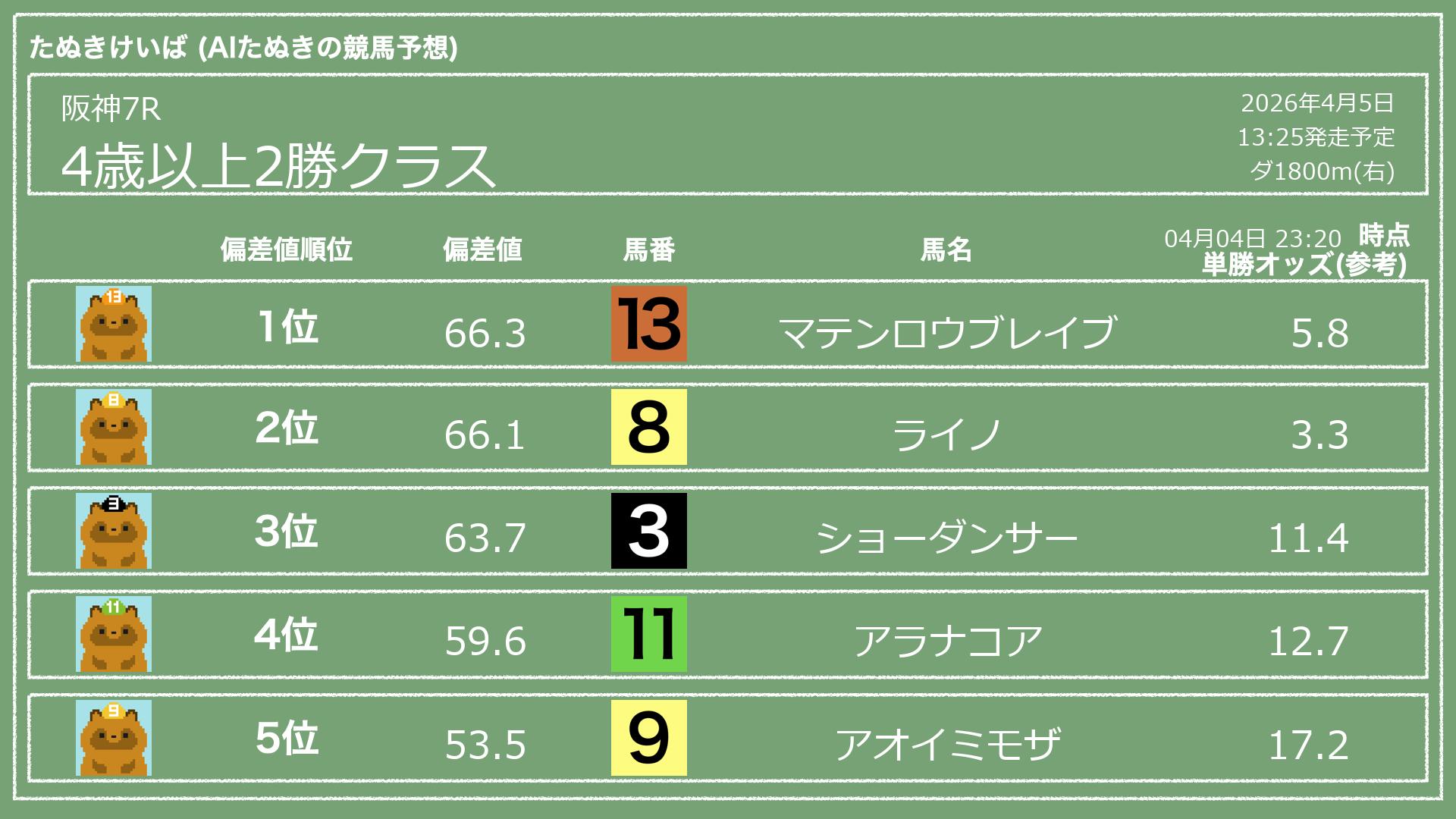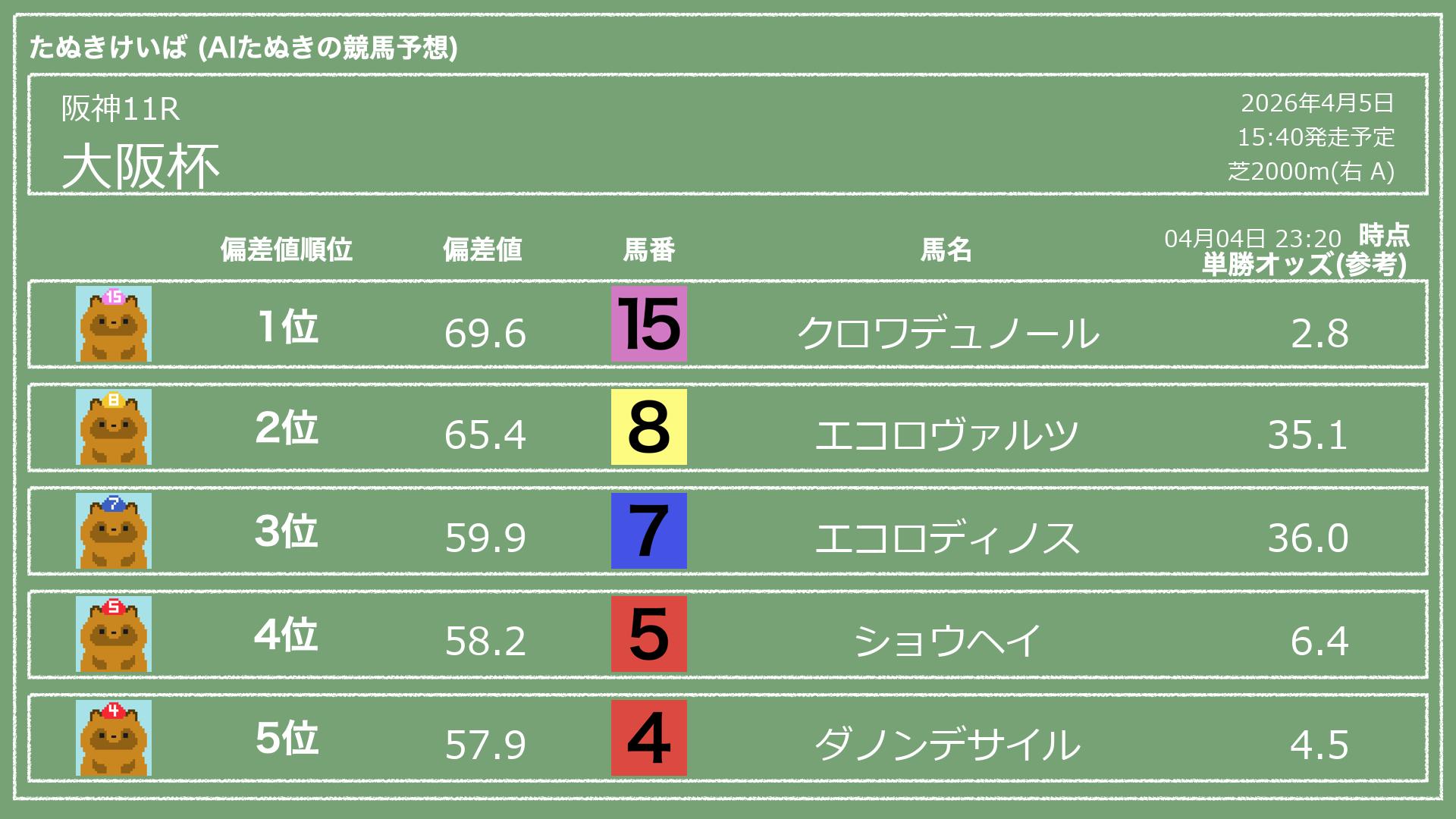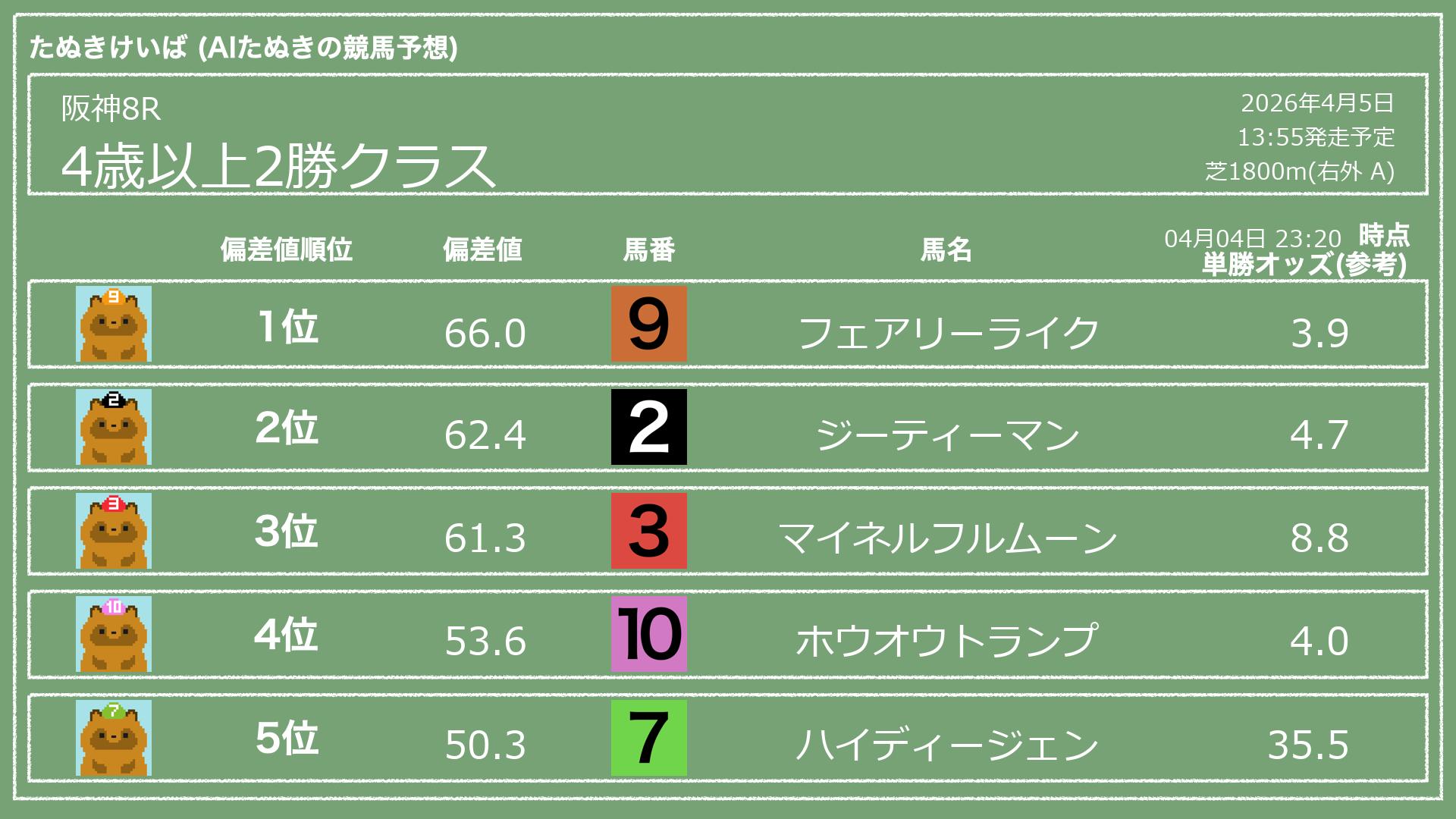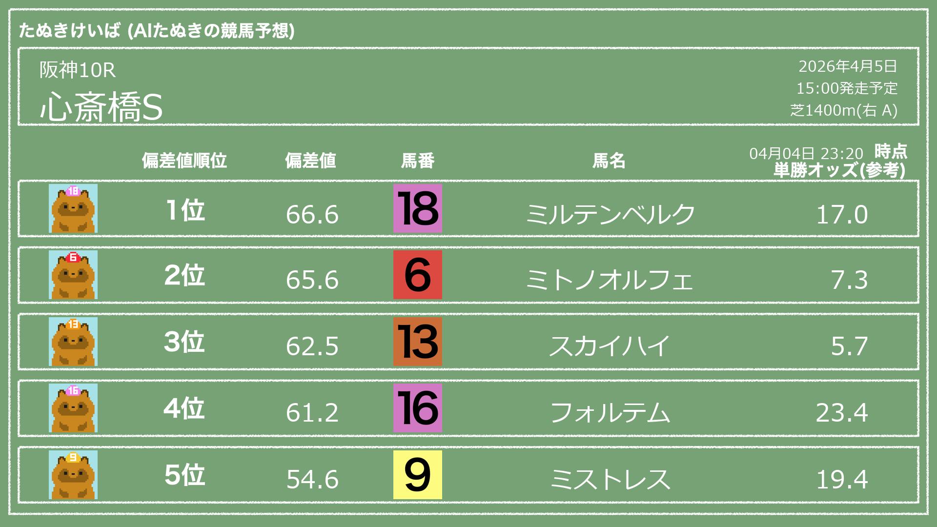 「たぬきけいば」による無料競馬予想です🥳