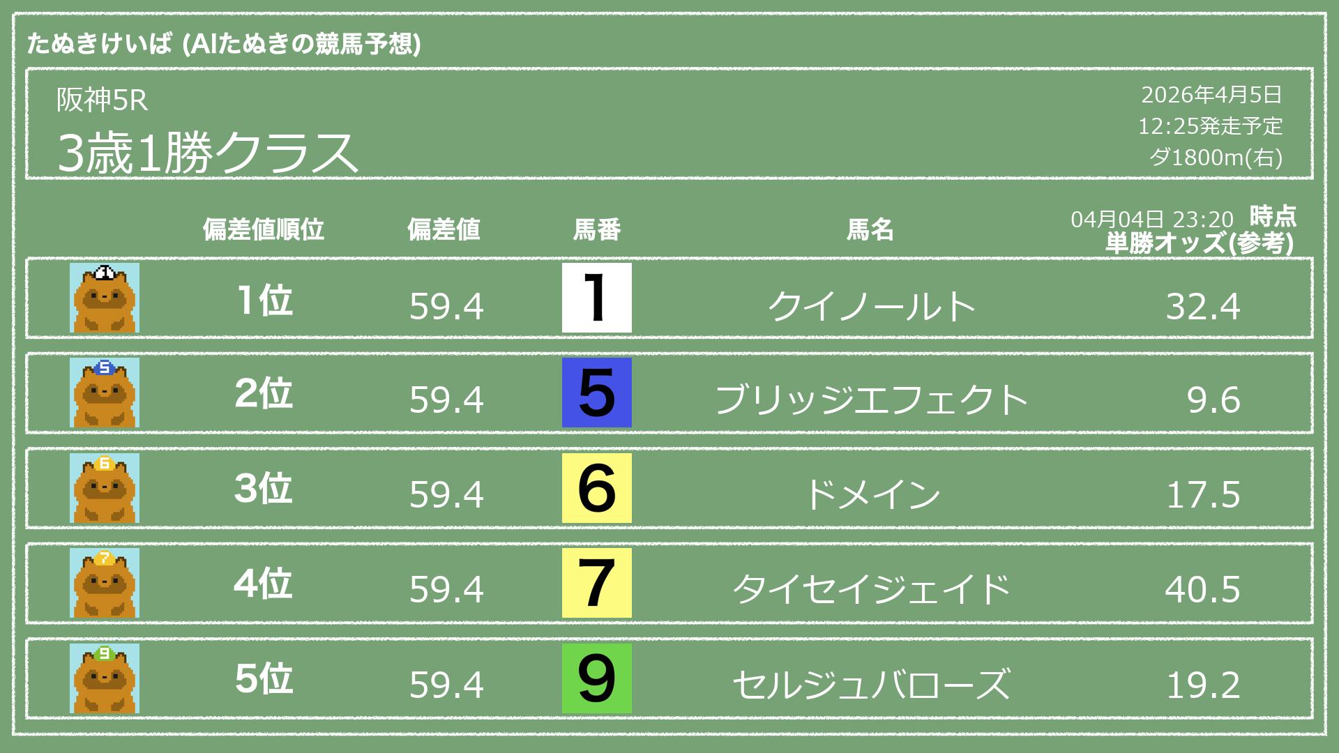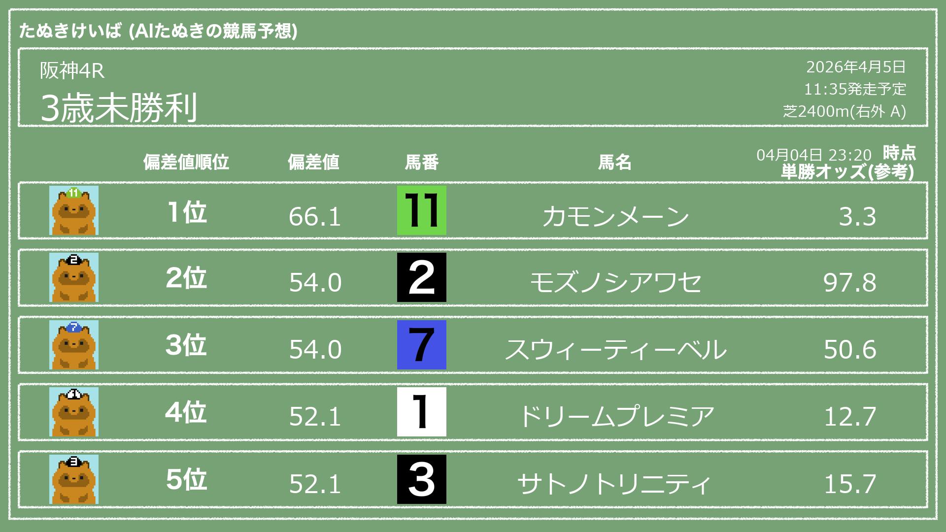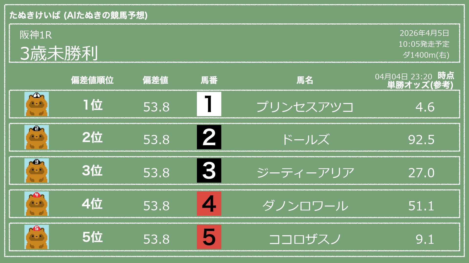 「たぬきけいば」による無料競馬予想です🥳