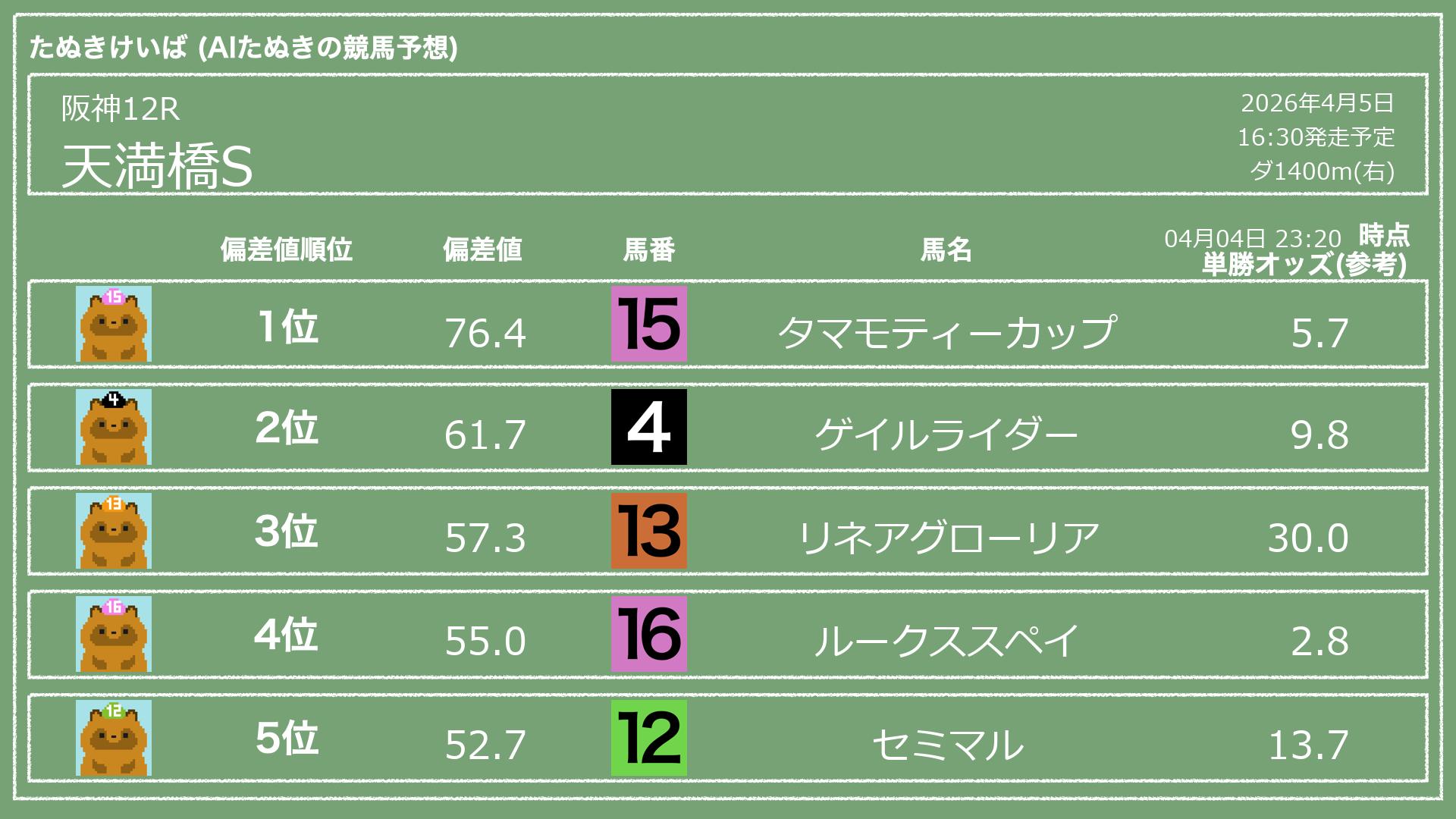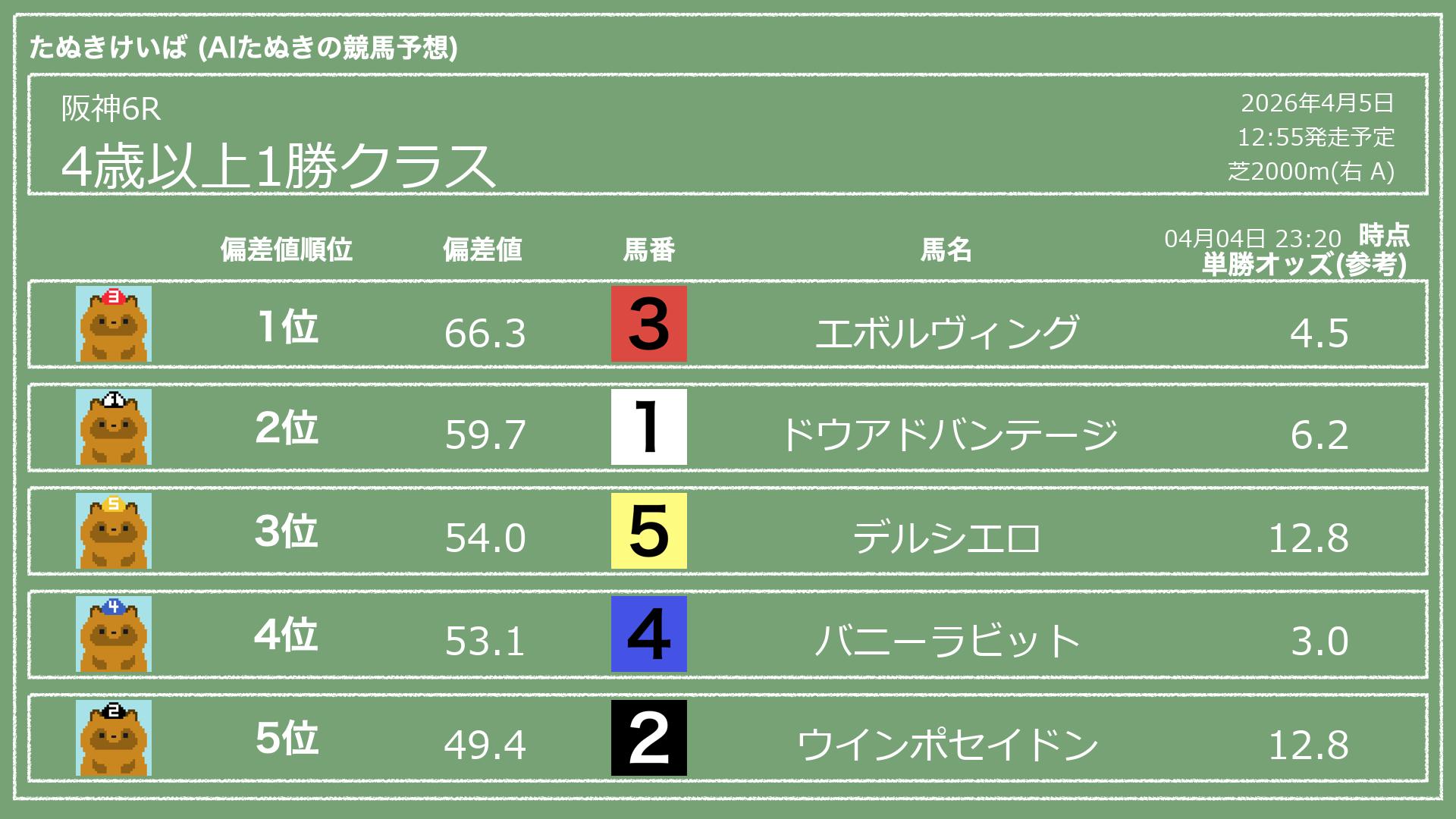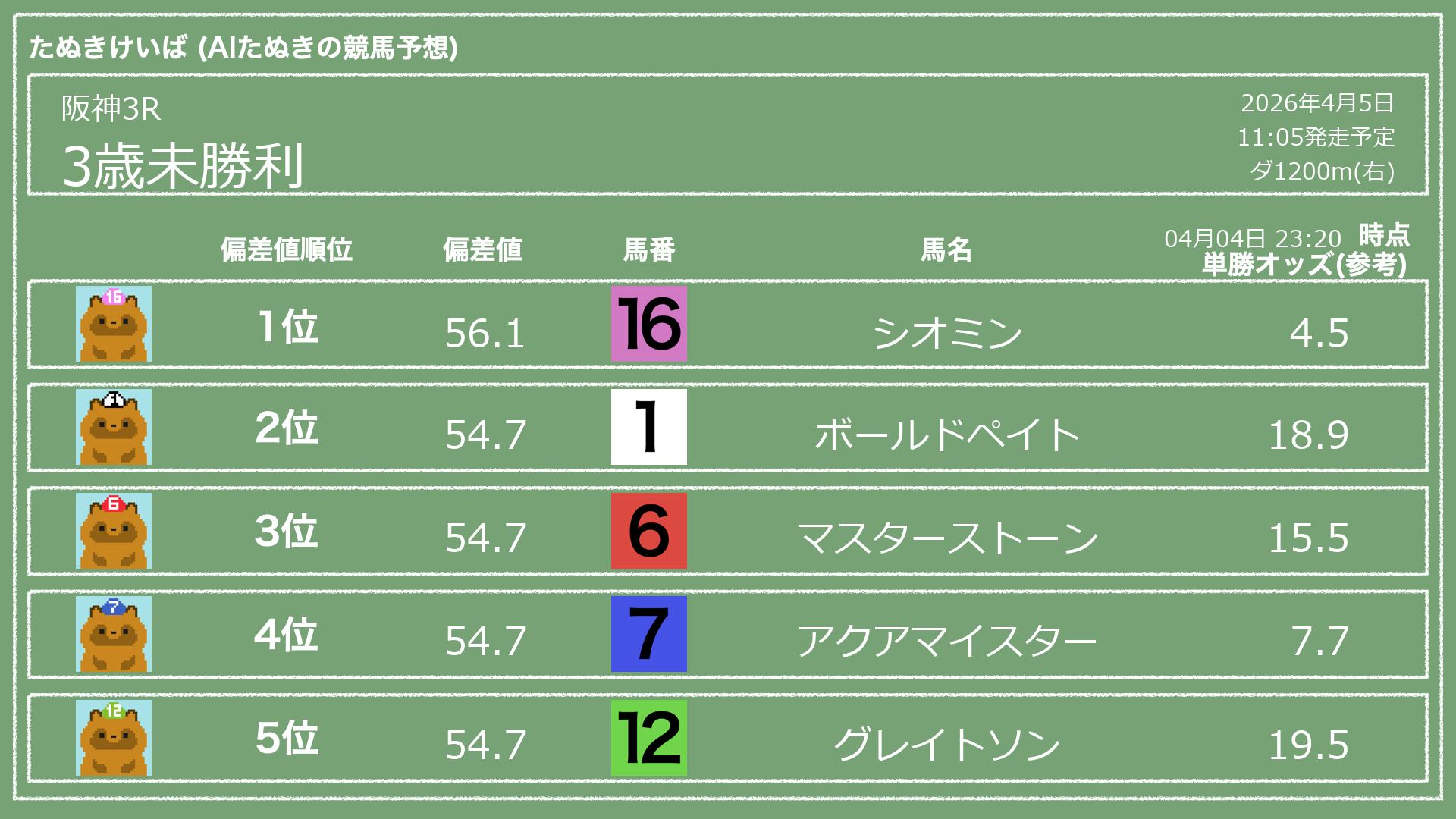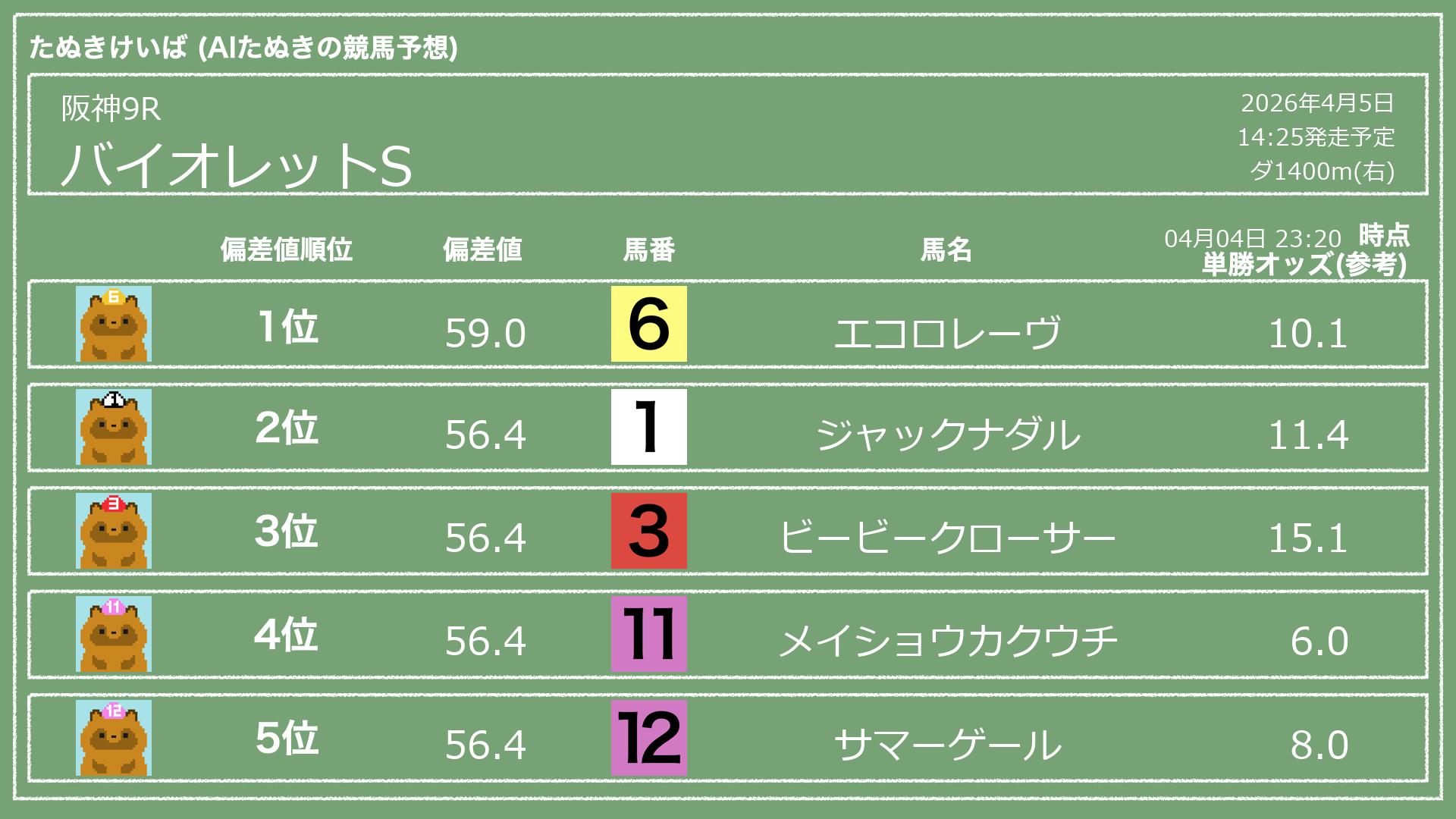 「たぬきけいば」による無料競馬予想です🥳