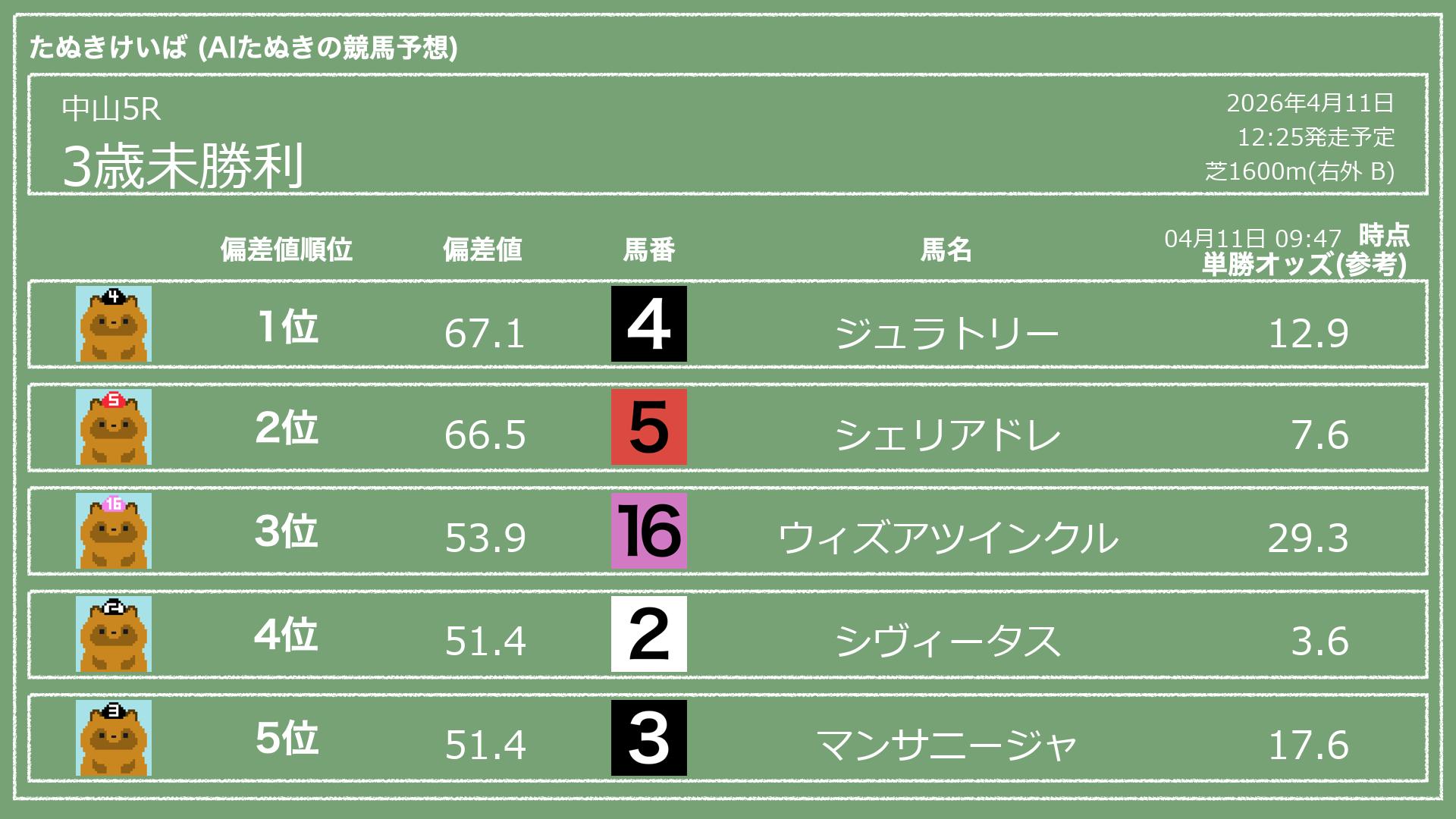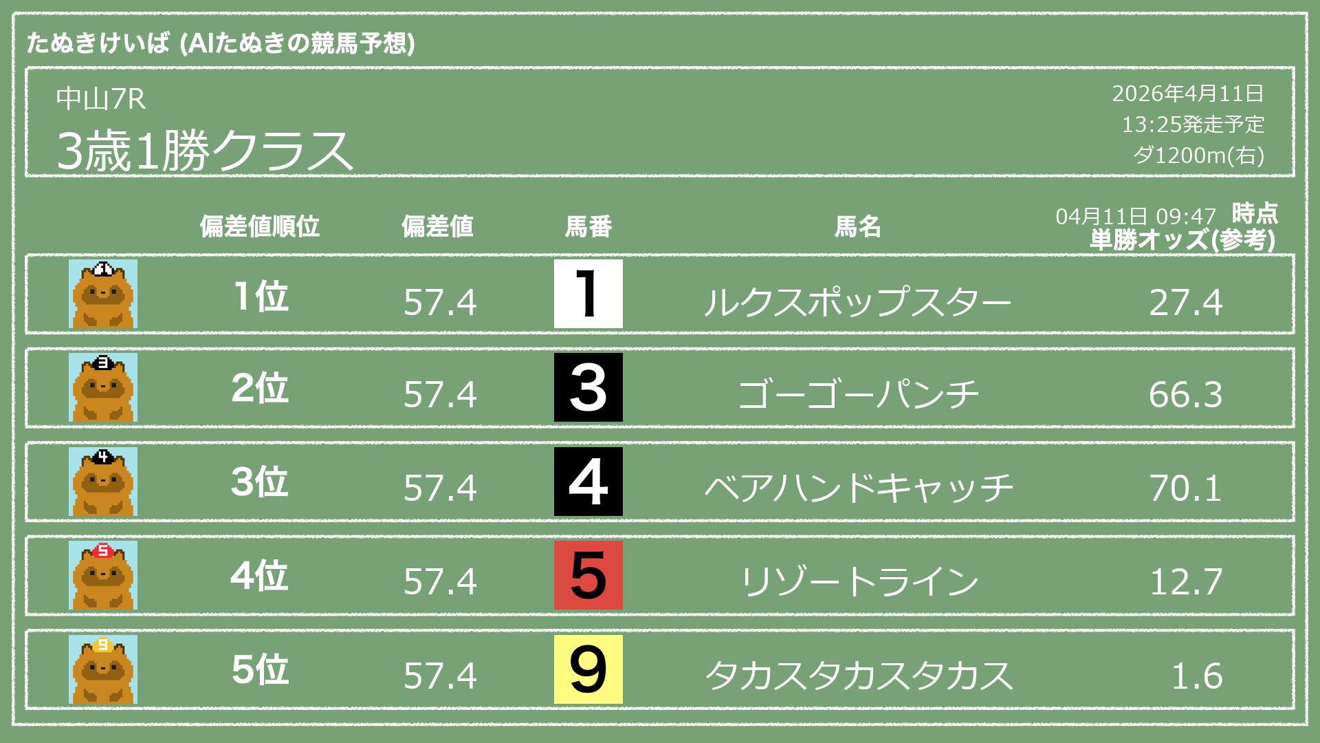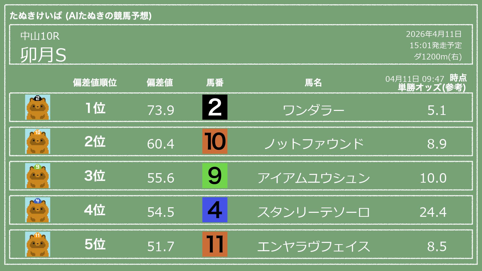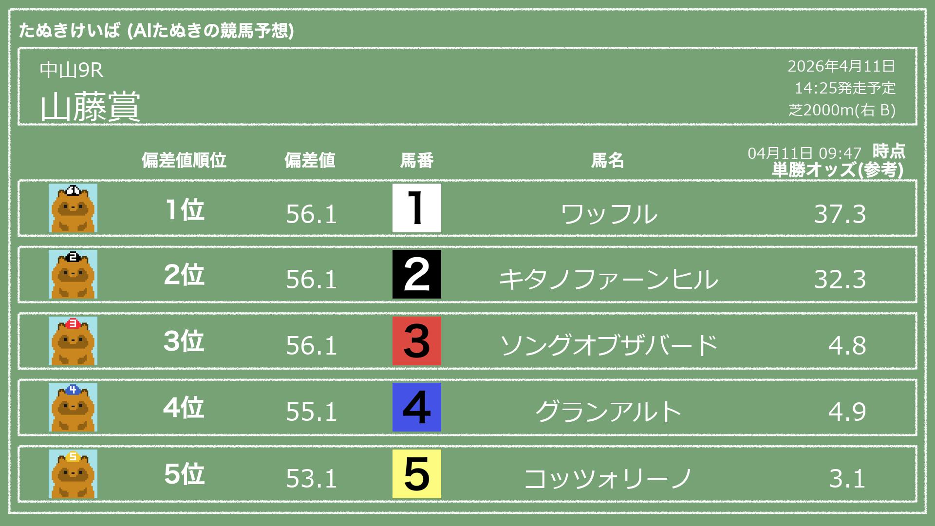 「たぬきけいば」による無料競馬予想です🥳