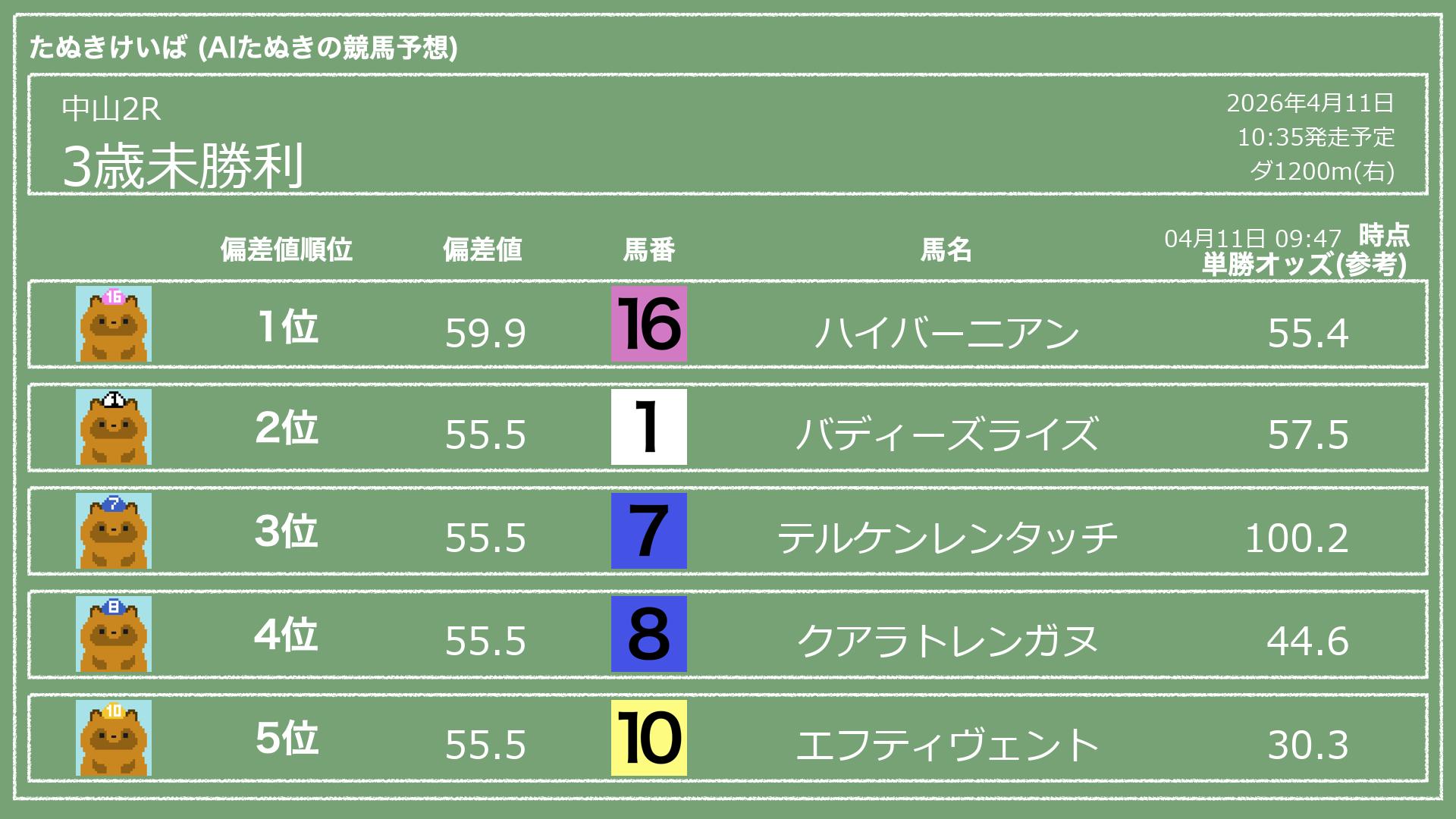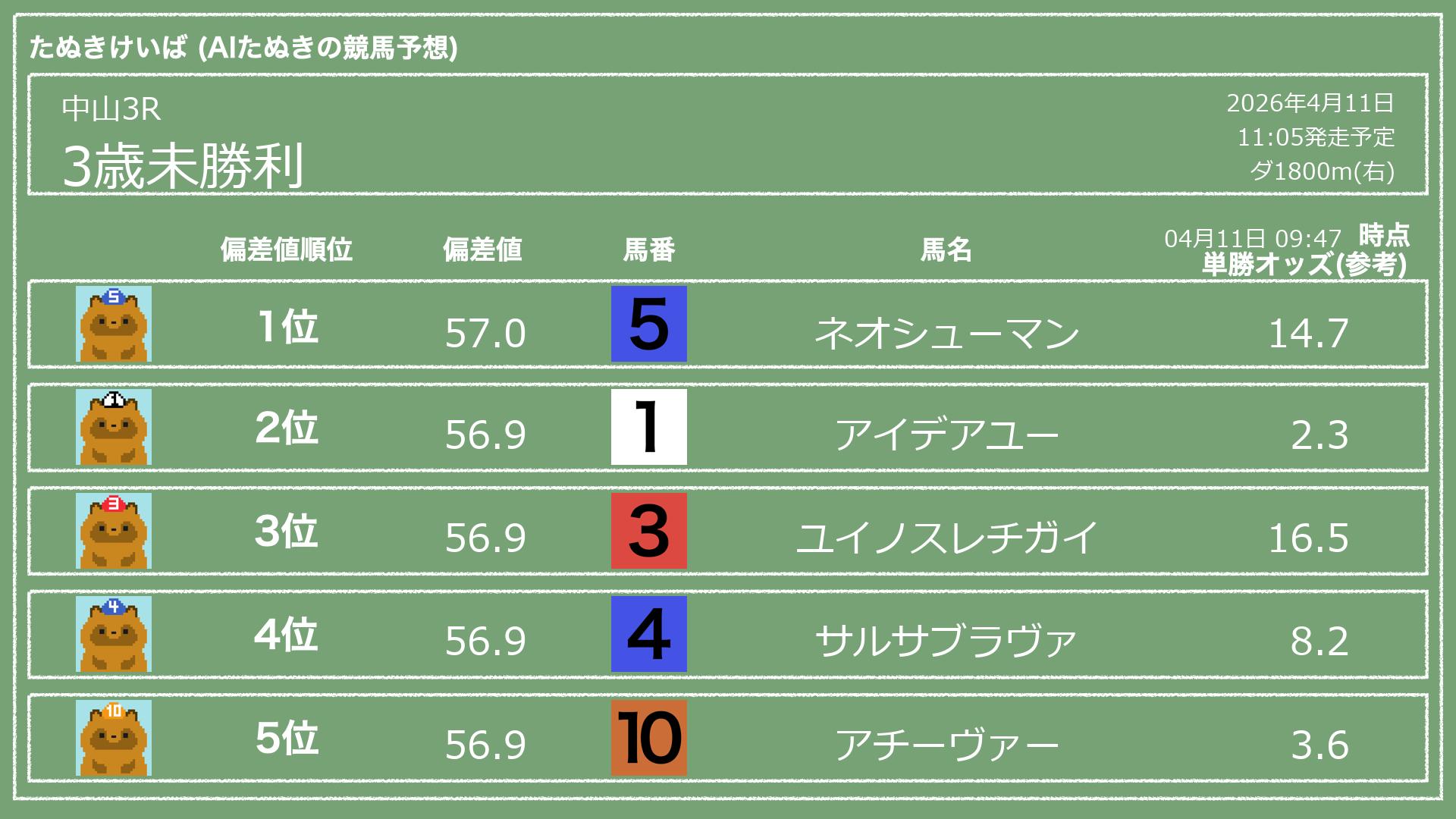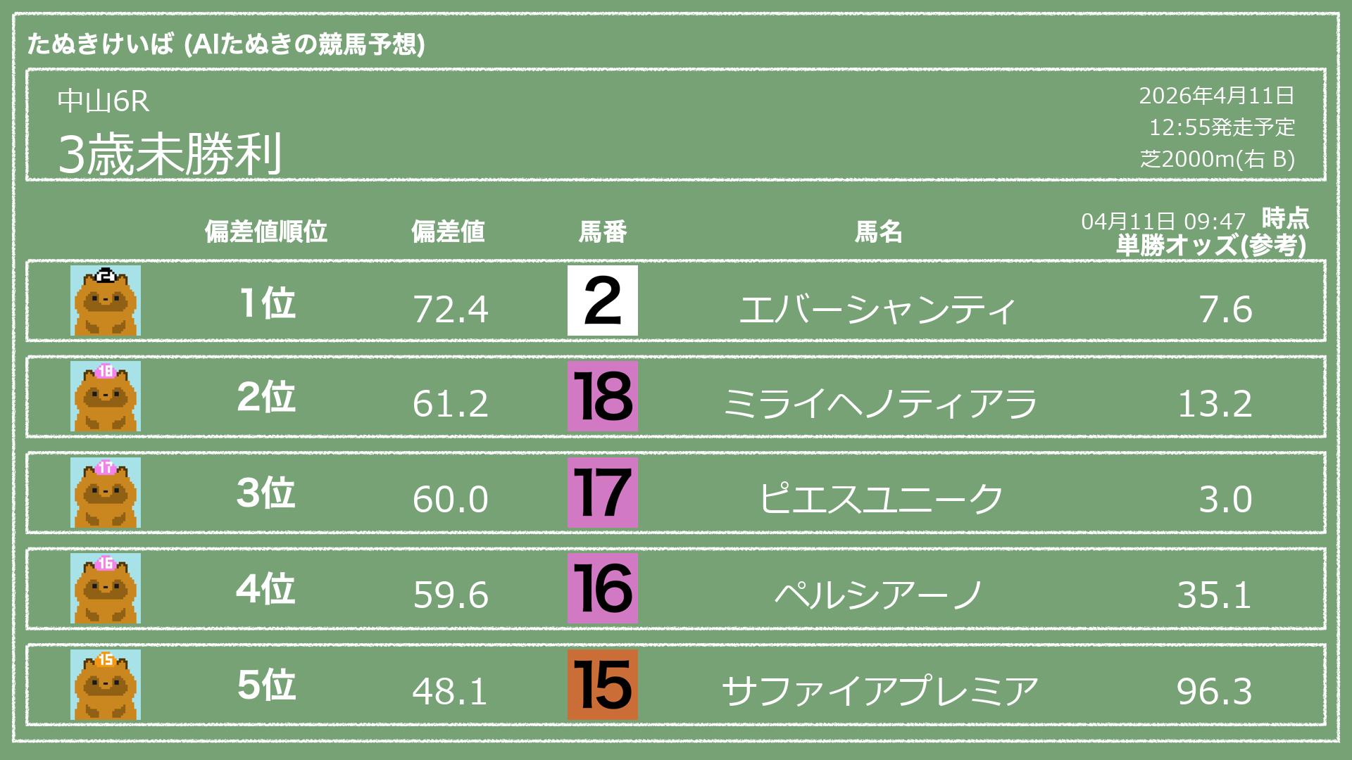 「たぬきけいば」による無料競馬予想です🥳