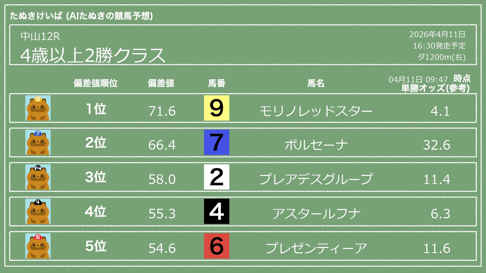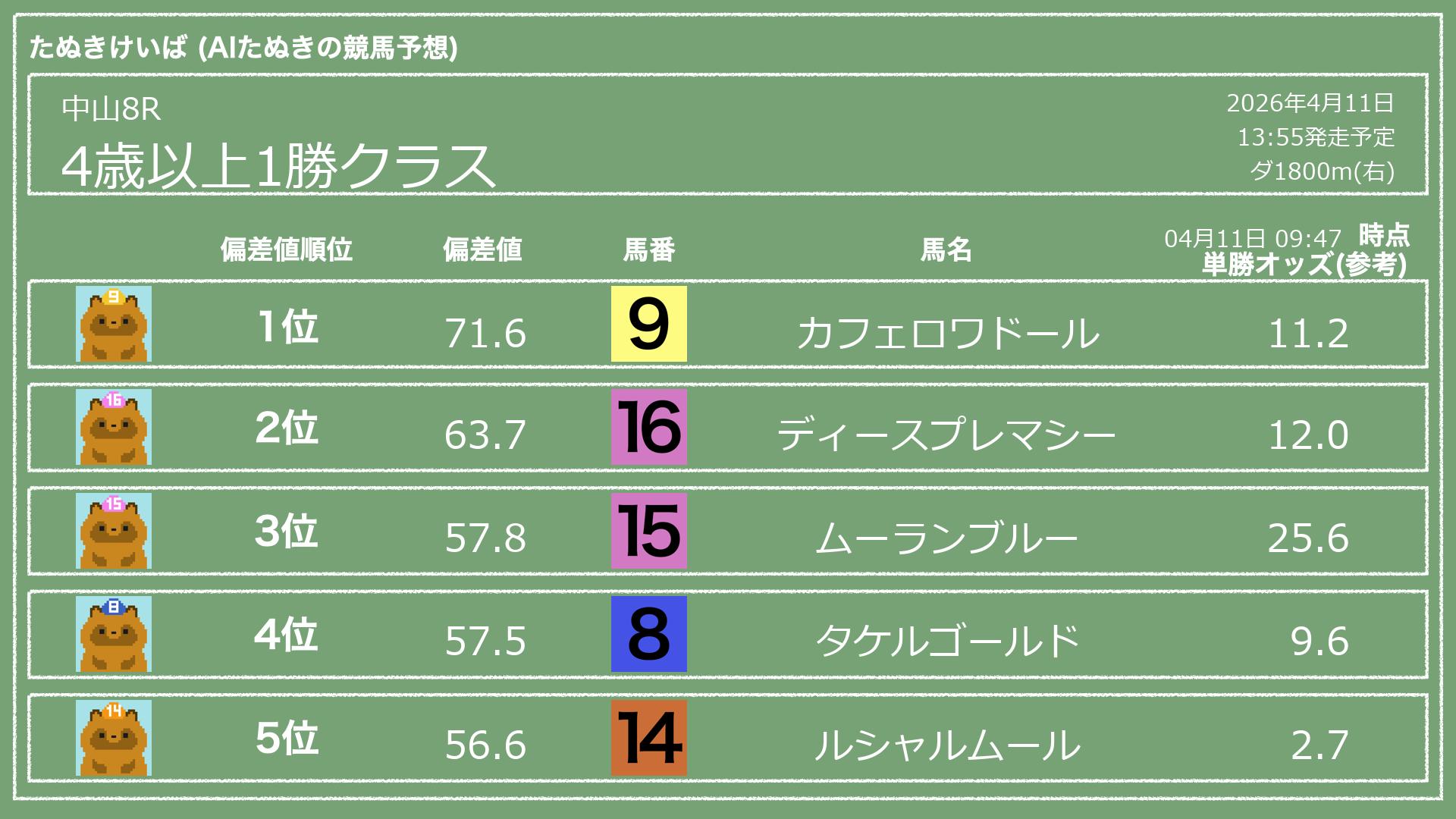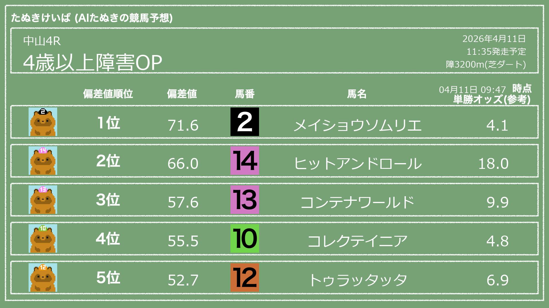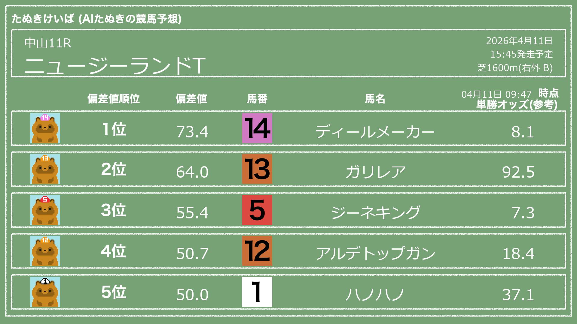 「たぬきけいば」による無料競馬予想です🥳