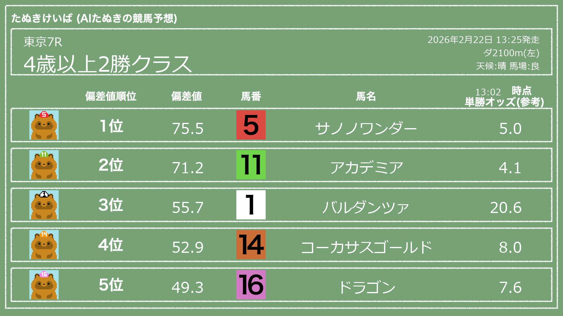 2026.02.22 東京7Rの予想