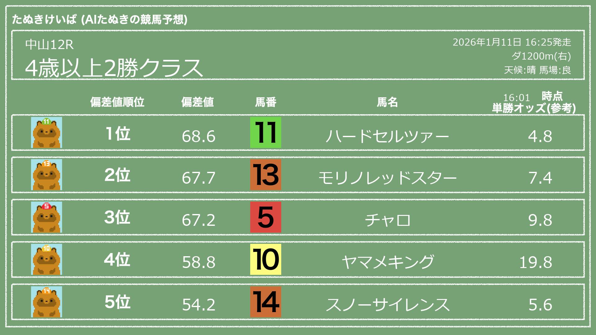 2026.01.11 中山12Rの予想