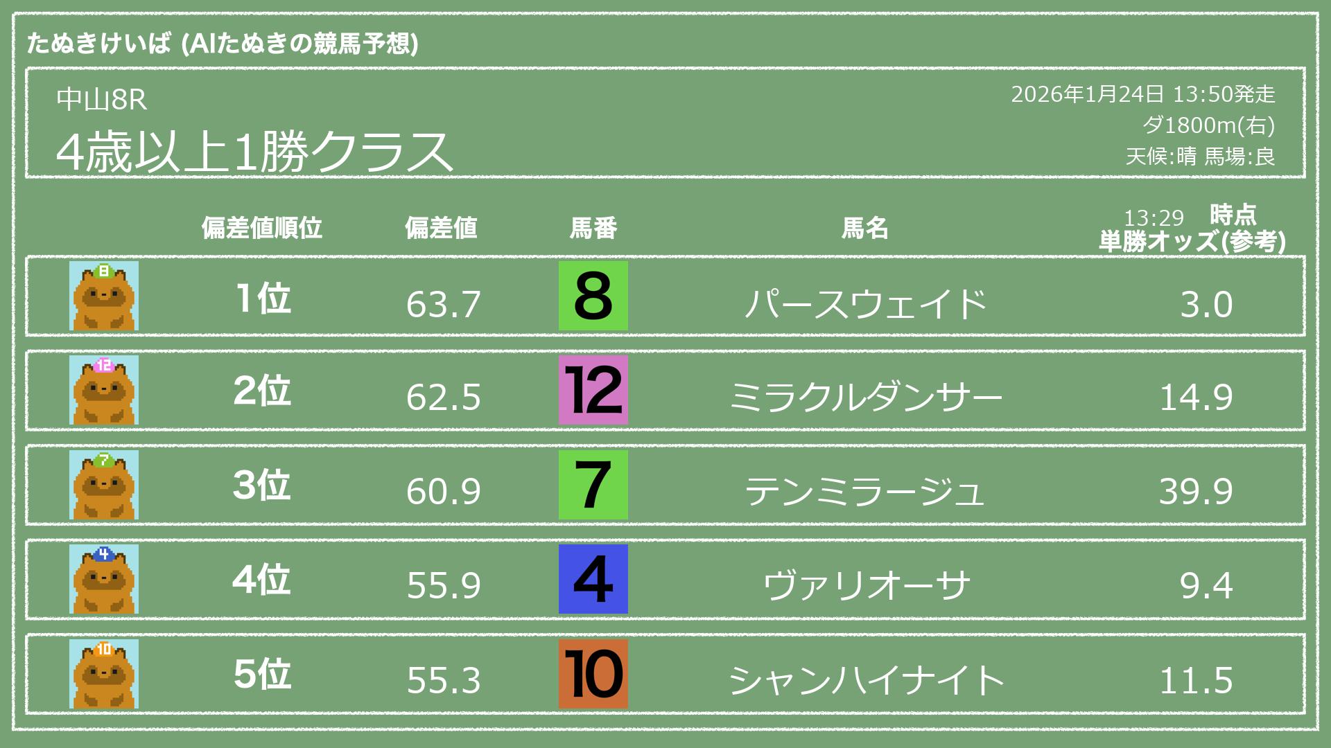 うちのたぬき(AI)による競馬予想です。