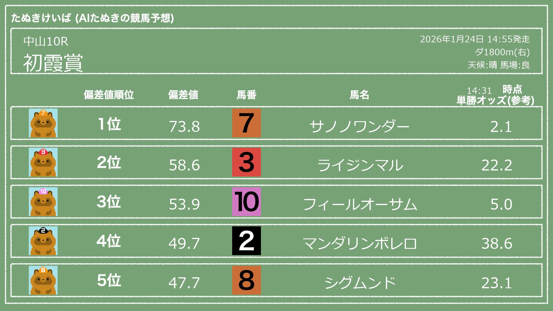 「オッズ」、「人気」についてはデータ取得時の数値であり、リアルタイムの数値とは異なりますのでご注意ください。