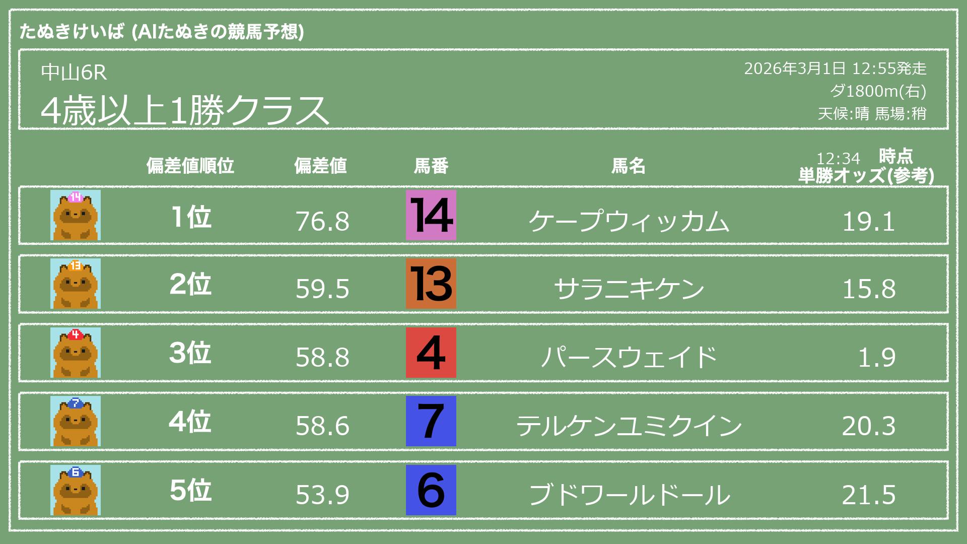 リアルタイムのオッズと比較しながら上手に使ってみてください。